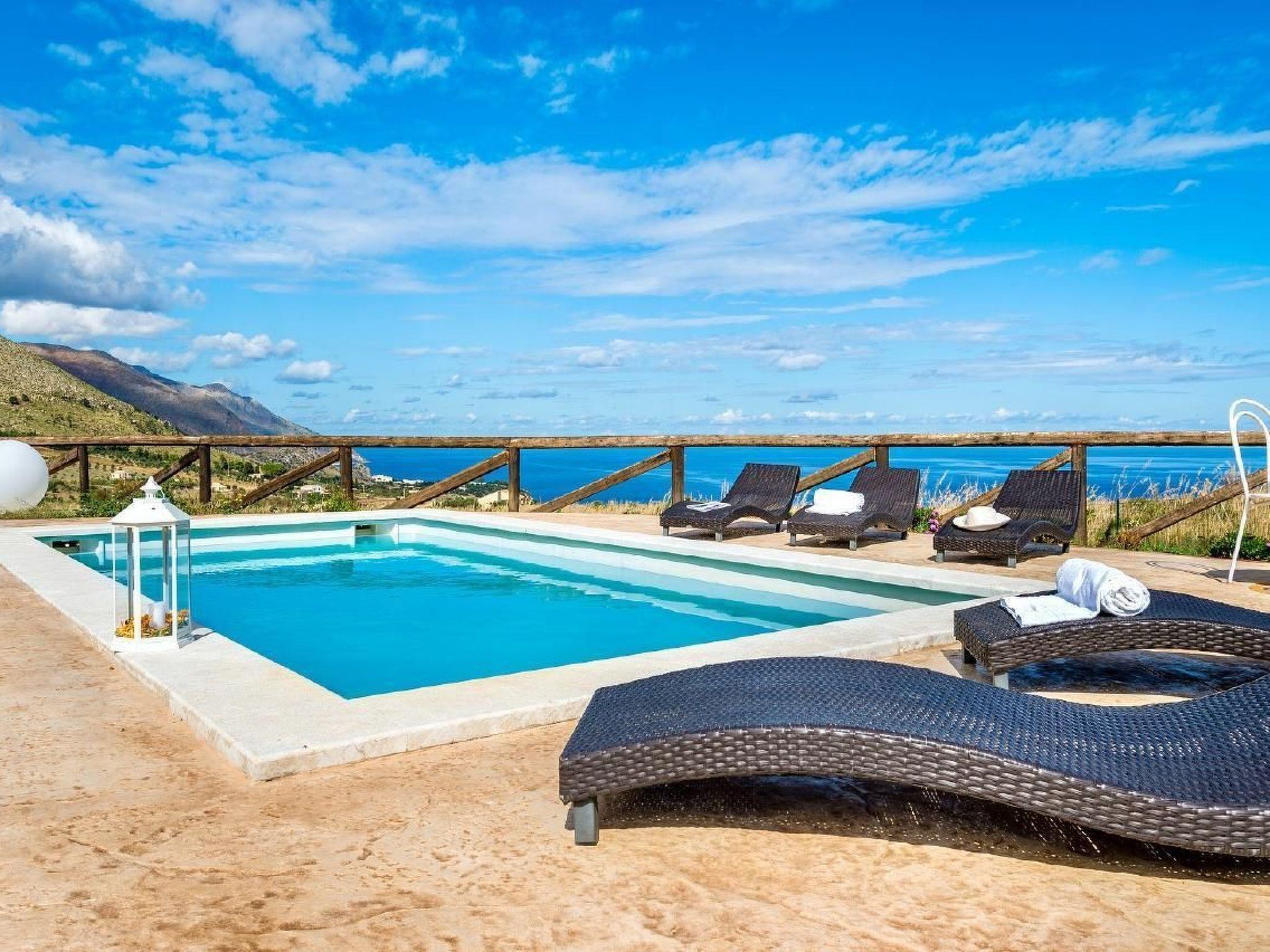 The property has an independent access, a very big natural garden scattered with milky-white rocks, where the guest can enjoy the gorgeous private pool and beautiful panoramas.The stunning panoramic view over the Gulf of Castellammare and the Bay of Scopello is framed by large windows embellishing the villa. The landscape becomes the leitmotif which gives guests a feeling of peacefulness.Garden and outdoorGarden facilities : Garden furniture provided, GrillOn-site leisure facilities : Outdoor swimming pool exclusive use, Swimming pool
