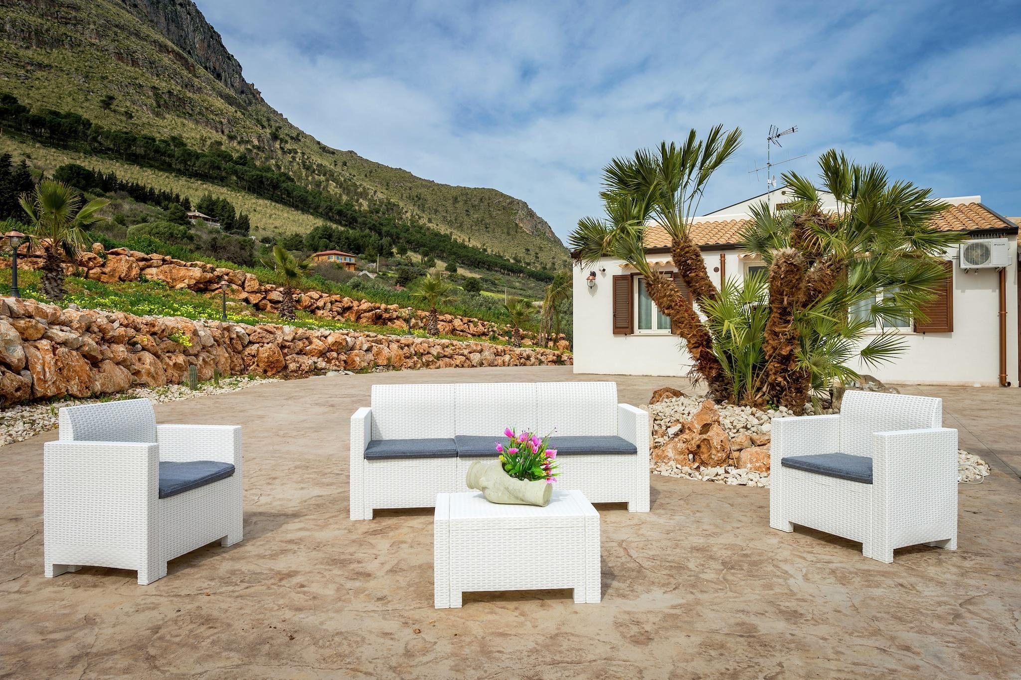 Charmerende Feriehus med Pool og Have Dette indbydende feriehus nær Castellammare del Golfo tilbyder et perfekt tilflugtssted for grupper eller familier, der ønsker at slappe af i Siciliens varme favn. Ejendommen har en rummelig privat pool og en indhegnet have, ideel til afslapning eller sjov under solen. En stor, overdækket terrasse med grillplads inviterer gæsterne til at nyde måltider under åben himmel med en fantastisk udsigt over det omkringliggende landskab. Indenfor sikrer aircondition og varme komfort året rundt, suppleret af en hyggelig opholdsstue med fladskærms-tv. Udforsk det vestlige Siciliens vidundere Bare 3 km fra den charmerende by Castellammare del Golfo tilbyder denne beliggenhed nem adgang til kulturelle og naturlige skatte. Besøg det nærliggende Zingaro naturreservat, en spektakulær kystpark med vandrestier og uberørte strande. Den livlige by San Vito Lo Capo er også inden for rækkevidde, berømt for sin pulserende atmosfære og strandfestivaler. Historieelskere vil sætte pris på de middelalderlige gader i Castellammare og det nærliggende Scopello med sine ikoniske klipper og charmerende havn. Nyd smagene af Sicilien i nærheden Regionen er rig på kulinariske lækkerier, der venter på at blive udforsket. Nyd frisk fisk og skaldyr og traditionelle sicilianske retter på restauranter i Castellammare del Golfo, såsom "La Cambusa" og "Ristorante Al Pescatore", der begge er kendt for deres varme gæstfrihed og autentiske menuer. For en afslappet bid mad tilbyder de lokale pizzeriaer lækre pizzaer bagt i brændeovn, mens nærliggende markeder sælger friske råvarer og lokale specialiteter.