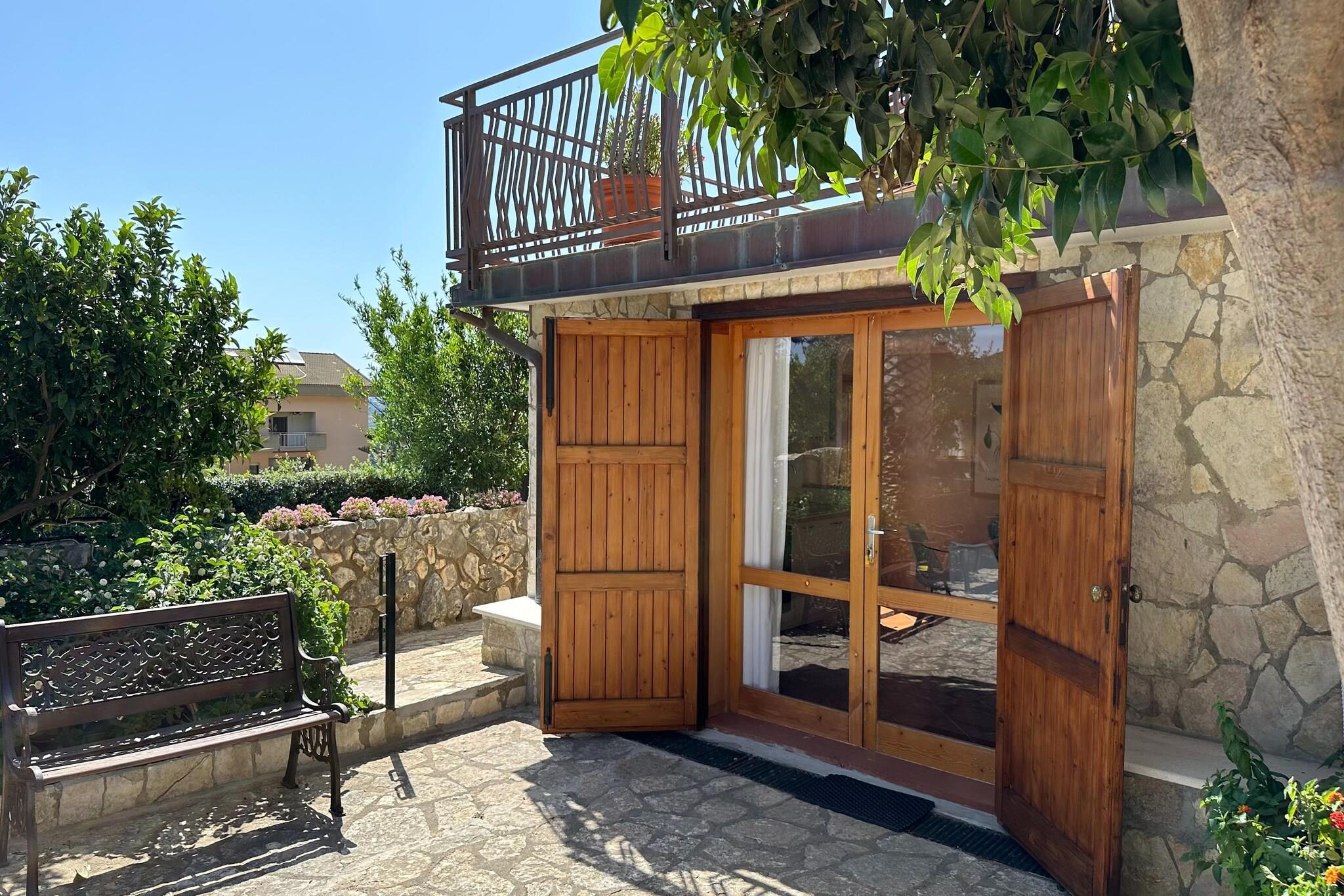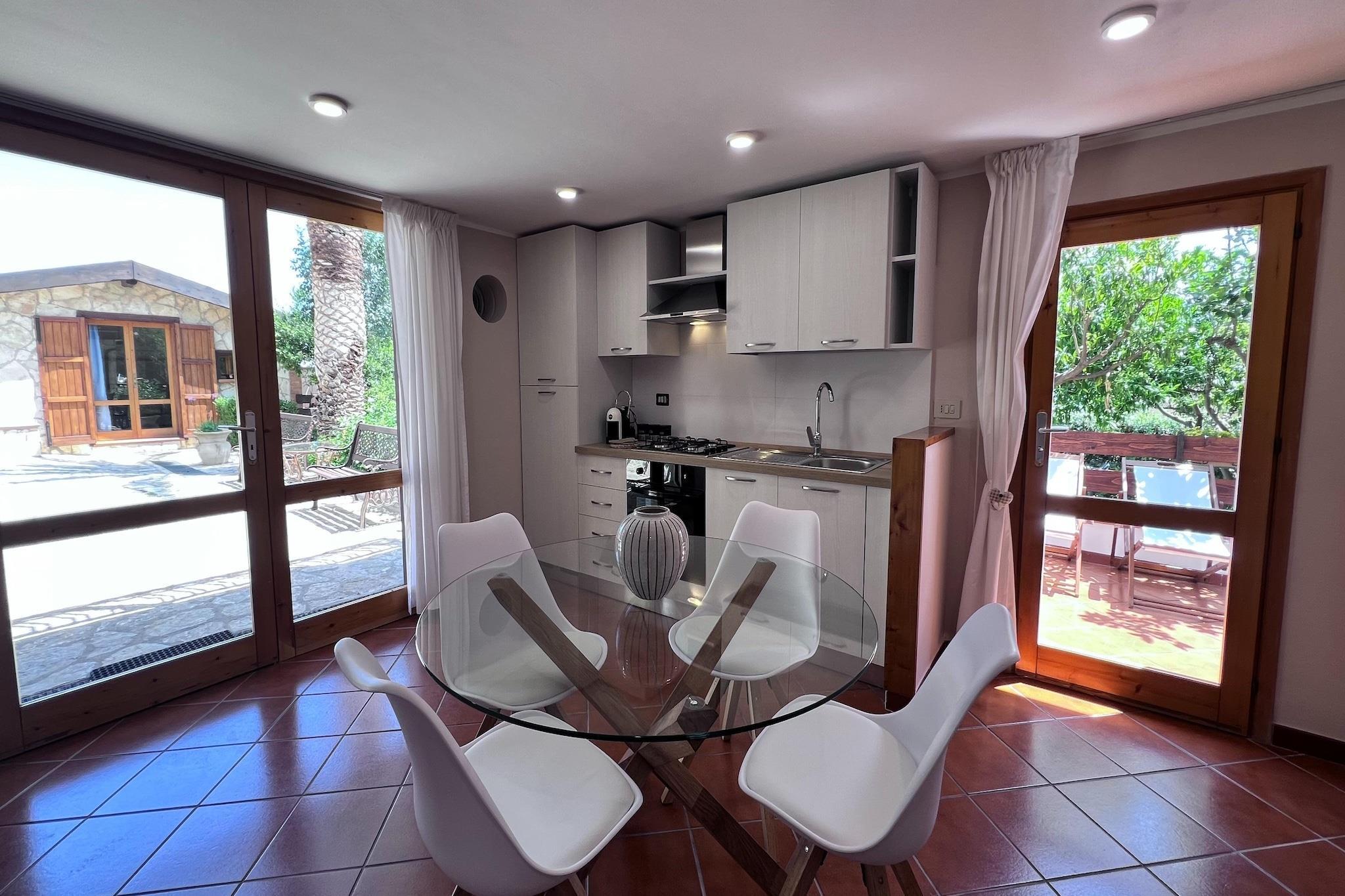 Dette hyggelige feriehus på første sal tilbyder et komfortabelt tilflugtssted for op til 4 gæster i den naturskønne by Castellammare del Golfo. Kun 3 km fra havet og 1 km fra byens centrum er det ideelt for familier eller små grupper, der ønsker at udforske Siciliens kystcharme. Huset har en lys stue/spisestue med satellit-tv og aircondition, et veludstyret åbent køkken med ovn, mikroovn og køleskab med fryser samt to soveværelser (1 dobbeltseng, 1 enkelt). En enkelt sovesofa giver ekstra soveplads, og badeværelset har bruser, bidet og hårtørrer. Træd ud på den private terrasse til al fresco måltider eller slap af i den fælles have med liggestole, en terrasse og et grillområde. Gæsterne har også adgang til en fælles swimmingpool (10 x 4 m, åben maj-sept). For familier er en børneseng, høj stol og strygefaciliteter til rådighed. Med parkering på stedet og store attraktioner i nærheden - inklusive Scopello (10 km) og Palermo Lufthavn (45 km) - tilbyder dette kæledyrsfrie hjem både bekvemmelighed og komfort, med WiFi inkluderet.