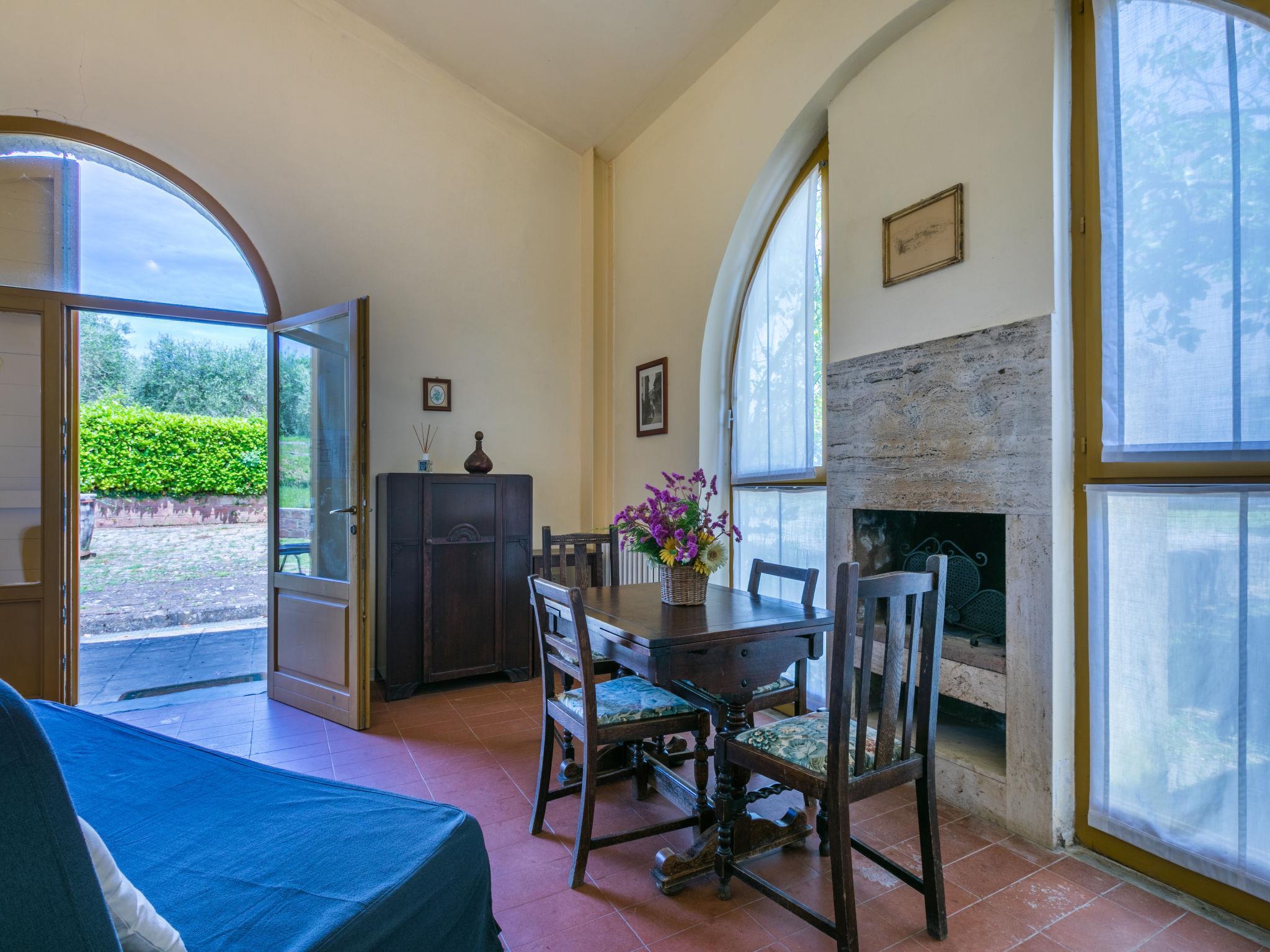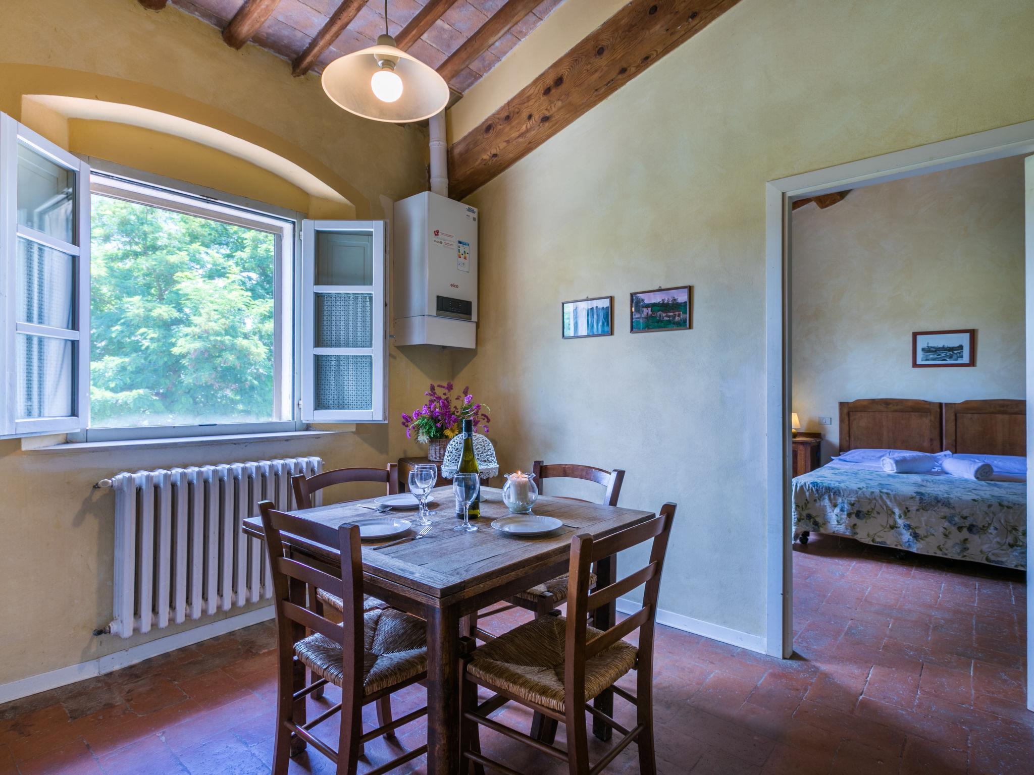 The farm surrounded by olive groves and vineyards of Chianti. Each of 12 apartments are located in the main house and a former barn has its own outside area with a table on the terraces surrounding with the main building. The location is very central and ideal for trips to discover the natural and cultural beauties of the region large working farm "La Moraia", renovated. 14 km from the centre of Castellina in Chianti, 18 km from the centre of San Gimignano, 50 km from the centre of Firenze, in an elevated position, in the countryside. For shared use: garden, swimming pool (7 x 14 m, depth 120 - 160 cm, seasonal availability: 09.May. - 26.Sep. pool opening hours: 09:00-19:00). Patio, barbecue. In the house: central heating system, washing machine (for shared use, extra), heating to be paid on the spot, heating available only from 01.Nov. - 04.Apr.. Motor access to the house (1 km via unmade road). Parking. Supermarket 5 km, restaurant 5 km, bus stop 5 km, railway station "Poggibonsi" 5 km, thermal baths "Rapolano Terme" 55 km. Tennis 5 km. Nearby attractions: Monteriggioni 14 km, Barberino Val d'Elsa 16 km, San Donato 21 km, Radda in Chianti e Badia a Passignano 25 km, Siena 30 km, Volterra 38 km. Please note: the photograph shows a typical example. Additional accommodations can be booked. On request, at the moment of booking, there are opportunities to rent bicycles.