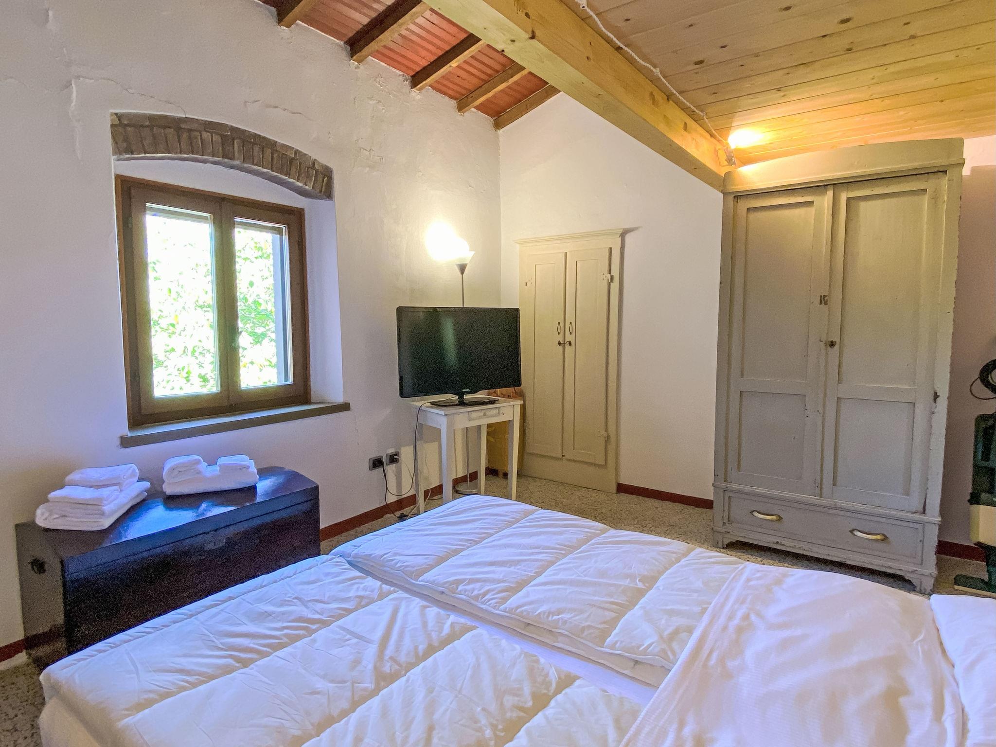 "Casetta de Sodoni", 4-room apartment 90 m2 on 2 levels. Rustic and tasteful furnishings: upper floor: (open staircase) living/sleeping room with 1 sofabed and wood-burning stove. 2 double bedrooms. Shower/WC. Heating, gas heating, wood heating. 2nd upper floor: kitchen (4 hot plates, oven, microwave, electric coffee machine) with dining table. Exit to the balcony. Natural stone floors. Small balcony 9 m2, patio, porch. Terrace furniture, barbecue, deck chairs. Panoramic view of the lake. Facilities: washing machine, mosquito net, baby cot (extra), hair dryer. Internet (WiFi, free). Please note: maximum 2 pets/ dogs allowed. Private entrance, smoke alarm, fire extinguisher. IT050010C2L2756NMM