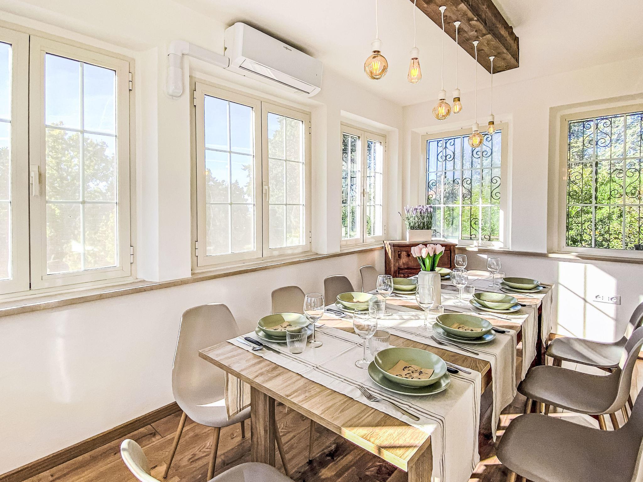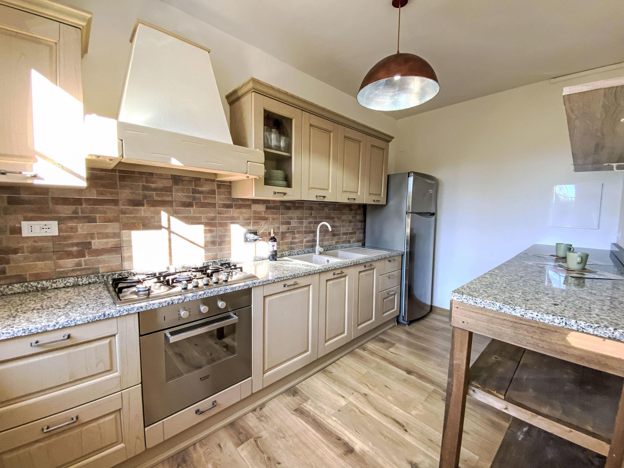 6-room house 130 m2 on 2 levels. Spacious and bright, practical and modern furnishings: upper floor: (exterior staircase) open living/dining room with open-hearth fireplace (only for decoration), dining table and TV (flat screen), air conditioning. Exit to the balcony. 2 double bedrooms. Kitchen (oven, dishwasher, Gas stove, 5 gas rings, toaster, kettle, microwave, electric coffee machine). Shower/bidet/WC. No heating option. 2nd upper floor: (steep stair) with sloping ceilings, 1 double bedroom. With sloping ceilings, 1 double bedroom with 1 double sofabed. With sloping ceilings, 1 room with 2 beds. Bathroom. Balcony 5 m2, patio roofed. Terrace furniture, barbecue, deck chairs. Beautiful distant view of the countryside. Facilities: washing machine, mosquito net, baby cot for up to 3 year olds, hair dryer, baby changing unit. Internet (WiFi, free). Please note: maximum 2 pets/ dogs allowed. Smoke alarm, fire extinguisher. IT050010C2PYA15TW