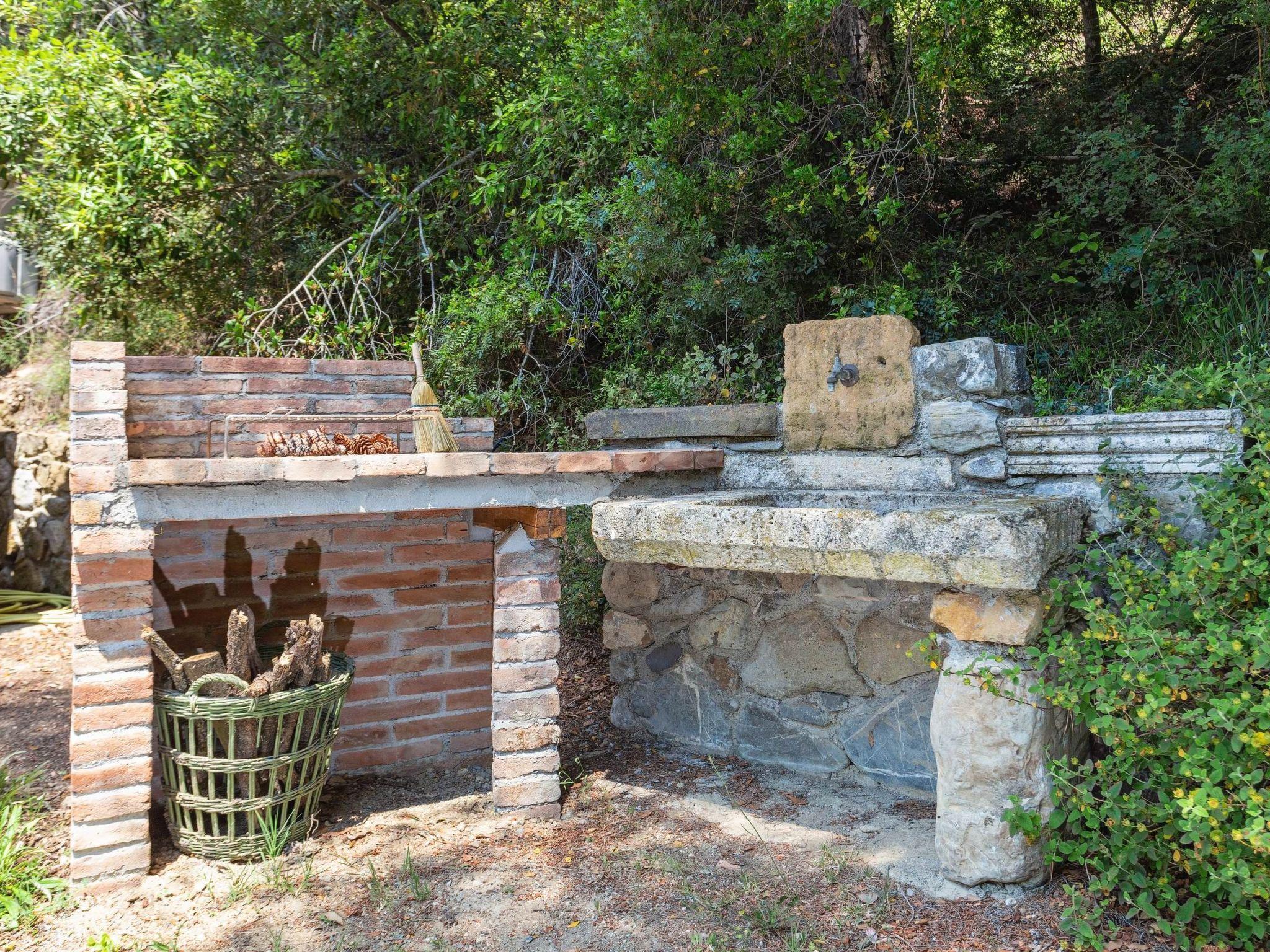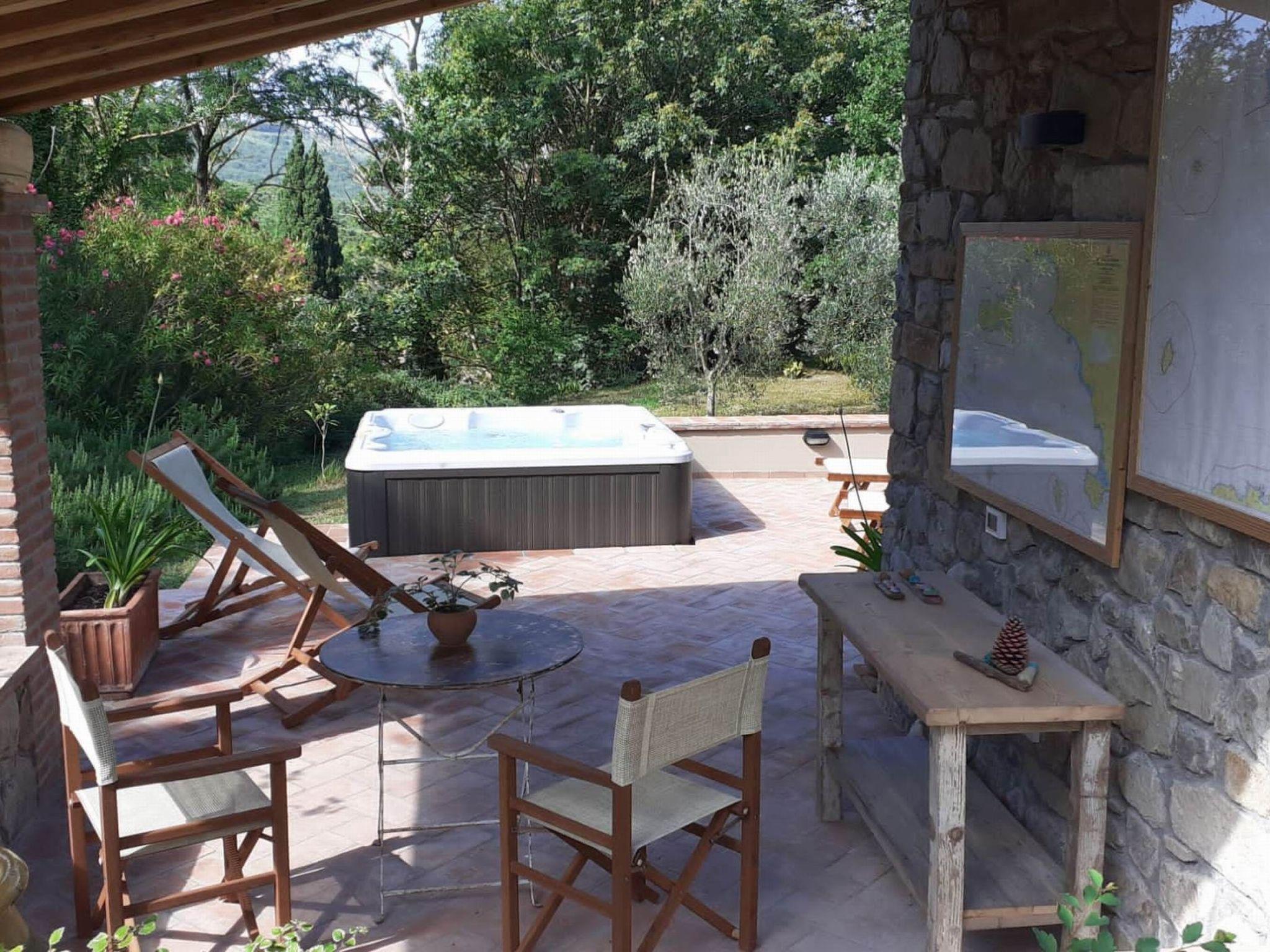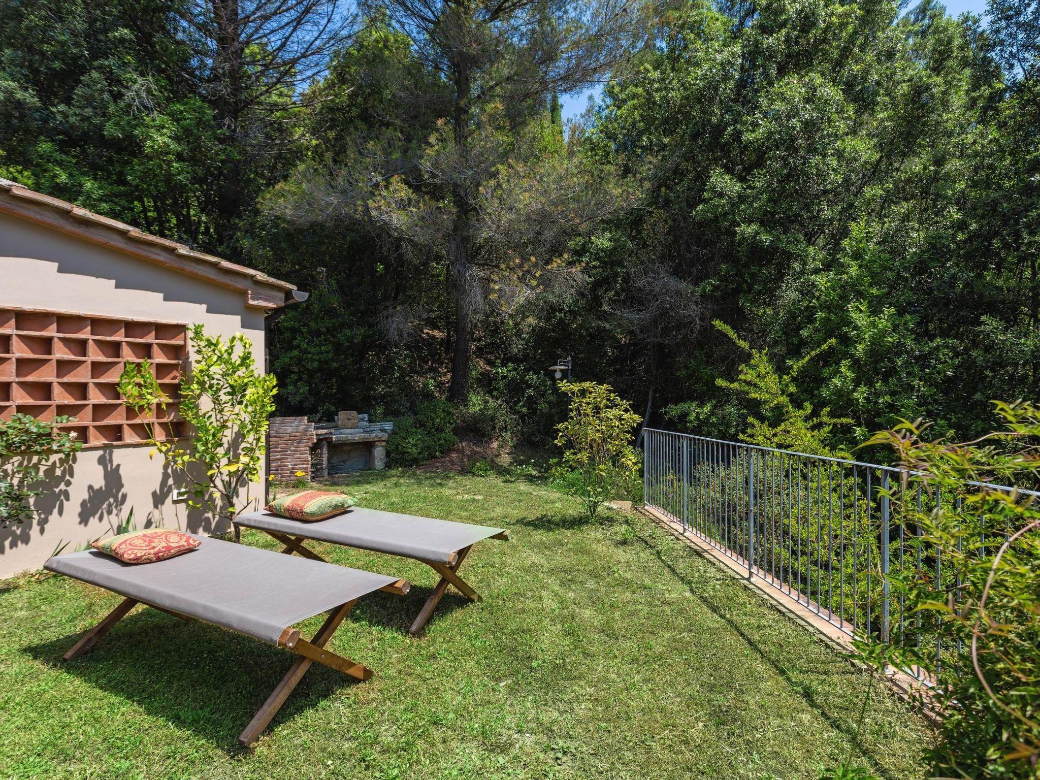 Two-bedroom cottage: a beautiful and cosy 60 m² cottage, located slightly uphill from the main house, with a large furnished private terrace, barbecue and garden view. The one-storey cottage can accommodate up to 5 persons: a double bedroom, a triple bedroom, a living room with kitchenette (5-burner gas cooker, refrigerator, oven, toaster, kettle, coffee maker and American coffee maker) and a bathroom with shower. Facilities: air conditioning in the bedrooms only, mosquito nets, Wi-Fi and hairdryer. This beautiful holiday home, a former mill converted into three cosy flats, is located just 600 metres from Pomaia, where you will find the nearest shops and restaurants. It is a beautiful property nestled in an idyllic landscape, surrounded by olive trees, small woods and a small stream with a small lake (swimmable when the water does not dry out). From time to time, some local wild animals (hedgehogs, hares, foxes, pheasants) can be seen living undisturbed along the stream or in the garden. The communal garden also has several fruit trees, a hot tub (open from mid-May to the end of September) and a veranda where guests can relax. Along the stream and in the garden are gazebos and reading corners where you can relax and enjoy the lush nature. The coast and the sea at Castiglioncello are 13 km away. Cecina is 20 km away, Pisa 40 km, Volterra 45 km, San Gimignano 55 km, Florence 95 km. The house can be reached from Pomaia via a 400 m dirt road.