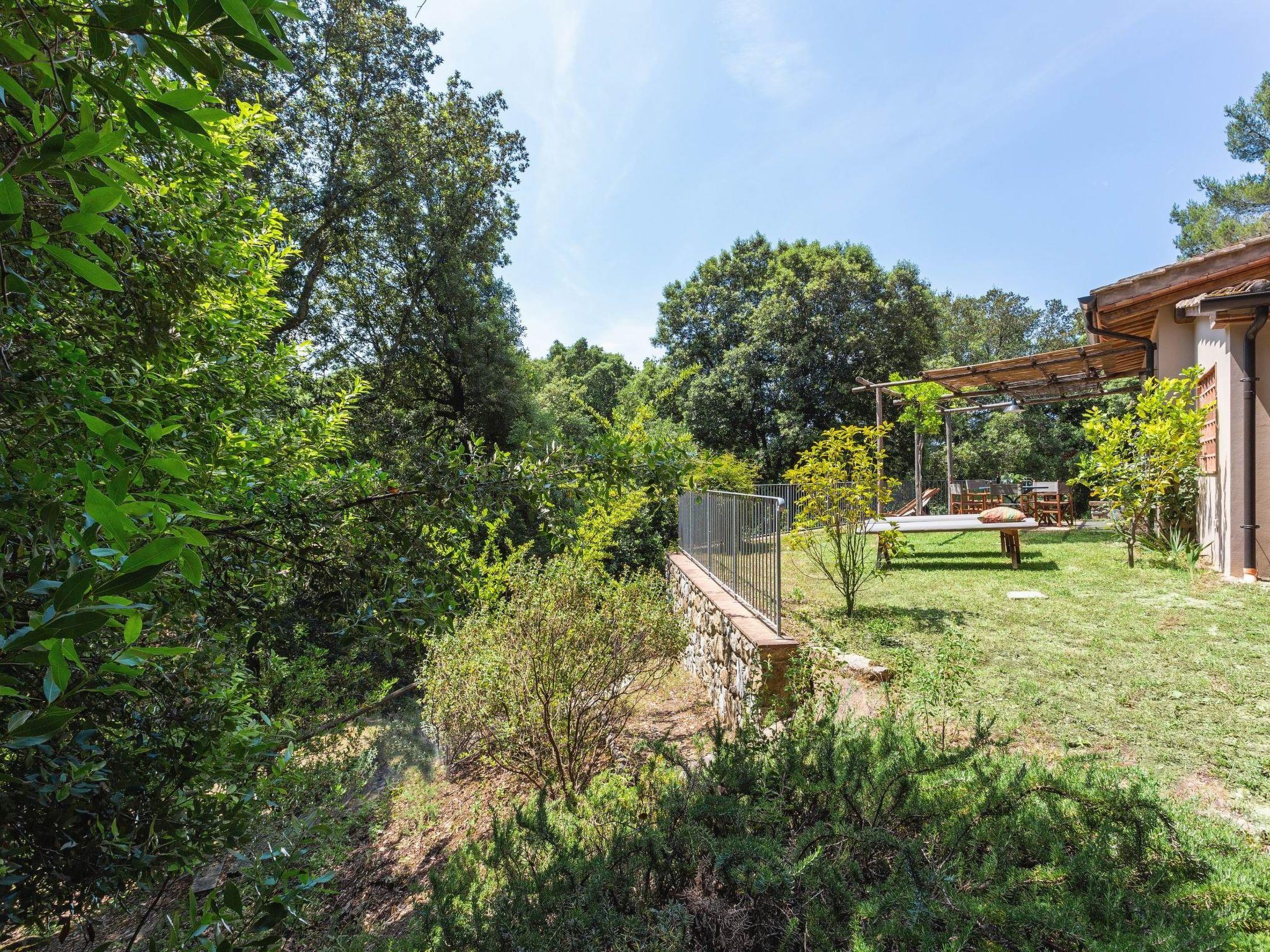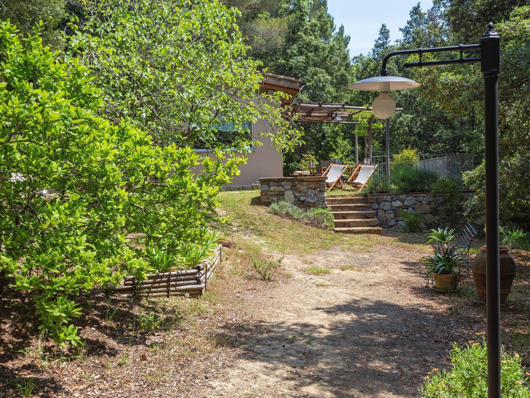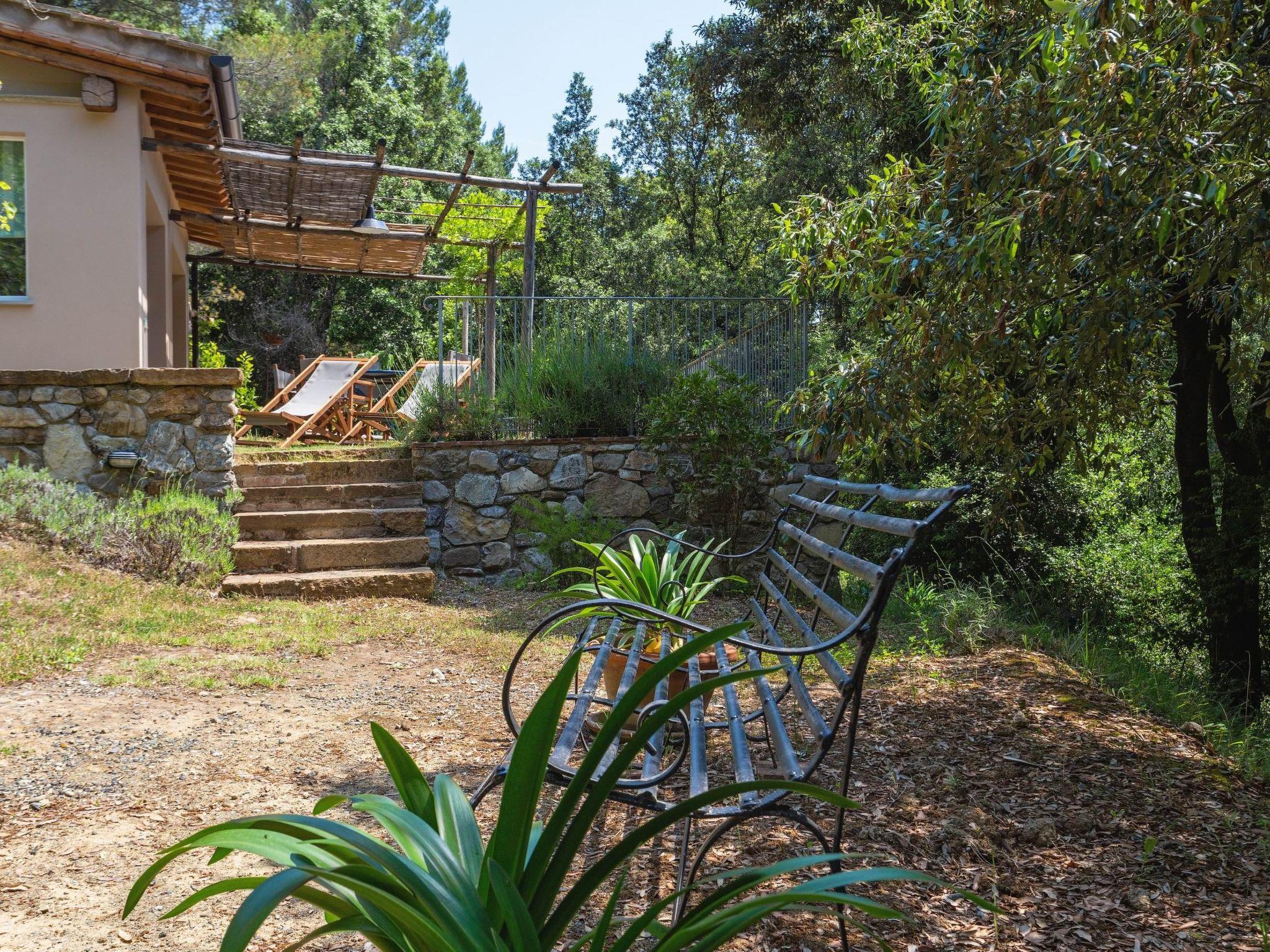 Two-bedroom cottage: a beautiful and cosy 60 m² cottage, located slightly uphill from the main house, with a large furnished private terrace, barbecue and garden view. The one-storey cottage can accommodate up to 5 persons: a double bedroom, a triple bedroom, a living room with kitchenette (5-burner gas cooker, refrigerator, oven, toaster, kettle, coffee maker and American coffee maker) and a bathroom with shower. Facilities: air conditioning in the bedrooms only, mosquito nets, Wi-Fi and hairdryer. This beautiful holiday home, a former mill converted into three cosy flats, is located just 600 metres from Pomaia, where you will find the nearest shops and restaurants. It is a beautiful property nestled in an idyllic landscape, surrounded by olive trees, small woods and a small stream with a small lake (swimmable when the water does not dry out). From time to time, some local wild animals (hedgehogs, hares, foxes, pheasants) can be seen living undisturbed along the stream or in the garden. The communal garden also has several fruit trees, a hot tub (open from mid-May to the end of September) and a veranda where guests can relax. Along the stream and in the garden are gazebos and reading corners where you can relax and enjoy the lush nature. The coast and the sea at Castiglioncello are 13 km away. Cecina is 20 km away, Pisa 40 km, Volterra 45 km, San Gimignano 55 km, Florence 95 km. The house can be reached from Pomaia via a 400 m dirt road.