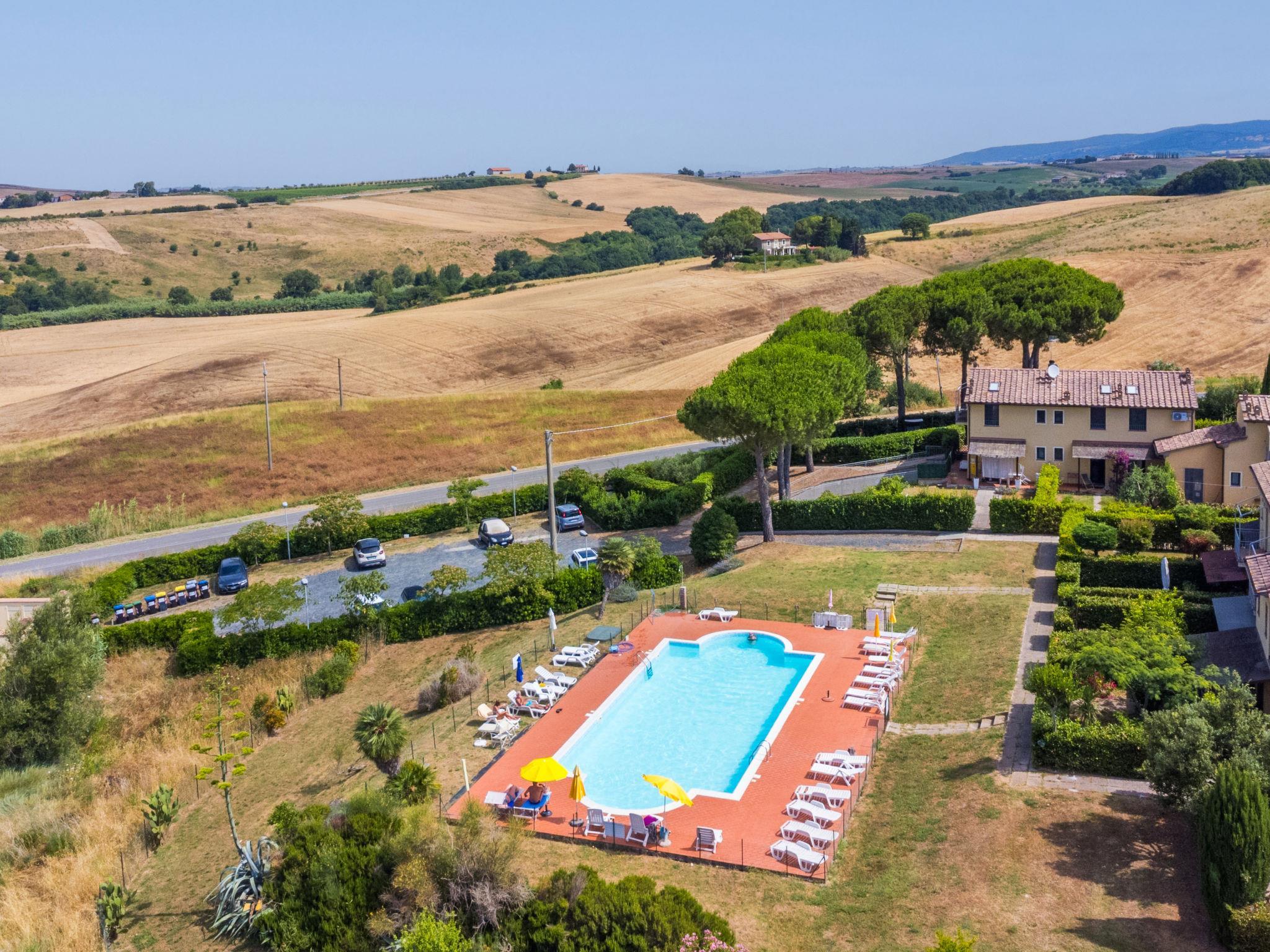 Beautiful residence "Le Farsiche", 2 storeys, surrounded by fields. 16 apartments in the residence. 2.5 km from the centre of Le Badie, 7 km from the centre of Rosignano Marittimo, 10 km from the sea, 10 km from the beach. For shared use: property (fenced), swimming pool (14 x 7 m, depth 120 - 120 cm, seasonal availability: 15.Jun. - 30.Sep. pool opening hours: 09:00-14:00 and 16:00-21:00). Outdoor shower, pool maintenance by the owner/gardener. Linen change (suppl. charge extra). Towel change (suppl. charge extra). Parking on the premises. Grocery 2.5 km, supermarket 7 km, restaurant 2.5 km, bar 2.5 km, bus stop 300 m, sandy beach "Vada" 10 km, thermal baths "Casciana Terme" 30 km. Marina 10 km. Nearby attractions: Pisa 45 km, Lucca 60 km, Firenze 115 km. Residence with electric gates.