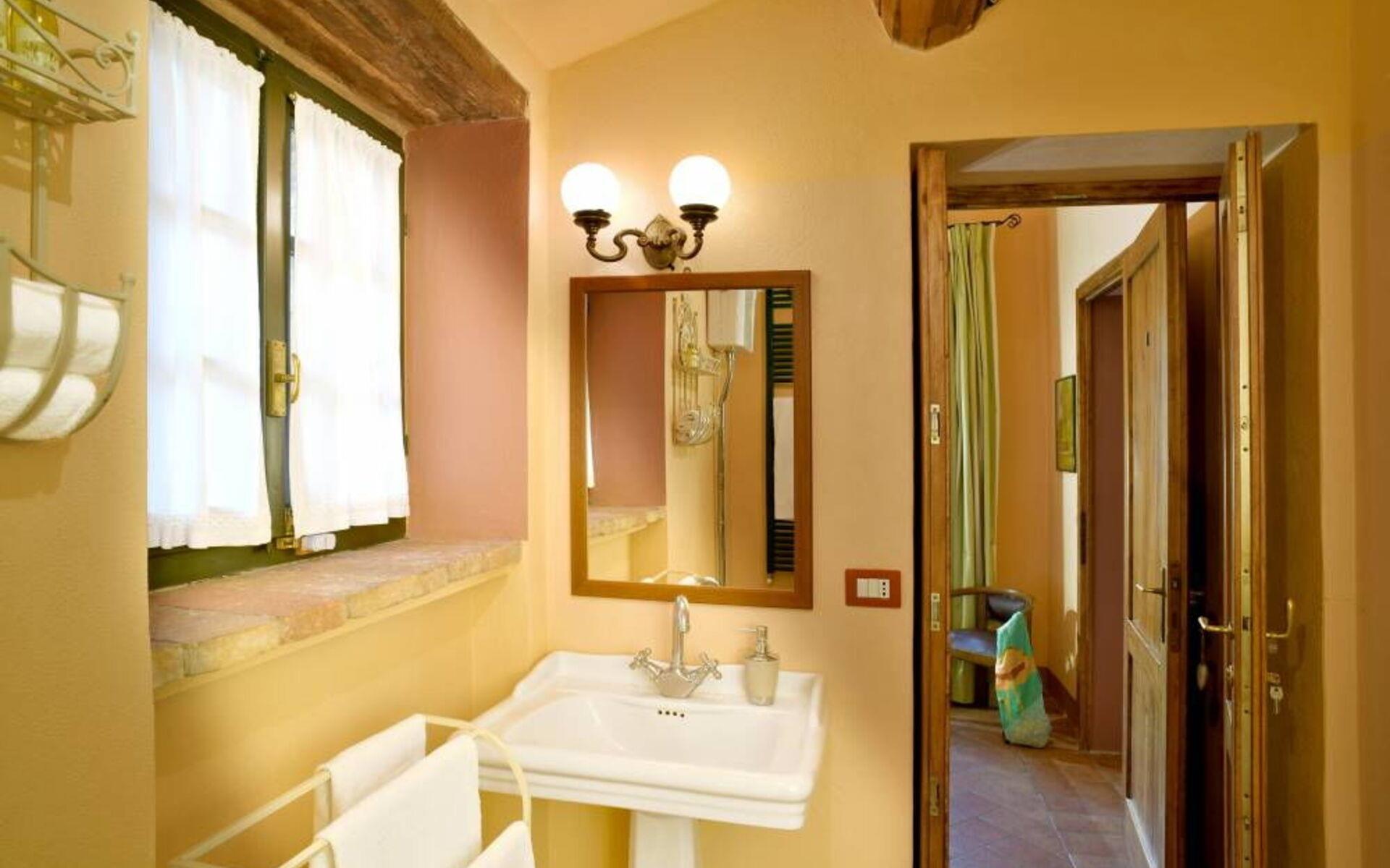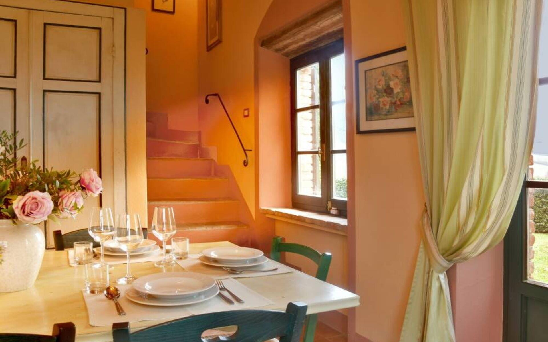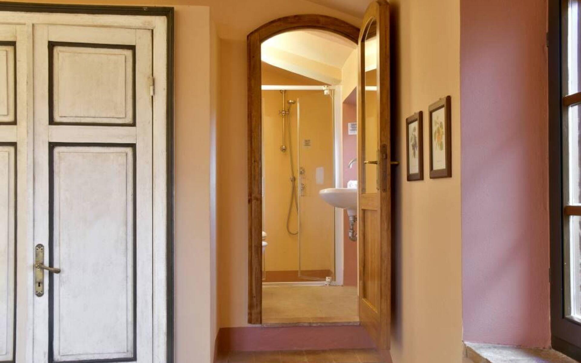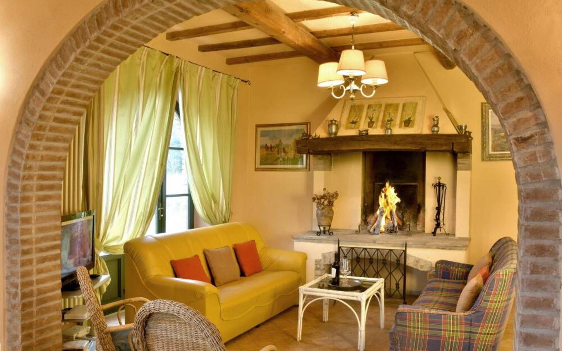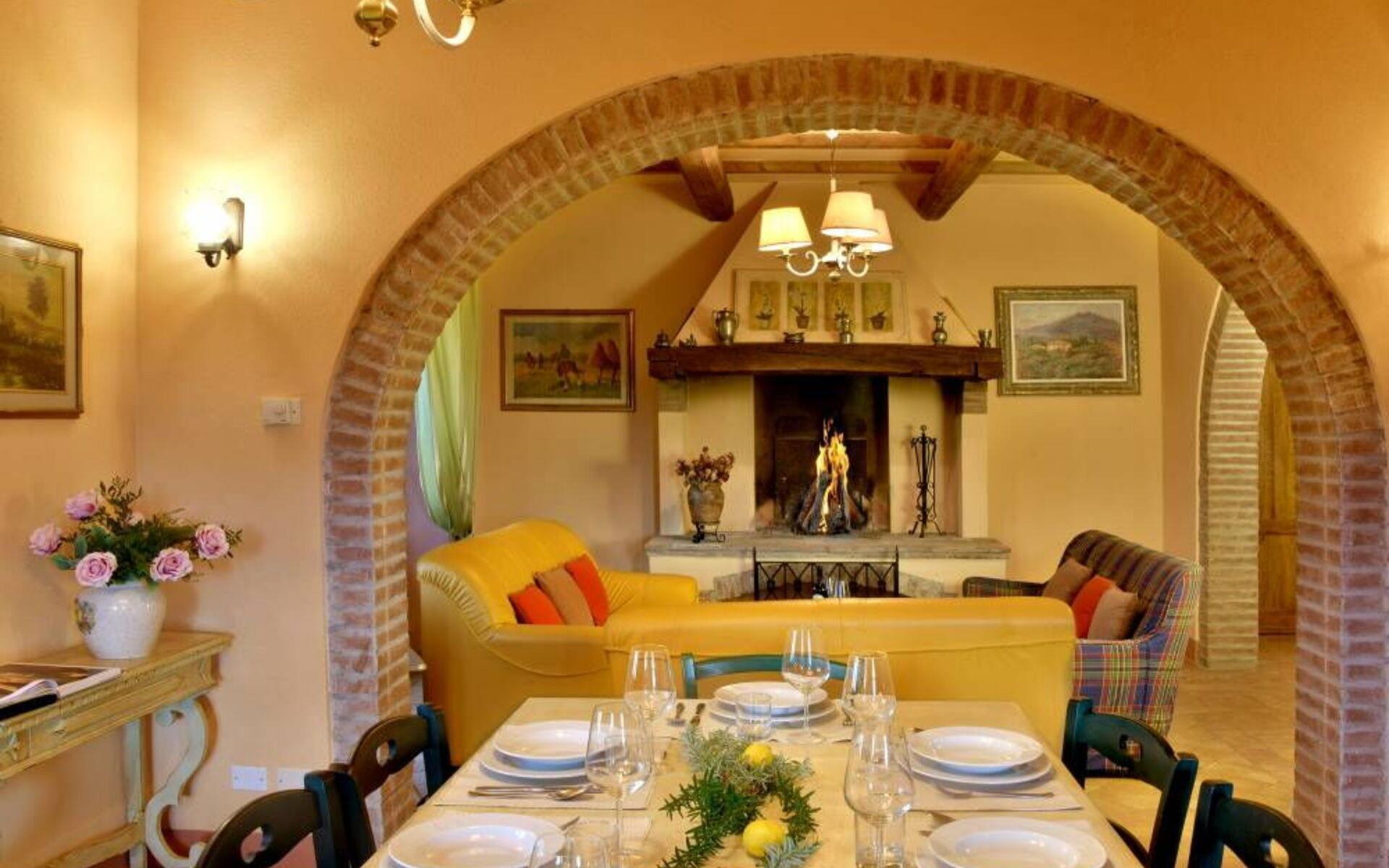Die Villa besteht aus zwei Ebenen, die durch eine interne Treppe verbunden sind. Das Anwesen öffnet sich in einem offenen Raum Eingang, der die Küche mit dem Wohnzimmer verbindet. Die Küche bietet einen schönen Blick auf die Veranda und ist komplett ausgestattet mit allem, was Sie brauchen, um Ihre Lieblingsgerichte zuzubereiten. Vor der Küche befindet sich ein Schlafzimmer mit Doppelbett und ein Bad mit Dusche. Weiter geht es in das Wohnzimmer, das im typisch toskanischen Stil eingerichtet ist, mit einem großen Esstisch, einem Kamin, zwei Sofas, einem Sessel und einem Fernseher. Von hier aus gelangt man in den ersten Stock, wo sich zwei Schlafzimmer mit Doppelbett, beide mit eigenem Bad, ein Schlafzimmer mit zwei Einzelbetten und ein Bad mit Dusche vor dem Schlafzimmer befinden.