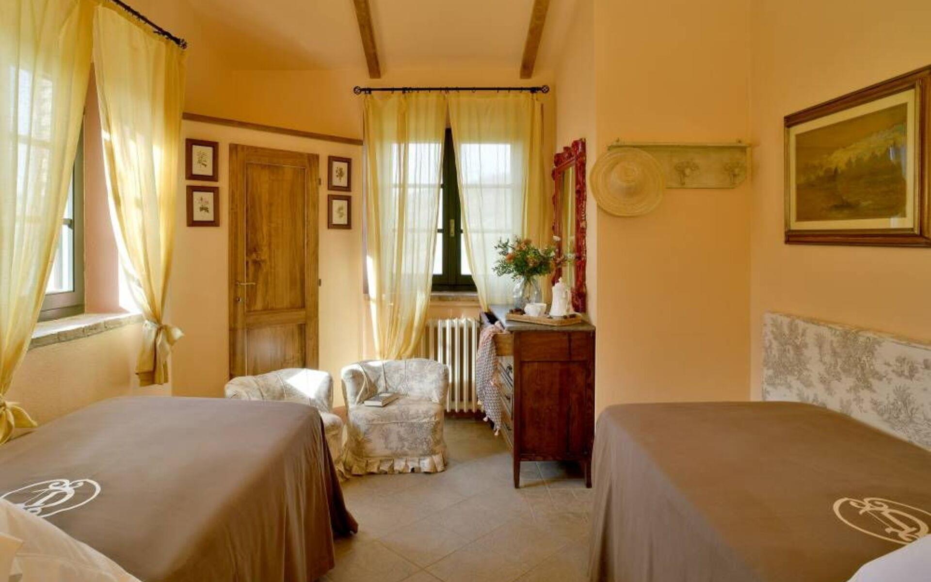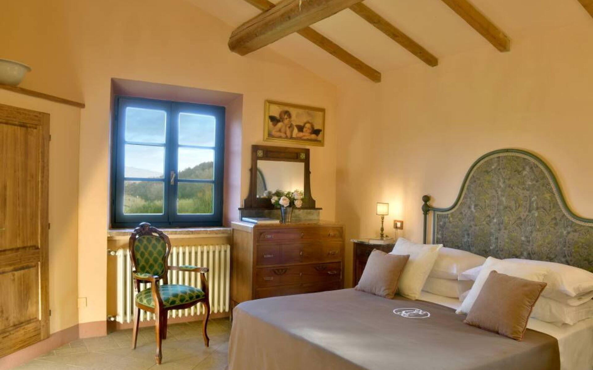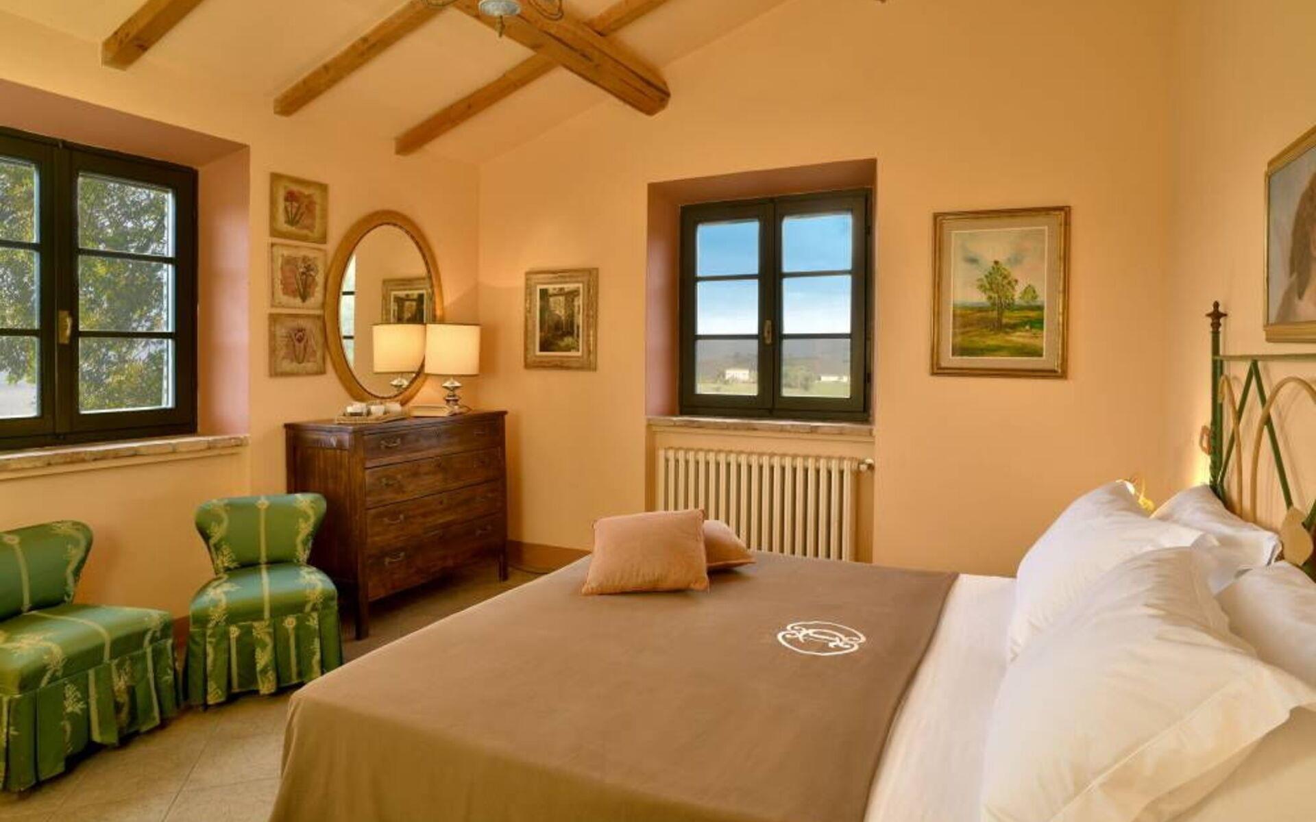 Villa Margherita ist ein wunderschönes Anwesen inmitten des Grüns und der Ruhe der toskanischen Hügellandschaft. Die Villa befindet sich in einem großen Grundstück von ca. 1606,18 Hektar, das sich auf einem Hügel voller Olivenbäume und Weinberge erhebt. Das Anwesen ist 10 km vom Meer entfernt, im innersten Teil der berühmten Costa degli Etruschi. Auf dem Grundstück befinden sich neben der Villa Margherita noch weitere Landhäuser, die alle unabhängig und voneinander getrennt sind. Diese Anwesen wurden früher von Bauern als Wohnhäuser genutzt, heute werden sie für den Empfang von Touristen genutzt.