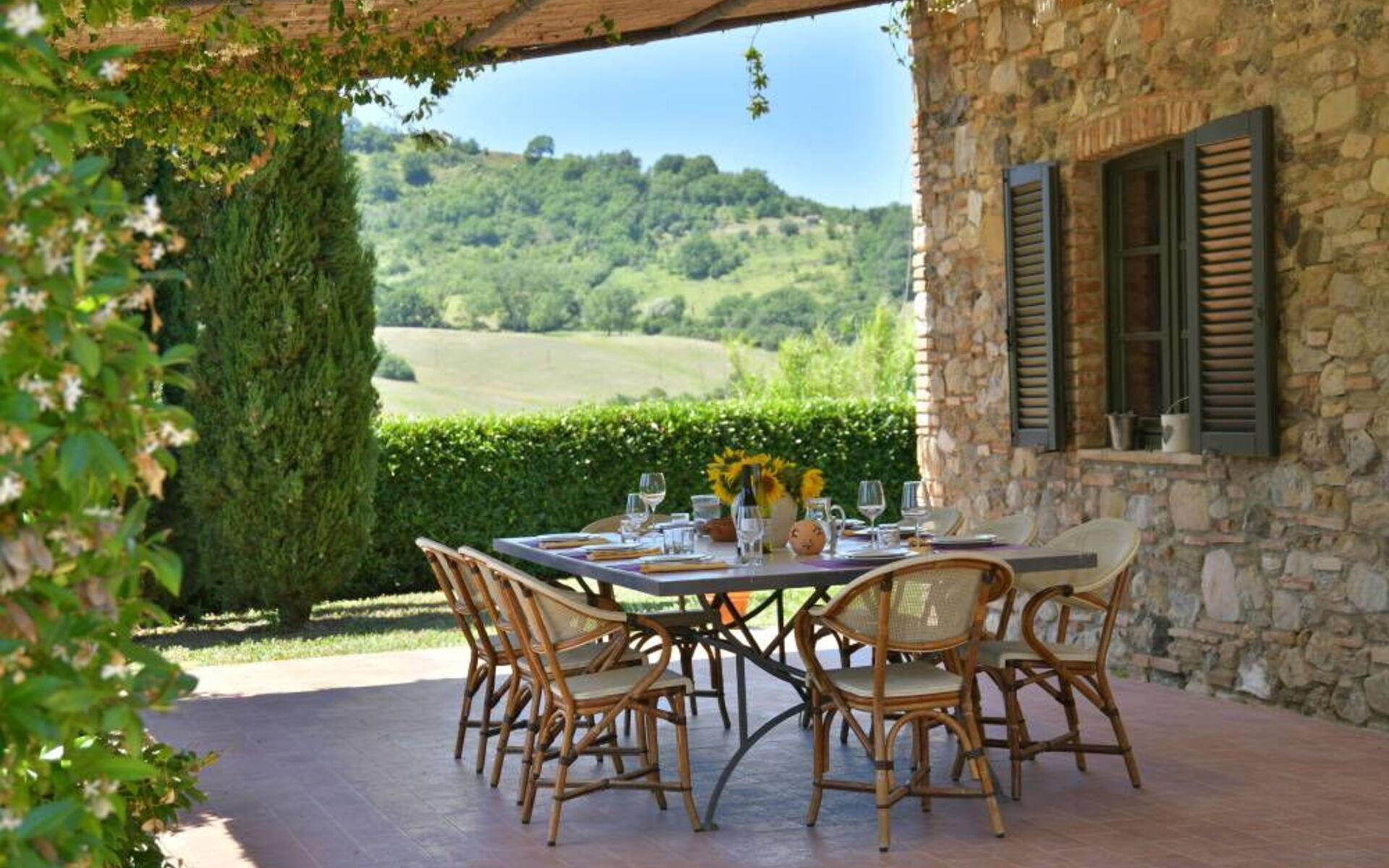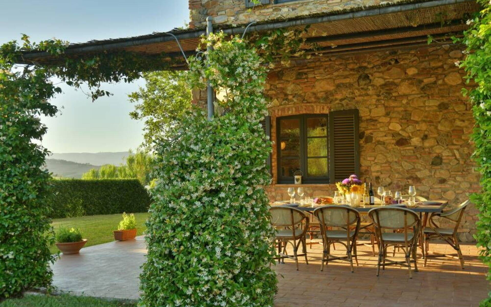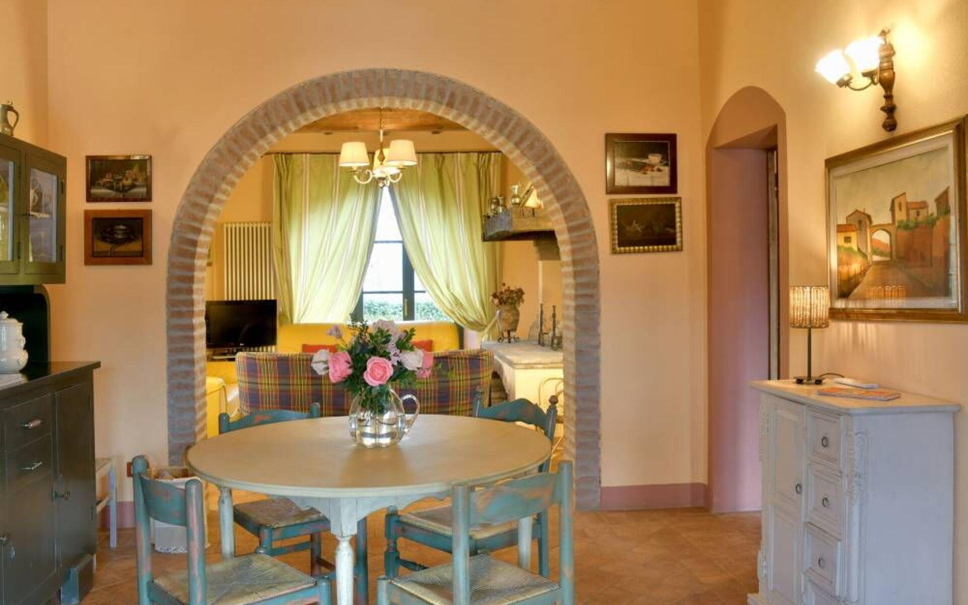 Villa Margherita ist der ideale Ort, um einen Urlaub inmitten der Schönheit der Toskana zu verbringen und sich zu entspannen, indem man die Düfte und Farben dieser herrlichen Landschaft genießt. Die Villa kann bis zu 8 Personen beherbergen und verfügt über einen großen Garten, der die Villa vollständig umgibt, und eine Veranda mit Esstisch und Grill, die den perfekten Ort für Ihre Urlaubstage darstellt. Vor der Villa befindet sich ein wunderschöner Panoramapool (10x5 m, 1,50 m tief) mit Außendusche, Liegestühlen und Sonnenschirmen, ideal für entspannende Momente inmitten der toskanischen Hügel. Auf der Seite des Pools befindet sich ein Pavillon mit einem Esstisch, ideal, um Ihren Abend unter dem Mondlicht am Pool zu verbringen, oder um sich an den wärmsten Tagen im Schatten zu erfrischen.