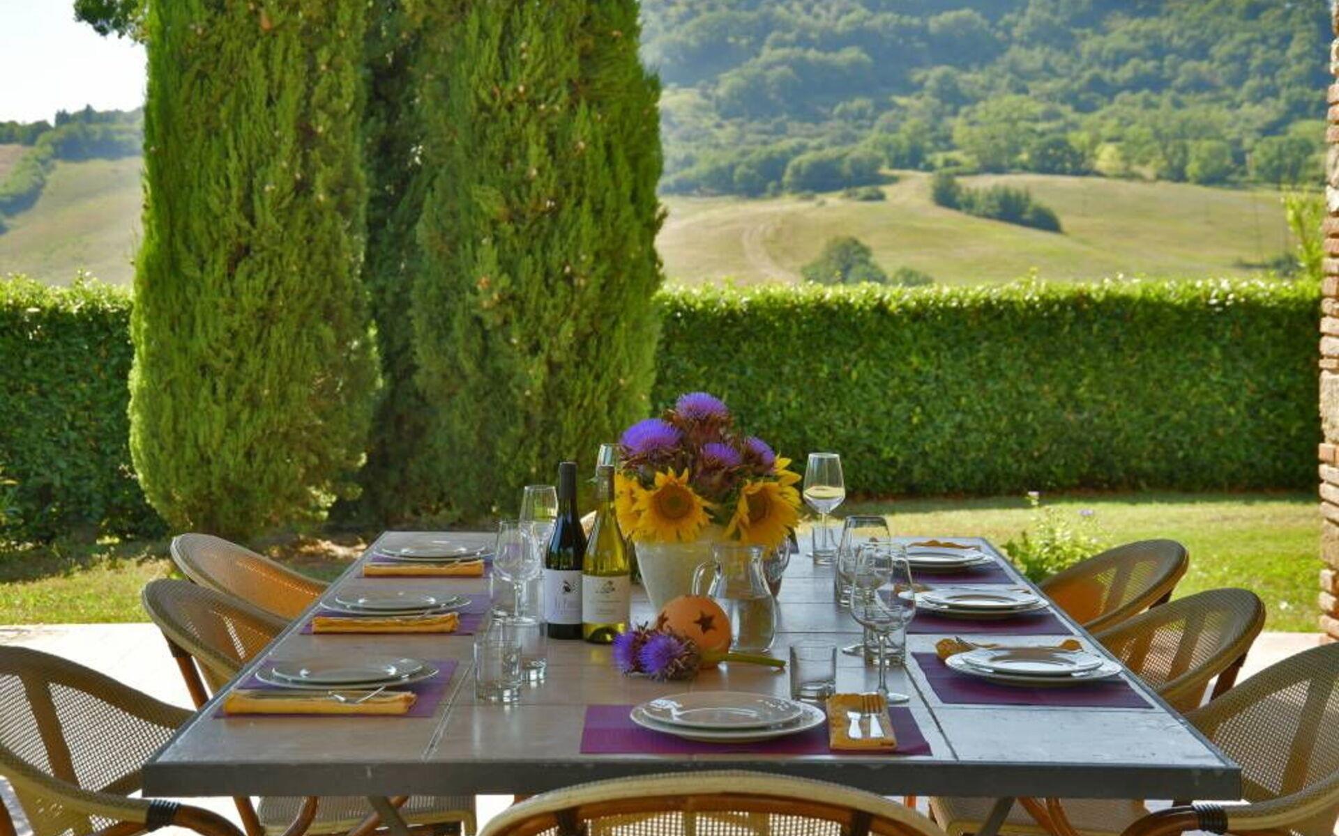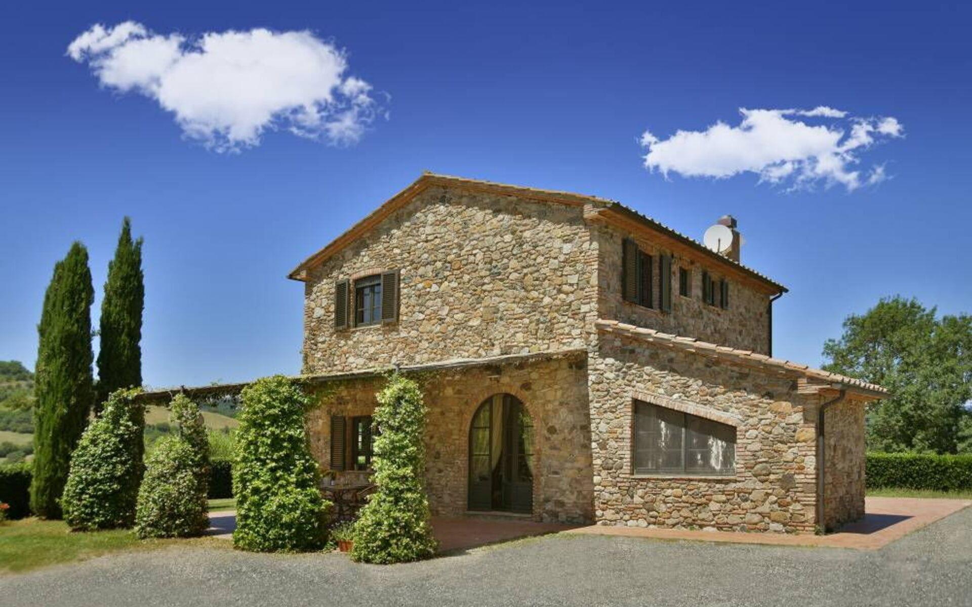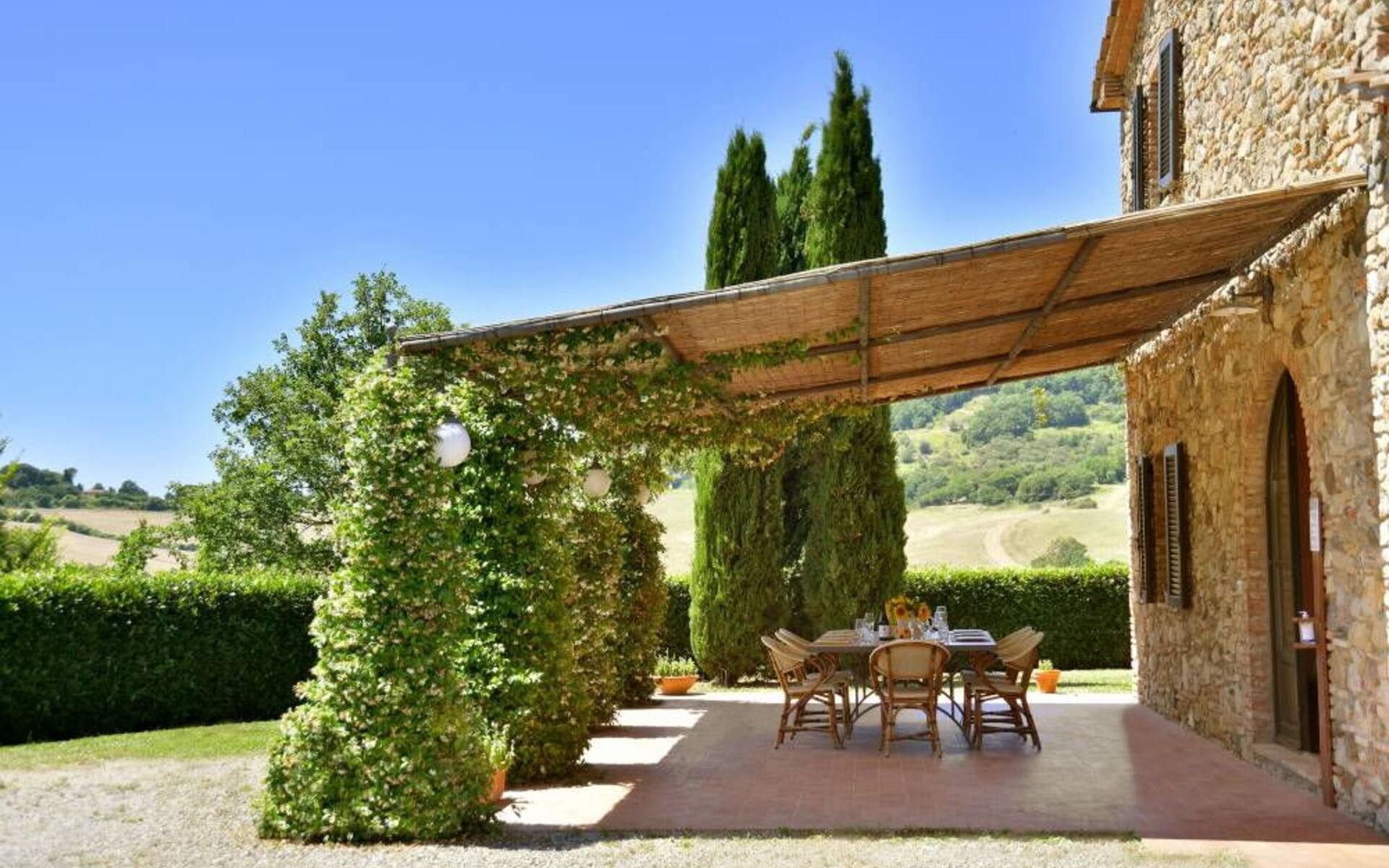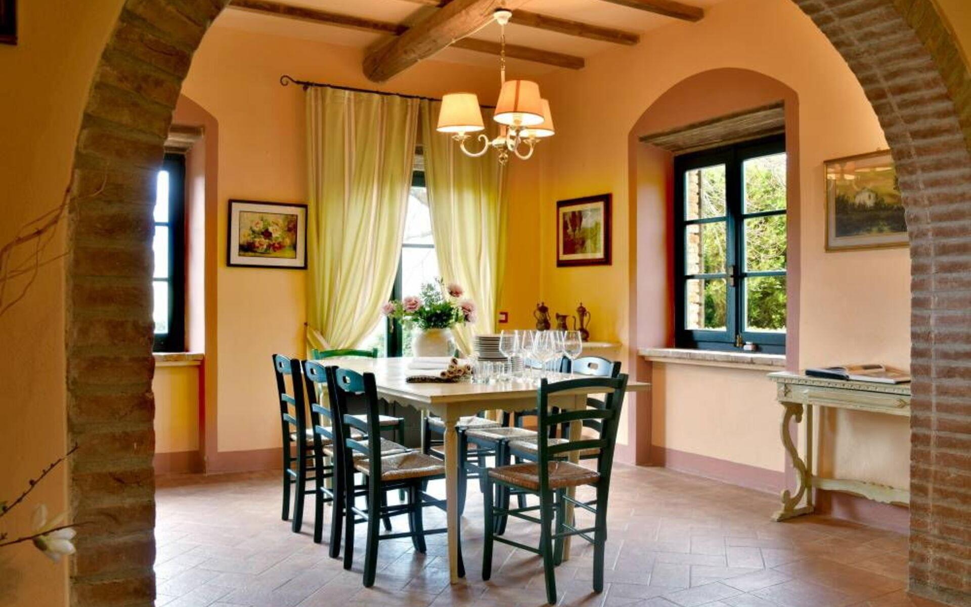 Villa Margherita ist der ideale Ort, um einen Urlaub inmitten der Schönheit der Toskana zu verbringen und sich zu entspannen, indem man die Düfte und Farben dieser herrlichen Landschaft genießt. Die Villa kann bis zu 8 Personen beherbergen und verfügt über einen großen Garten, der die Villa vollständig umgibt, und eine Veranda mit Esstisch und Grill, die den perfekten Ort für Ihre Urlaubstage darstellt. Vor der Villa befindet sich ein wunderschöner Panoramapool (10x5 m, 1,50 m tief) mit Außendusche, Liegestühlen und Sonnenschirmen, ideal für entspannende Momente inmitten der toskanischen Hügel. Auf der Seite des Pools befindet sich ein Pavillon mit einem Esstisch, ideal, um Ihren Abend unter dem Mondlicht am Pool zu verbringen, oder um sich an den wärmsten Tagen im Schatten zu erfrischen.