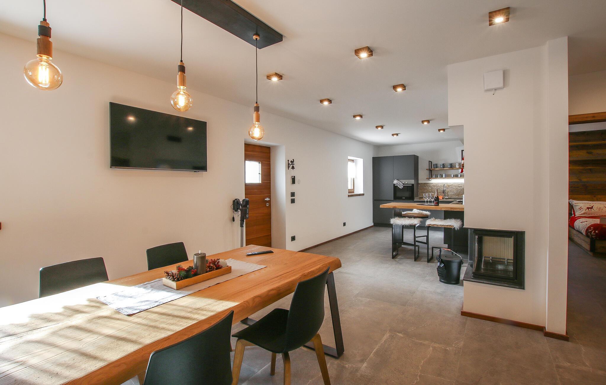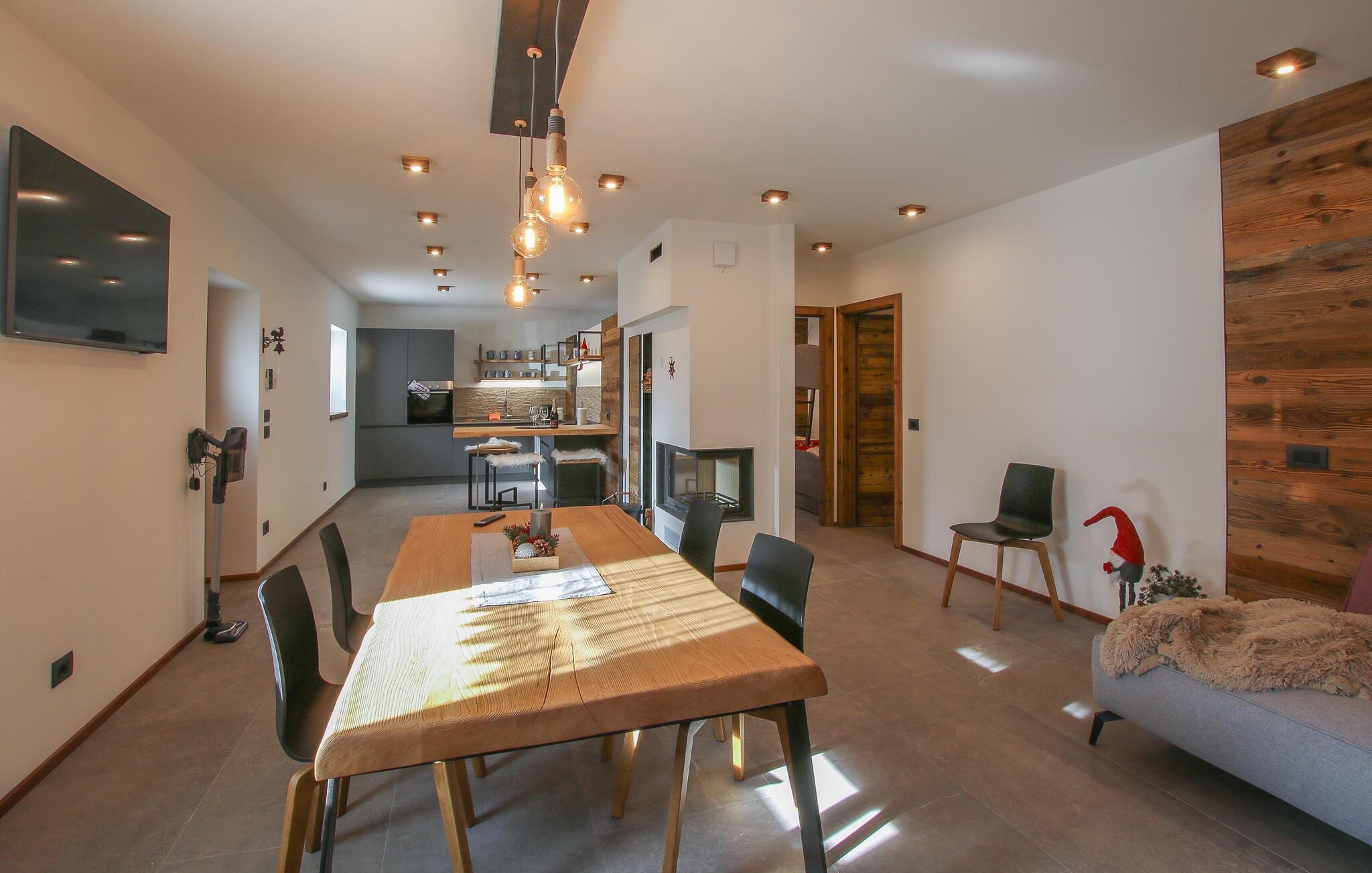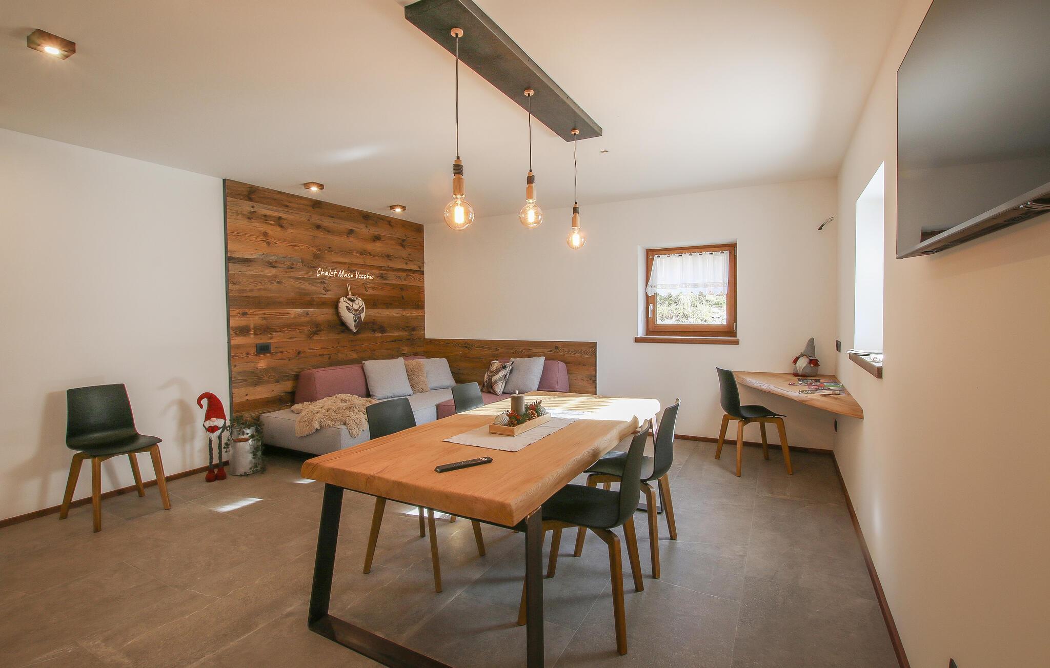Velkommen til den lækre hytte Aquila, hvor der venter jer en bolig med god plads og en virkelig flot indretning. Her smelter det autentiske, det moderne og det funktionelle sammen og skaber en atmosfære, som man ikke kan undgå at slappe af i. Tænd op i pejsen og find jer godt til rette i den behaglige sofa i stuen, hvor I kan lade dagene gå på hæld med brætspil eller en god film. Som en ekstra prik over i'et byder huset på et arbejdsområde, der gør huset særligt velegnet til jer, der ønsker at blande arbejde og fornøjelse her i den smukke Tesino-dal.