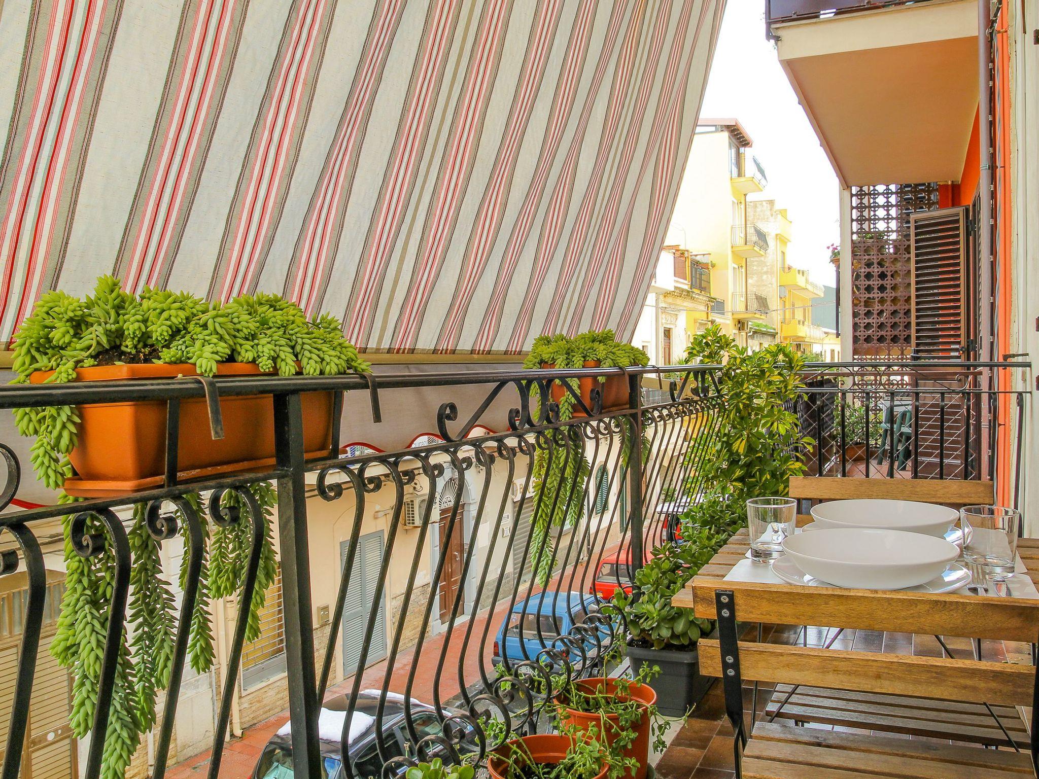 The Naxos Holiday Apartment is a lovely flat in the heart of Giardini Naxos. The flat consists of a large air-conditioned bedroom with a double bed and a small balcony, a bedroom with two single beds and a large air-conditioned living room with a double sofa bed, a flat-screen TV and a balcony. A fully equipped kitchen and a bathroom with bathtub complete the flat. A washing machine, iron and ironing board and a hairdryer are also available.The Naxos Holiday Apartment is conveniently located. Only 50 metres from the sea, it is possible to enjoy the beach of Giardini Naxos without having to travel by other means, and there are typical bars and restaurants in the immediate vicinity.For those who want to discover what the coast has to offer, the flat is 6 km from Taormina, 3 km from Isola Bella and 15 km from the Alcantara Gorges. For those landing at Fontanarossa International Airport, a bus service is available with a bus stop a few metres from the flat (journey time approx. 1 hour).