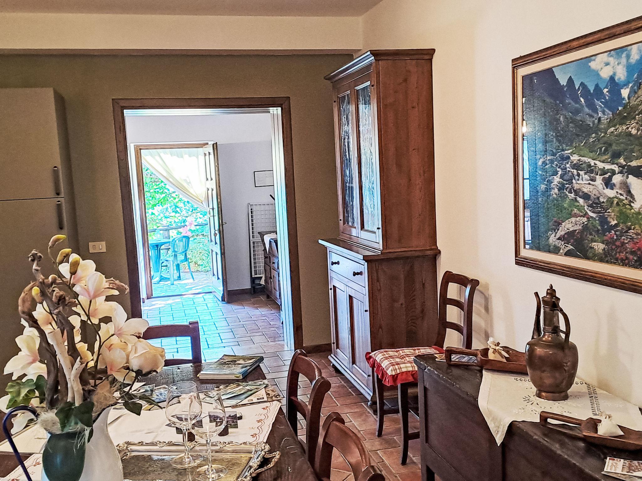 "Le Bore", 3-room apartment 80 m2, on the ground floor. Object suitable for 4 adults + 2 children. Simple and rustic furnishings: living/sleeping room with 1 double sofabed, open-hearth fireplace, dining table, satellite TV and international TV channels. 1 room with 1 french bed (160 cm). 1 room with 2 beds. Small kitchen (oven, dishwasher, Gas stove, 4 gas rings, toaster, freezer, electric coffee machine). Shower/WC. Gas heating. Terrace. Terrace furniture. Marvellous panoramic view of the mountains and the valley. Facilities: iron. Internet (WiFi, free). Please note: non-smokers only. Private entrance. IT046020B5P4VEN2QT