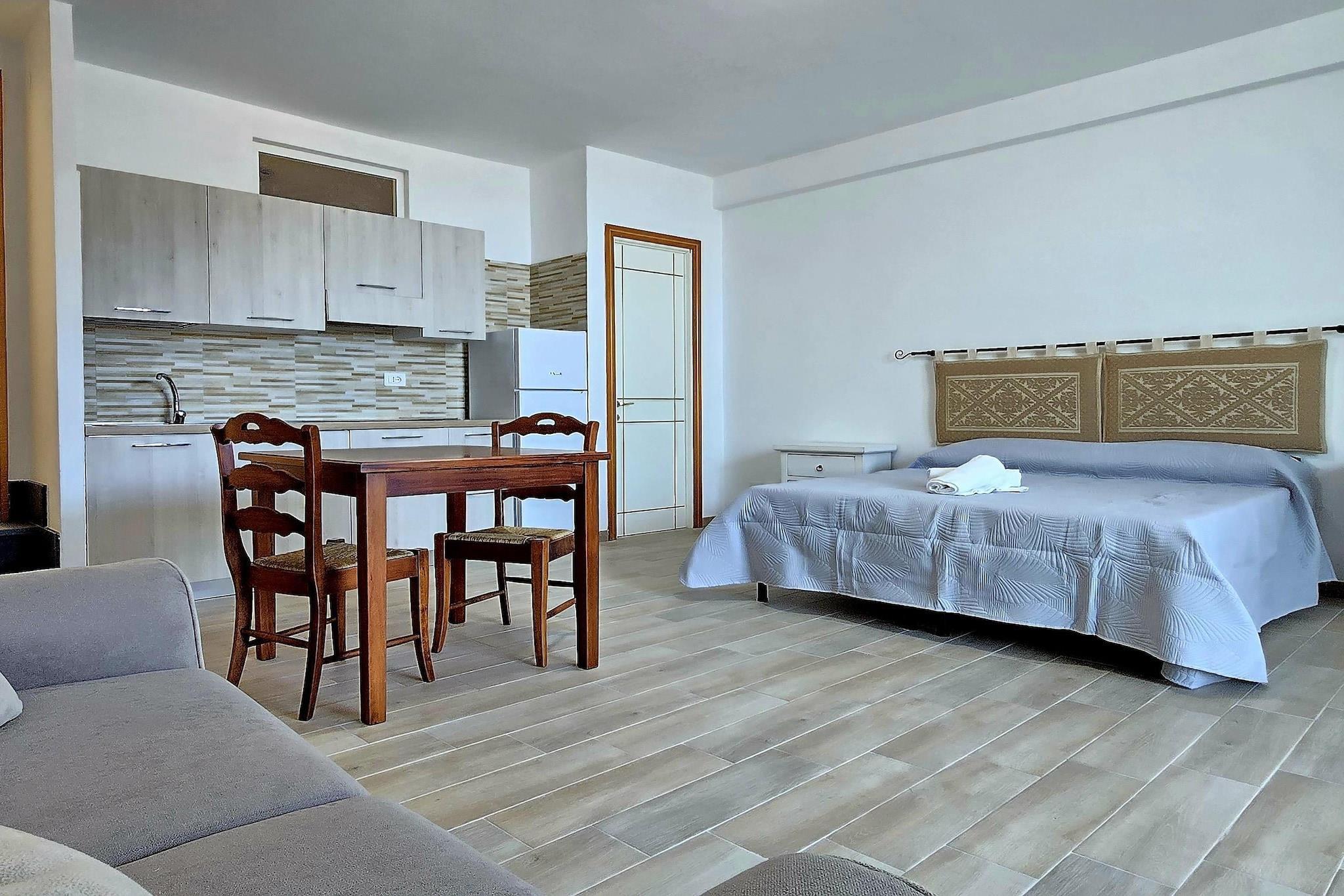 Denne moderne studiolejlighed med havudsigt ligger i Castelsardo, en af Sardiniens mest charmerende landsbyer, og tilbyder den perfekte balance mellem komfort, design og afslapning. De nybyggede lejligheder er udstyret med aircondition, induktionskomfur, køleskab med fryser og eget badeværelse med bruser. Hver enhed har en privat terrasse, ideel til at nyde morgenmaden under åben himmel eller slappe af efter en dag på stranden. Ejendommen tilbyder også en fælles panoramaterrasse på over 600 kvadratmeter, hvor gæsterne kan beundre spektakulære solnedgange over havet og skyline af den middelalderlige landsby Castelsardo. Strandene i Lu Bagnu, fiskerestauranter, butikker og alle større tjenester ligger kun få minutter væk. Castelsardo tilbyder autentiske oplevelser: besøg Doria-slottet, oplev kunsthåndværkernes værksteder i det historiske centrum, eller nyd en middag med havudsigt på en af de mange panoramarestauranter. Denne studiolejlighed er perfekt til par eller solorejsende og er den ideelle base for at opleve Sardinien i komfort og stil.