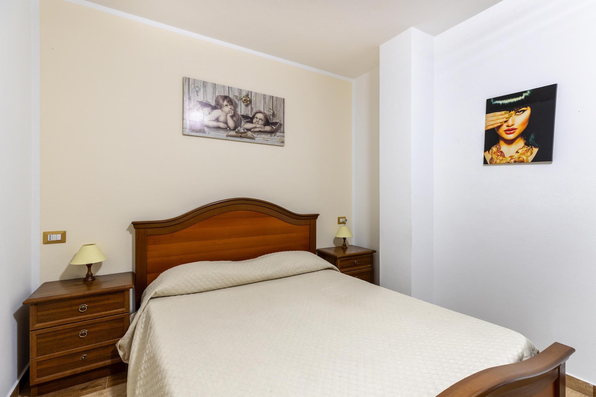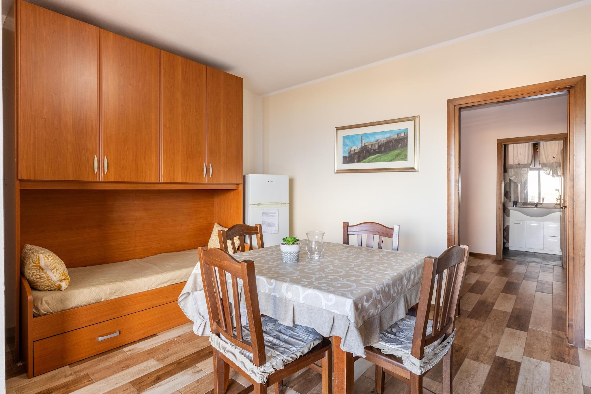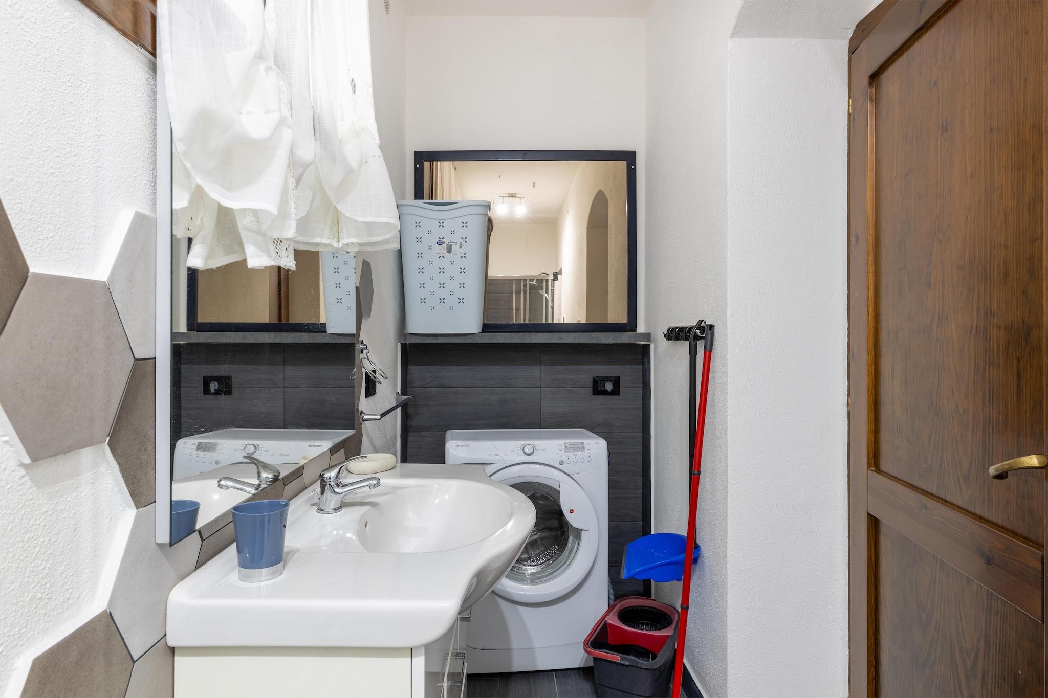 Denne charmerende lejlighed, der ligger i den fredelige stueetage i en privat villa i Lu Bagnu, tilbyder komfort, enkelhed og smuk havudsigt over Asinara-bugten. Den er perfekt til et par eller en lille familie og tilbyder en afslappende kystferie i en rolig og panoramisk beliggenhed, samtidig med at den stadig er tæt på strandene og den livlige kystatmosfære i Castelsardo. Lejligheden har en indbydende opholds- og spisestue med en dobbelt sovesofa og tv samt et åbent køkken udstyret med kogeplader, kaffemaskine og alt det nødvendige til at tilberede nemme feriemåltider. Dobbeltværelset tilbyder en god nats søvn, og det moderne badeværelse har bruser og vaskemaskine, der er ideelt til længere ophold. Udenfor er den private veranda det perfekte sted til morgenkaffe eller et aftenglas vin med den friske havbrise overalt omkring dig. Gæsterne kan benytte sig af privat parkering lige ved ejendommen, hvilket gør det nemt at udforske kysten. Strandene i Lu Bagnu ligger kun en kort køretur væk, mens Castelsardos historiske centrum med dens middelalderslot, kunsthåndværkerbutikker og restauranter ved vandet ligger kun få minutter fra din dør. Uanset om du er her for sol, hav eller et fredeligt tilflugtssted, tilbyder denne dejlige lejlighed den perfekte base for en afslappende ferie på Sardinien.