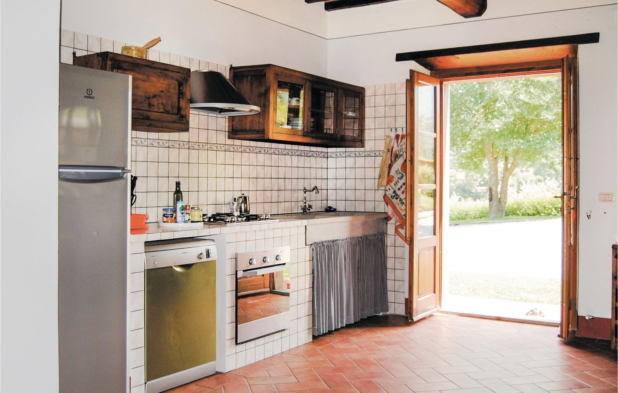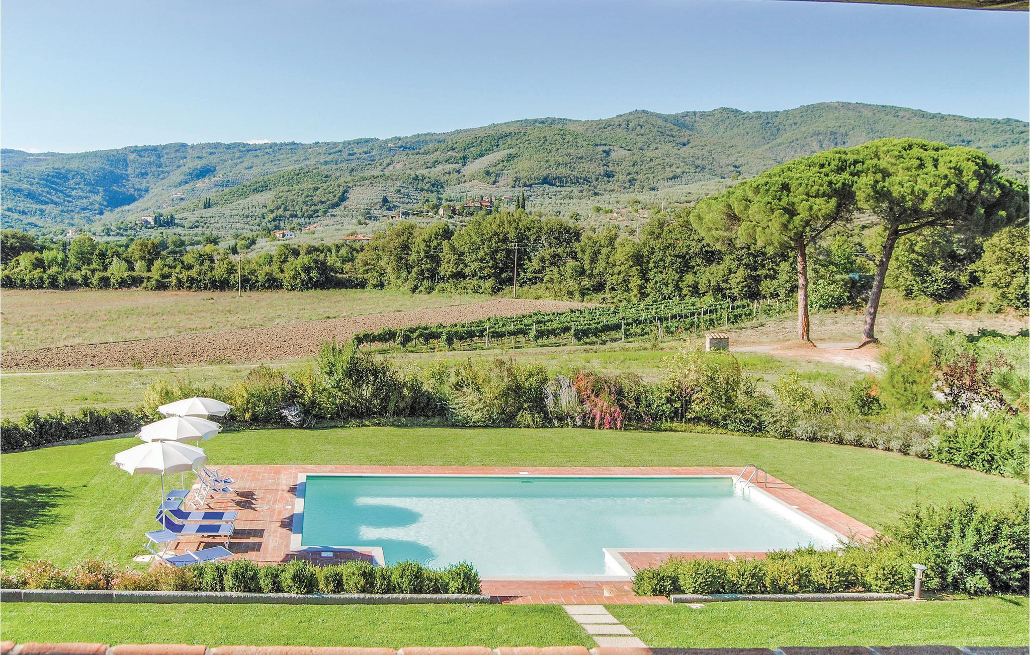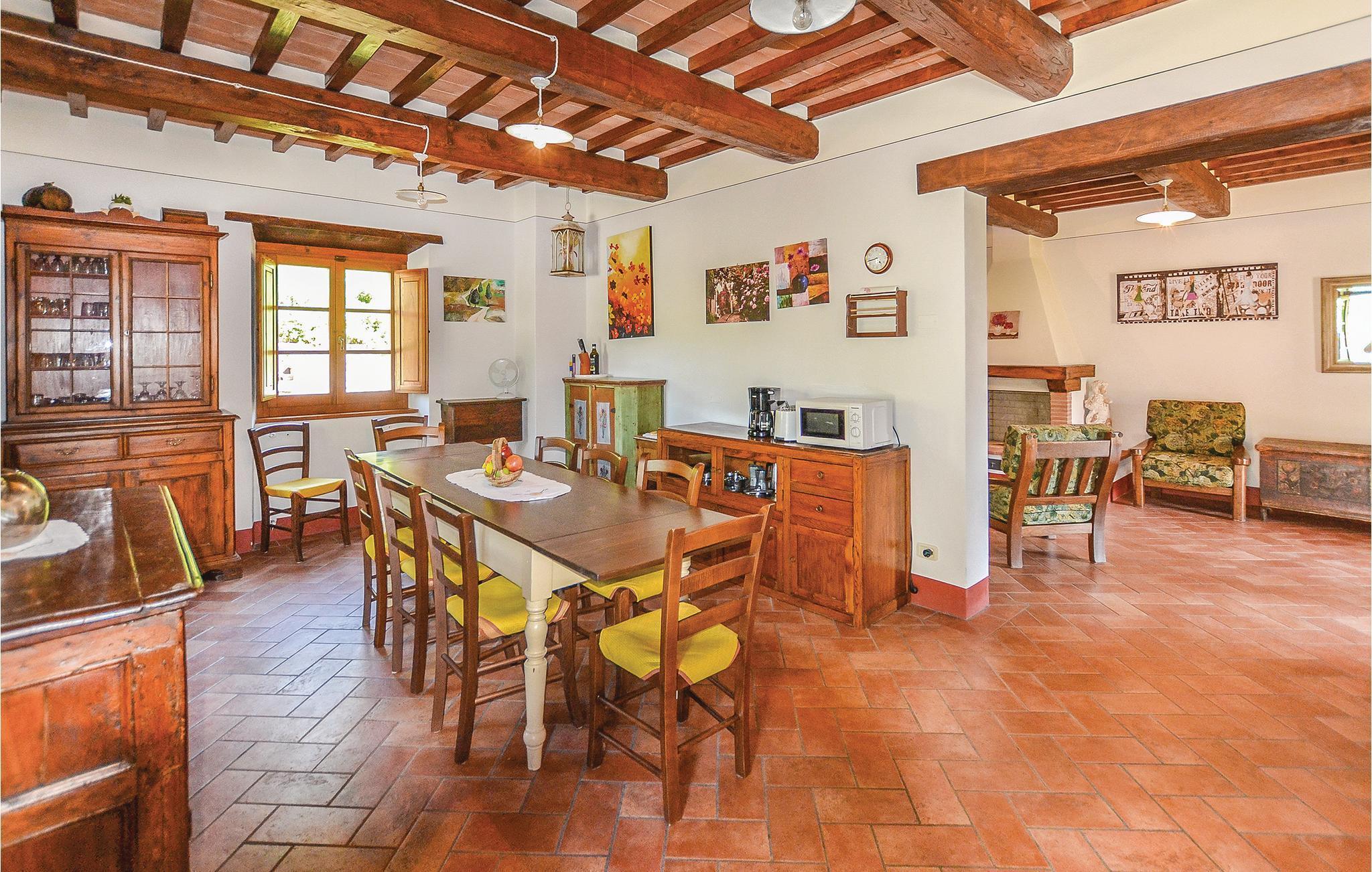 Dette komfortable landhus ligger i romantiske omgivelser, 7 km fra Castiglion Fiorentino og tilbyder de helt ideelle rammer til den afslappende familieferie. Huset består af tre lejligheder, som er smagfuldt indrettet, og som kun udlejes sammen. I alt er der fem soveværelser, et på hemsen under skråtag, med eget badeværelse. Dertil er der i stueetagen en stor stue med satellit-tv, åben pejs og er godt udstyret alrum med køkken og udgang til haven: Det store velholdte haveområde med udendørs køkken (grill, barbecue og overdækket siddeplads), lille skovområde, bordtennis og fælles swimmingpoolområde står alene til jeres rådighed. Her er der mange solrige og skyggefulde siddepladser samt forskellige små pavilloner med vidunderlig udsigt over Val di Chio. Området er helt ideelt til jer, der gerne vil lære de skønne kunstbyer i Toscana og Umbrien at kende. Oplev kulturelle seværdigheder i de gamle byer Arezzo, Siena, Perugia, Cortona eller den lille by Montepulciano, som også er kendt for sin produktion af Nobile-rødvin. Et besøg værd er bestemt også den pittoreske by Pienza, hvor I skal smage på den fremragende, lokale pecorino-gedeost, og den smukke Trasimenosø med sine strande med udstyr til leje. I Castiglion Fiorentino er der alle slags butikker, gode restauranter og barer til en cappuccino eller aperitivo på piazzaen.