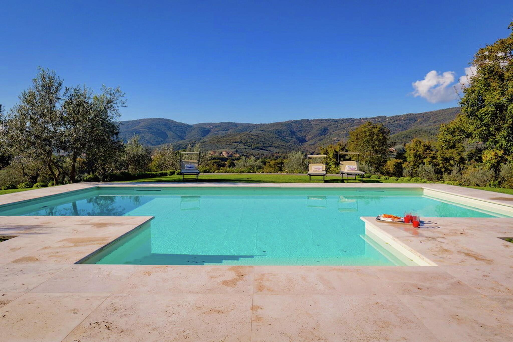 Villa America ligger i en smuk beliggenhed på en bakke, få kilometer fra de livlige byer Castiglion Fiorentino og Cortona. Denne gamle toscanske bondegård har en fantastisk udsigt over det omkringliggende landskab og er det ideelle valg for gæster på udkig efter privatliv og ro. Det er en restaureret villa, der er meget smagfuldt og elegant indrettet. Villaen har mange åbne rum, store døre, stengulve og smukke træbjælker på loftet. Fra den store have med swimmingpool har du panoramaudsigt. På terrassen er der en grill og er derfor ideel til spisning udenfor med et godt glas lokalvin. Ejeren af villaen er en amerikansk bor i en lille afhængighed ved siden af villaen med egen indgang på ejendommen. Ejeren vil med glæde give dig råd og anbefalinger om området. Villaen, swimmingpoolen og haven er udelukkende til brug for gæsterne og bruges ikke af ejeren.