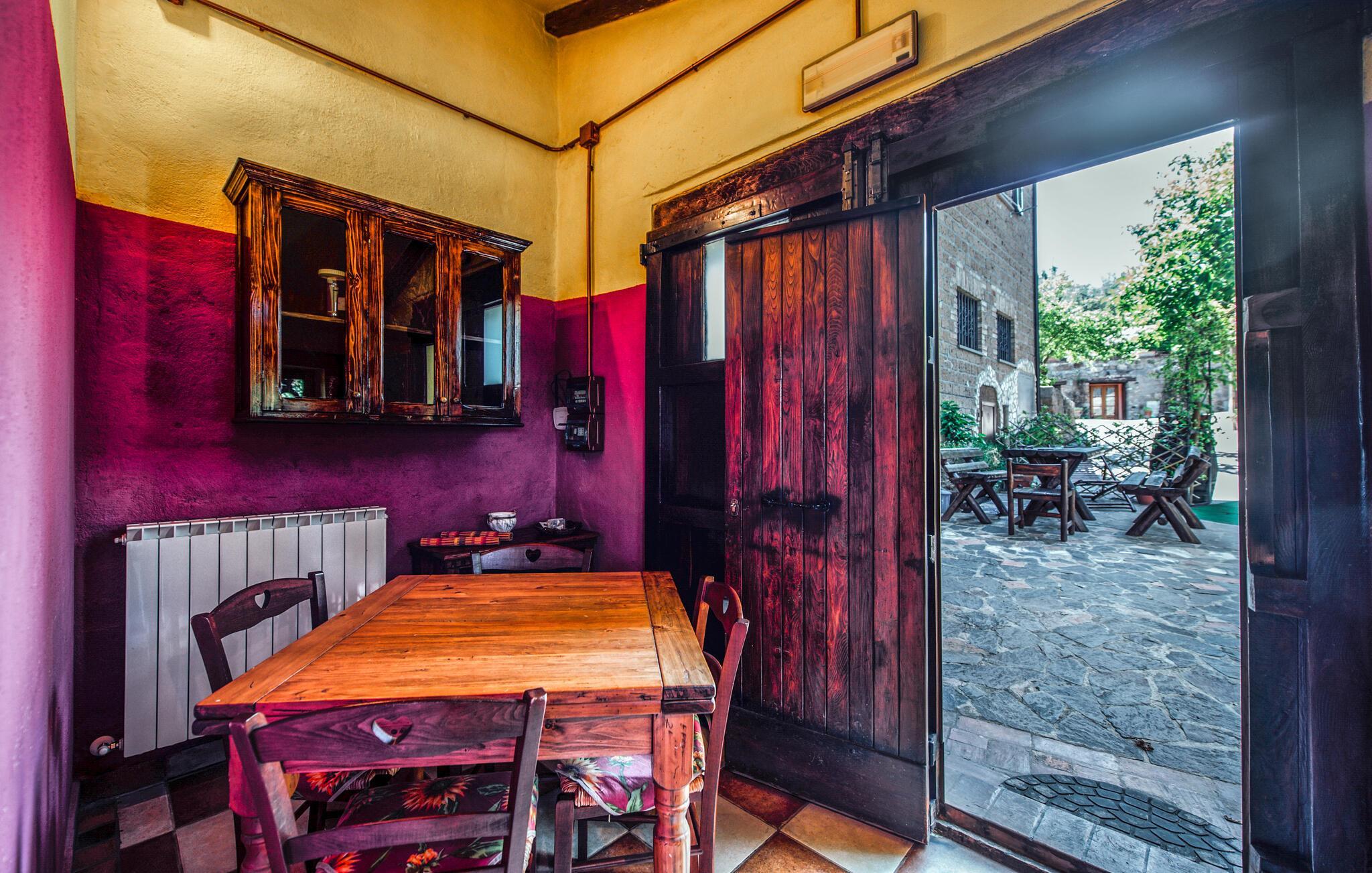 Velkommen til denne dejlige lejlighed, der ligger i rolige omgivelser, og hvor I får en herlig base for årets ferie. Indretningen fremtræder pænt og rustikt med synligt bindingsværk og stenvægge, der sammen med de stærke farver og praktiske møbler gør det nemt at slappe af med det samme, I ankommer. Lejligheden er udstyret med alt, I behøver for at kunne slappe af før og efter dagens udflugter, og afhængig af ledighed kan I booke andre lejligheder på grunden, som I deler spabad og sauna med.