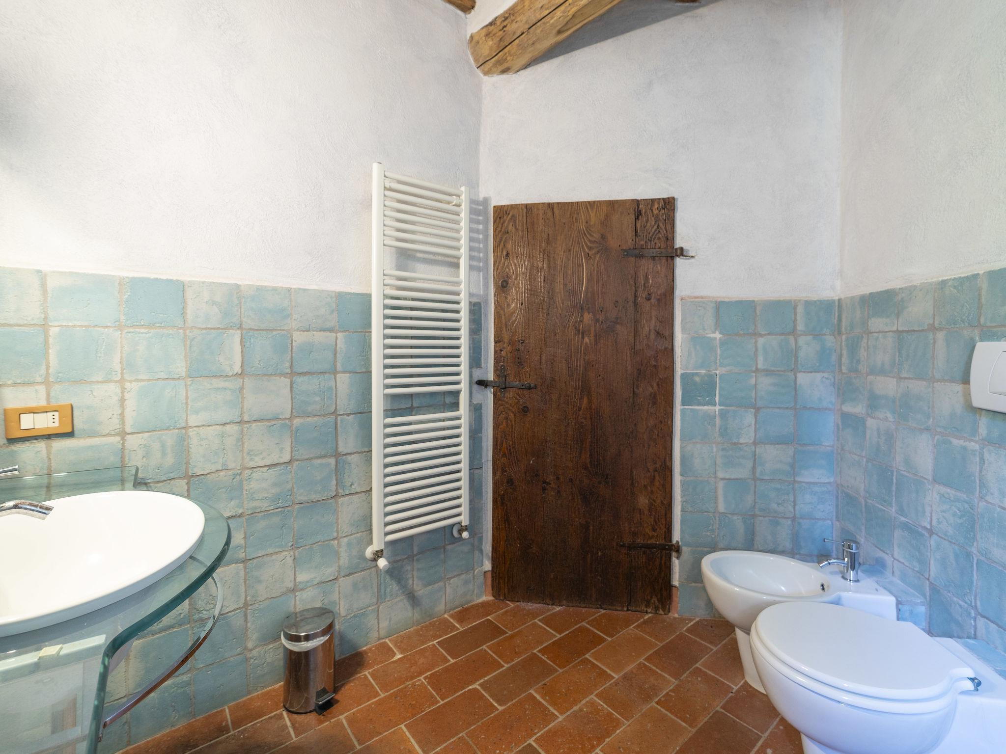 3 km from Castiglion d'Orcia: This former small monastery with wonderful views over the Orcia valley in the southern province of Siena has been converted into 2 beautiful, spacious apartments connected by an external staircase in true elegant country Tuscan style. Large, beautiful, historical villa "Casa Frati", from the 15th century, renovated, surrounded by fields and vineyards. 2 apartments in the property. 6 km from the centre of San Quirico d'Orcia, in a secluded, quiet position on top of a hill. Private: property, garden 4'600 m2 (not fenced) with lawn, swimming pool (6 x 12 m, depth 140 - 180 cm, seasonal availability: 07.Apr. - 15.Oct.). Hot tub, barbecue. In the house: internet access, sauna (extra). Washing machine. House maid on request (extra). Motor access (1 km via unmade road). Parking on the premises. Grocery 3 km, supermarket 6 km, restaurant 3 km, bus stop 1.5 km, thermal baths "Bagno Vignoni" 3 km. Nearby attractions: Siena 55 km, Montepulciano 25 km, Pienza 18 km, Montalcino 23 km. Please note: car recommended.