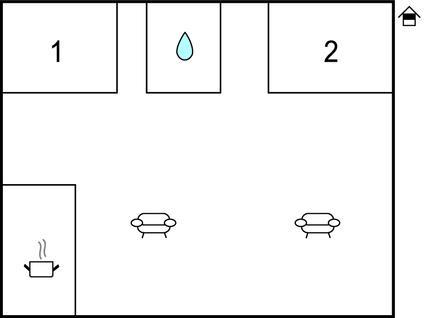 Lejligheden er hyggelig og velindrettet med køkkenalrum, som vil blive et naturligt samlingspunkt for familiehyggen på jeres ferie. Lejligheden har desuden et badeværelse og to soveværelser.