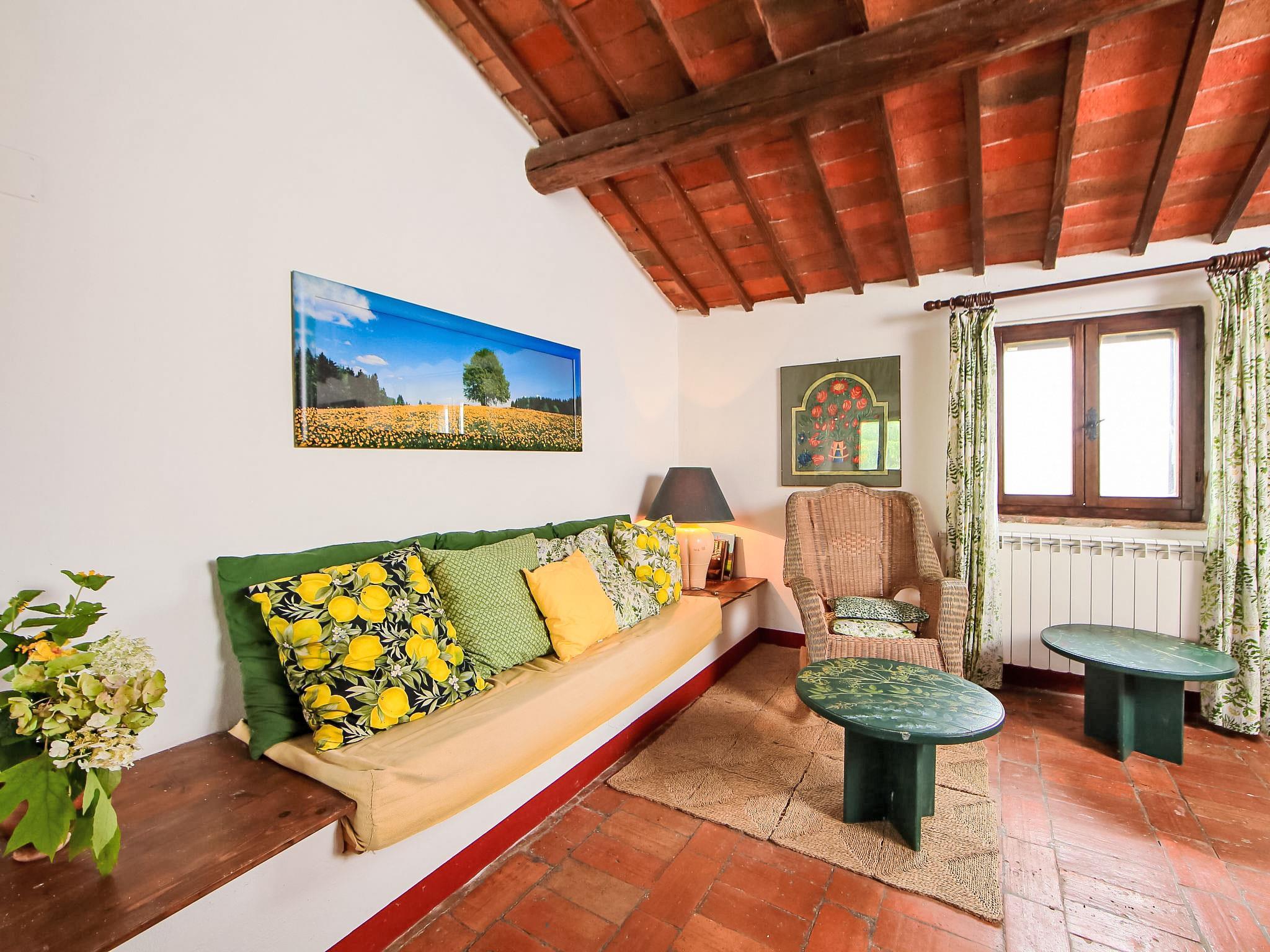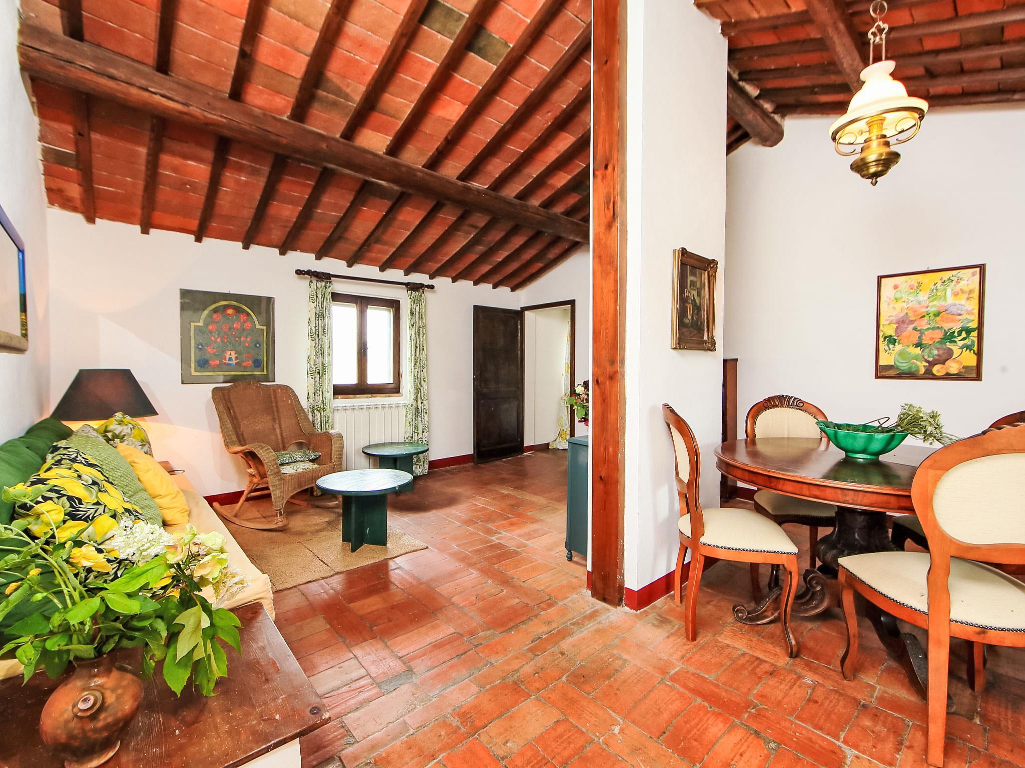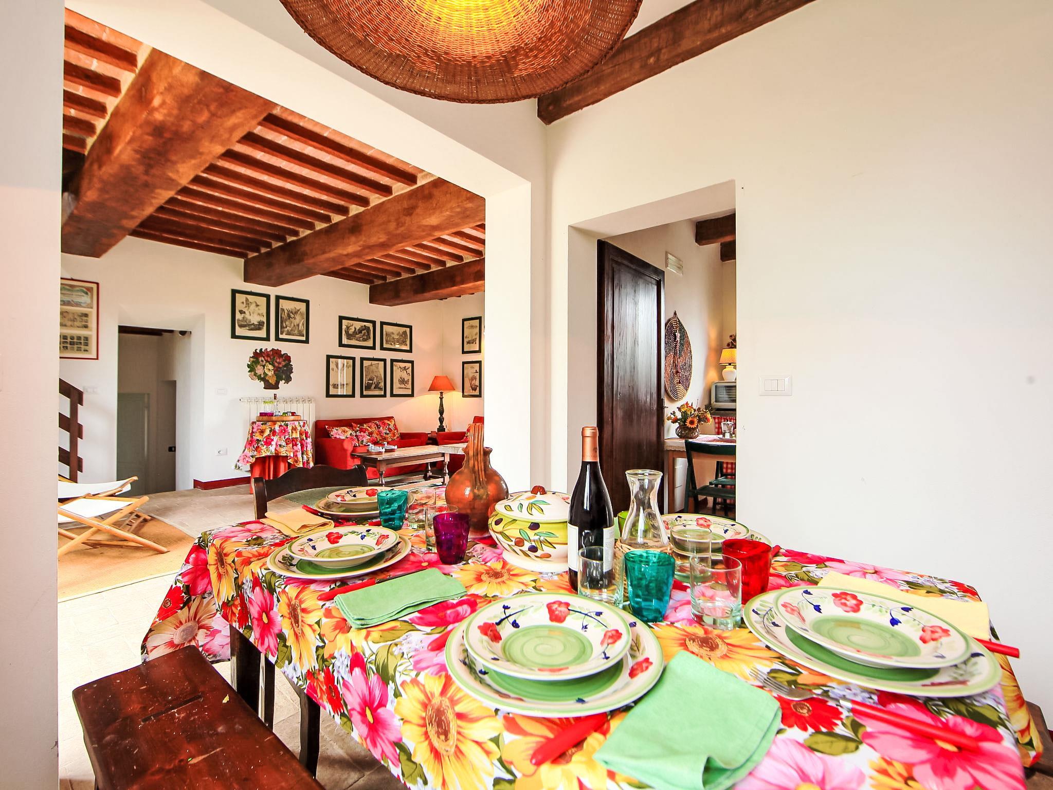 Cosy, rustic country house "Le Nuvole", detached, surrounded by fields. 5 km from the centre of Castiglione Del Lago, in a sunny position, 5 km from the lake. Private: garden 500 m2 (fenced), swimming pool fenced (10 x 5 m, depth 140 cm, seasonal availability: 15.May. - 15.Oct.). Outdoor shower, garden furniture, barbecue, pool maintenance by the owner/gardener. Motor access (500 m via unmade road). Parking at the house. Supermarket 5 km, restaurant 3 km, bar 4 km, railway station "Castiglion Del Lago" 5 km, thermal baths "Chianciano" 27 km, bathing lake "Trasimeno" 5 km. Golf course (9 hole) 10 km. Nearby attractions: Cetona 15 km, Città Della Pieve 20 km, Passignano Sul Trasimeno 26 km, Cortona 37 km, Perugia 45 km, Pienza 45 km. Please note: car recommended.