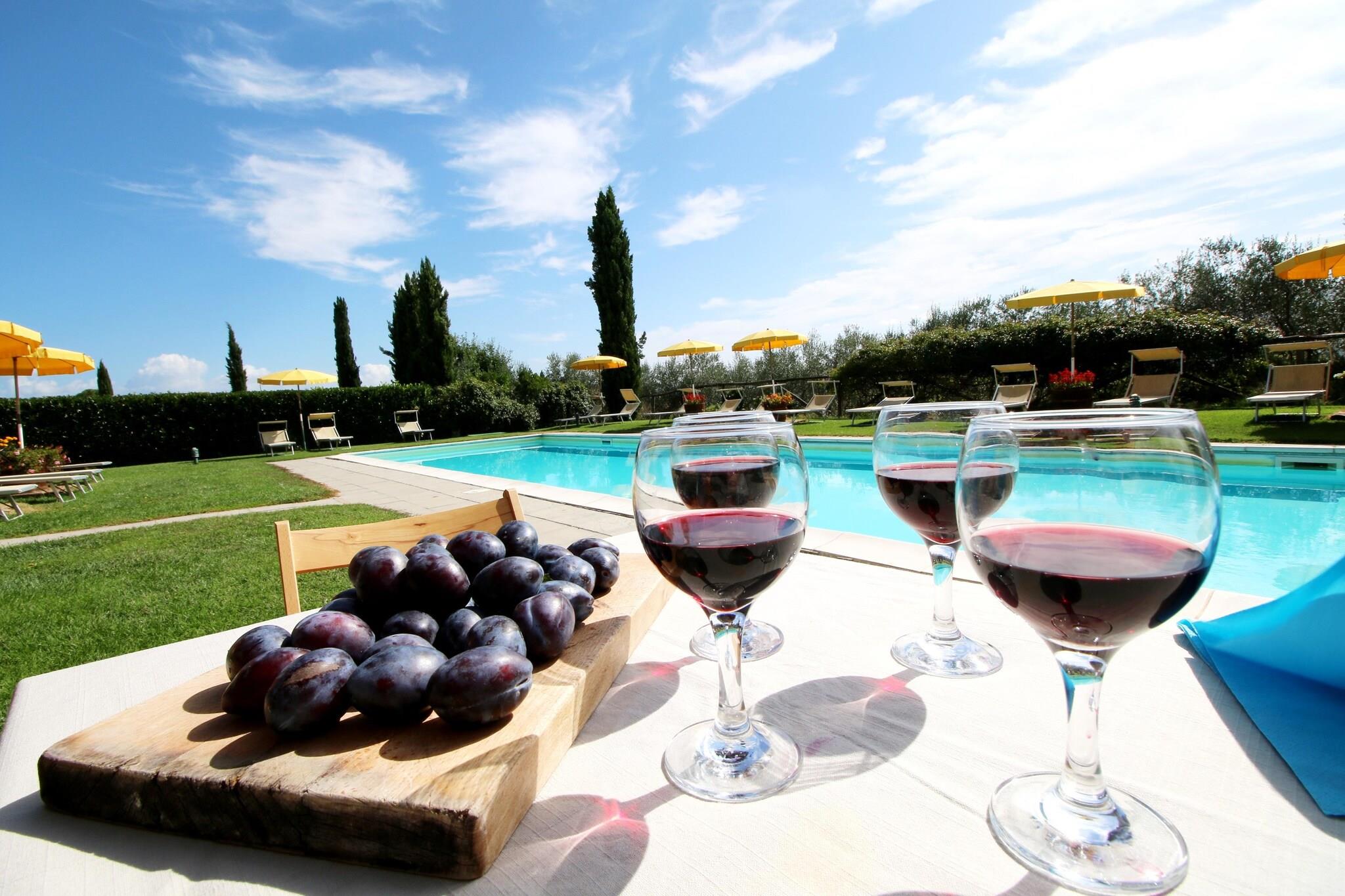Denne agriturismo ligger mellem Umbrien og Toscana i det fredelige landskab, kun 7 km fra Trasimenosøen. Ejendommen er omgivet af bølgende bakker med en fantastisk udsigt over vinmarker, olivenlunde og lavendelmarker. Med 11 lejligheder i alt, er det et ideelt tilflugtssted til at slappe af og nyde områdets naturlige skønhed. Peonie-lejligheden har en privat terrasse og et hyggeligt, smagfuldt indrettet interiør. Det tilbyder et behageligt og indbydende sted, hvor gæsterne kan slappe af og nyde landskabets ro. Agriturismoen er familievenlig med en swimmingpool, legetøj til børn og en fodboldbane, hvilket gør den perfekt til familier med børn. Ud over sine smukke omgivelser sælger agriturismoen lokal vin og olivenolie. Det er også en god base for at udforske nærliggende byer som Castiglione del Lago, Passignano, Citta della Pieve og Perugia, samt vandreture gennem naturparker. Gæsterne kan nyde regionale måltider på nærliggende restauranter, mens de nyder charmen ved den umbrisk-toscanske grænse.