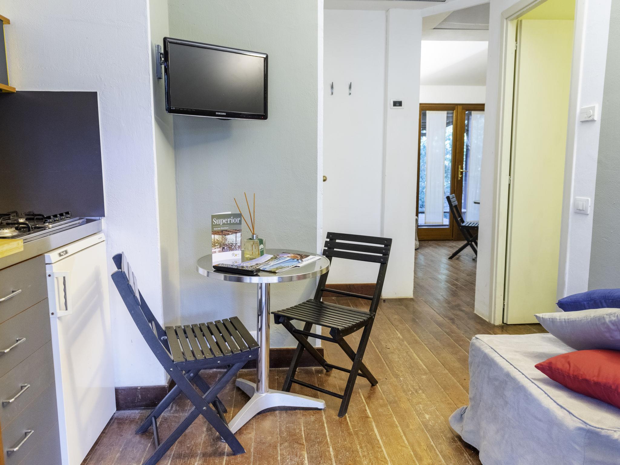 "Tipo C", 4-room cottage 42 m2, on the ground floor. Object suitable for 4 adults + 2 children. Comfortable furnishings: living/dining room with 1 sleeping facility, kitchen corner and TV. Exit to the terrace, to the patio. 2 double bedrooms. Living/dining room with 1 sleeping facility and kitchen corner. Exit to the terrace. Kitchenette (4 gas rings). 2 showers/bidet/WC. Air-conditioning. Patio. Terrace furniture. Facilities: Internet (WiFi, free). Please note: private entrance. The cottage consists of 2 units with an internal connecting door. It has a private terrace surrounded by a beautiful Mediterranean garden of this secluded property. Object suitable for 4 adults and 2 children under 11 years.