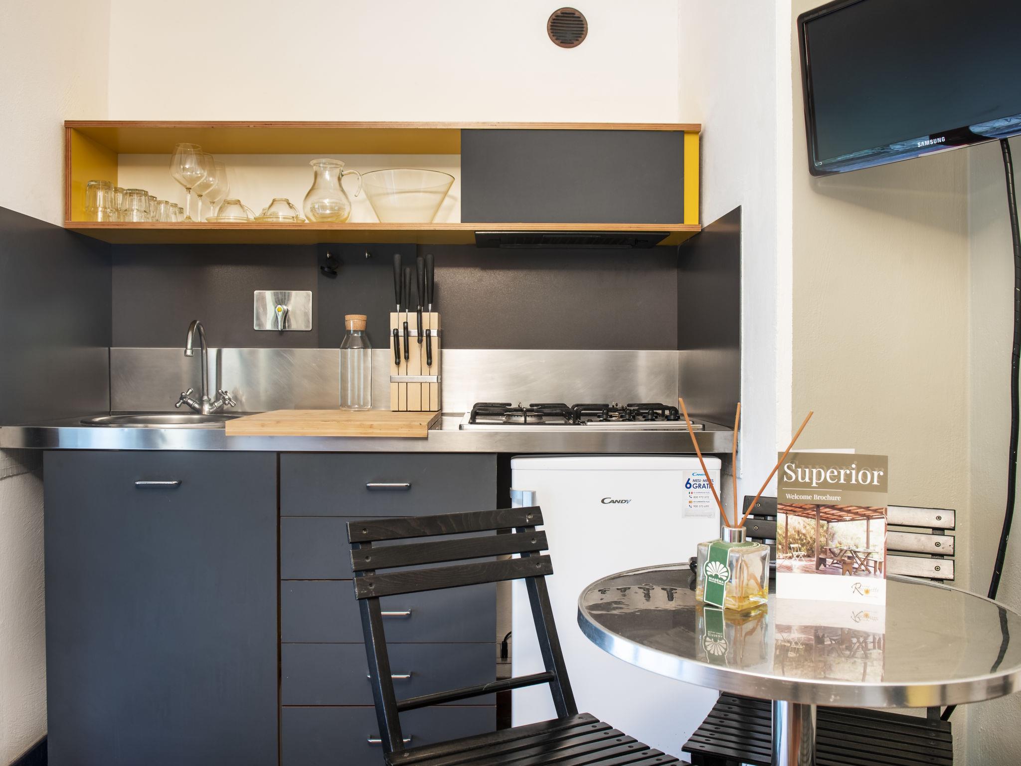 "Tipo A", 2-room cottage 21 m2, on the ground floor. Object suitable for 2 adults + 1 child. Comfortable furnishings: living/dining room with 1 sleeping facility, kitchen corner and TV. Exit to the terrace. 1 double bedroom. Kitchenette (4 gas rings). Shower/bidet/WC. Air-conditioning. Patio. Sitting area. Facilities: Internet (WiFi, free). Please note: private entrance. This is a semi-indipendent cottage as it is divided in 2 properties, each with a terrace surrounded by a pinewood. Object suitable for two adults and one child under 11 years.