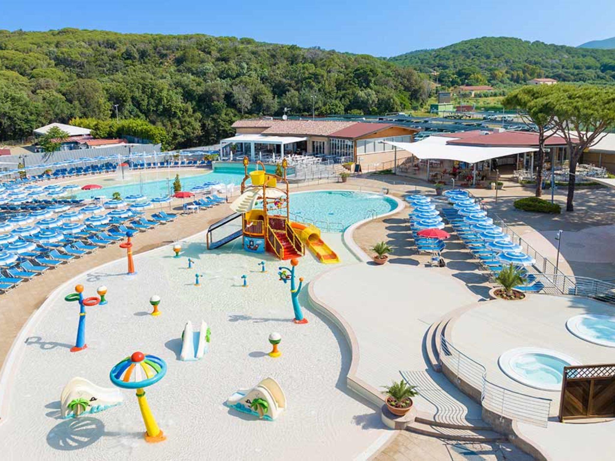Nestled in the colours and scents of the Mediterranean sea, this resort offers the comforts of lovely bungalow, with own private outdoor spaces and amenities ideally for families and their children. It is in a great location to visit Maremma and the cities of arts that surrounds it (Siena, Pisa, Florence, Rome). 2 swimming pools (swimming cap compulsory) with deck chairs and sun shade, one for children and one with hot tub next to the main facilities. Large resort. In the hamlet Rocchette 7 km from the centre of Castiglione della Pescaia, in a quiet position, 150 m from the sea, road to cross. For shared use: 2 swimming pools (depth 150 cm, seasonal availability: 28.Mar. - 01.Nov.). WC in the pool area, children's pool, outdoor shower, hot tub, tennis, beach volleyball, children's playground. In the complex: reception, restaurant, bar, WiFi, shopping facilities, washing machine, tumble dryer (for shared use, extra), bicycle rental. Available: canoe (extra). Breakfast full board half board possible on request (extra). Parking on the premises. E-charging station. Supermarket 8 km, bus stop 50 m, sandy beach "Le Rocchette" 150 m. Marina 10 km, golf course (18 hole) 20 km, riding stable 10 km. Nearby attractions: Punta Ala 12 km, Follonica 20 km, Massa Marittima 30 km. Please note: entertainment in the season. Suitable for families. The holiday properties may differ in situation, size and location. Access to the sea with a free beach (free) or equipped beach for guests (extra on request) is located in front of the Residence. Restaurant, pizzeria, bar, supermarket, butcher, ATM, soccer, outdoor fitness area, padel field, large playground and animation (30.05–27.09 ca).