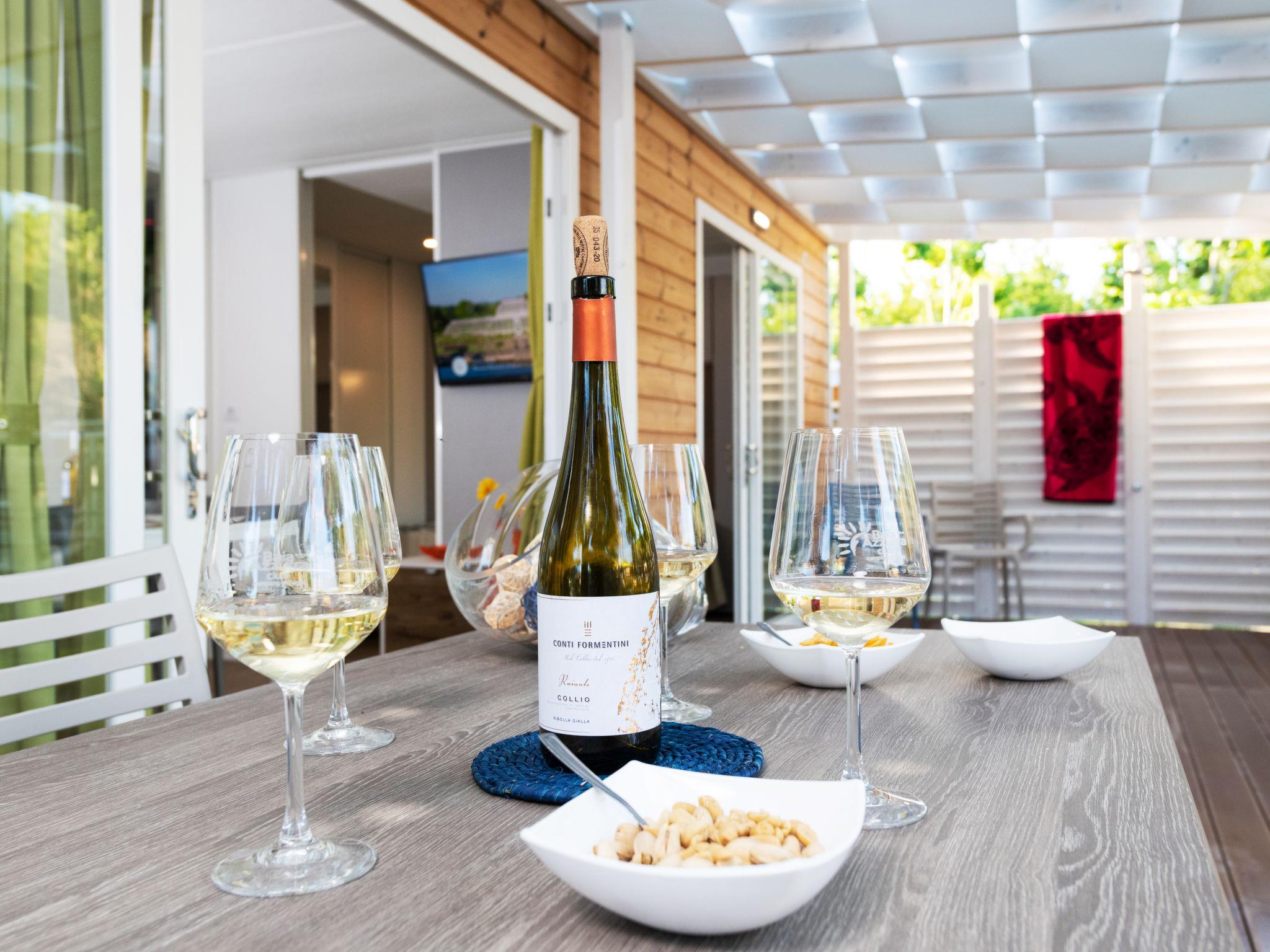 "Fashion", 3-room mobile home 38 m2, on the ground floor. Comfortable and modern furnishings: living/dining room with kitchen corner. Exit to the garden, to the veranda. 1 double bedroom with shower/bidet/WC. 1 room with 2 beds. Shower/WC. Air-conditioning. Terrace, garden. Terrace furniture. Facilities: safe, mosquito net, hair dryer. Internet (WiFi, free). E-charging station. Please note: private entrance. IT053006B1ZWQW8ZUA