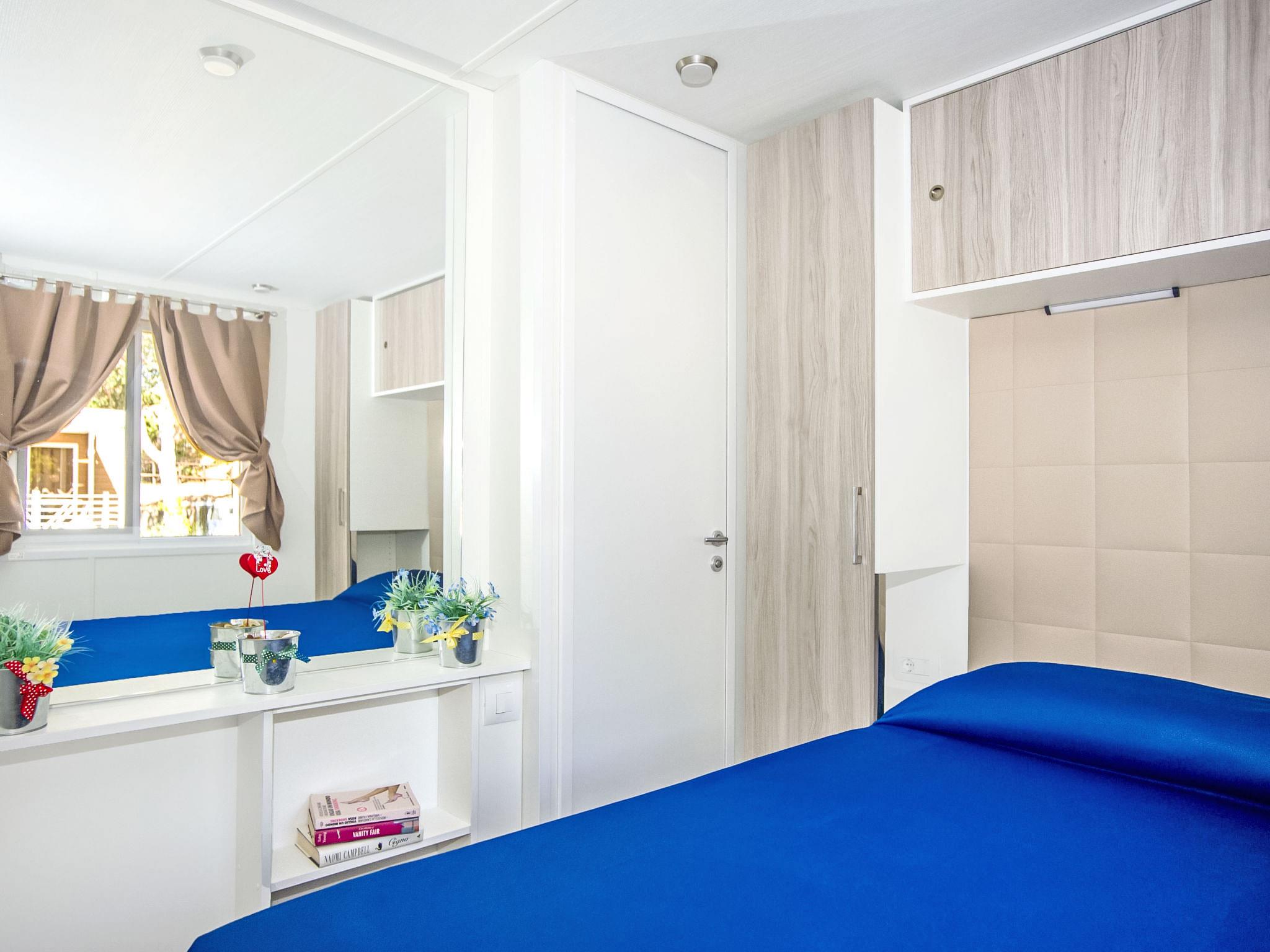 "Bungalow Trendy", 3-room mobile home 30 m2, on the ground floor. Object suitable for 4 adults + 1 child. Very practical and modern furnishings: living/dining room with kitchen corner and satellite TV. Exit to the veranda. 1 double bedroom with 1 double bed and separate WC. 1 small room with 3 beds. Shower/WC. Air-conditioning. Terrace 14 m2, garden. Terrace furniture. Facilities: safe, mosquito net, hair dryer. Internet (WiFi, free). E-charging station. Suitable for families. IT053006B1ZWQW8ZUA