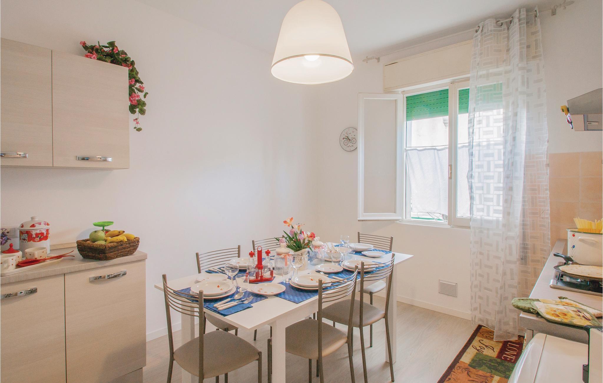 Denne lyse og hyggelige ferielejlighed tilbyder jer et charmerende hjem, mens I tager en pause fra hverdagen med familien, i gåafstand fra sandstranden. Fremstil lækre pastaretter i det moderne køkken og glæd jer til hyggelige måltider og sjove spilleaftener ved spisebordet.