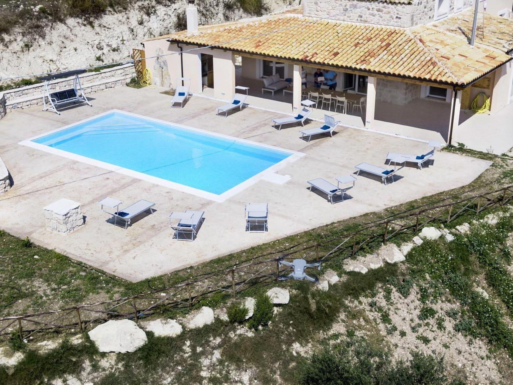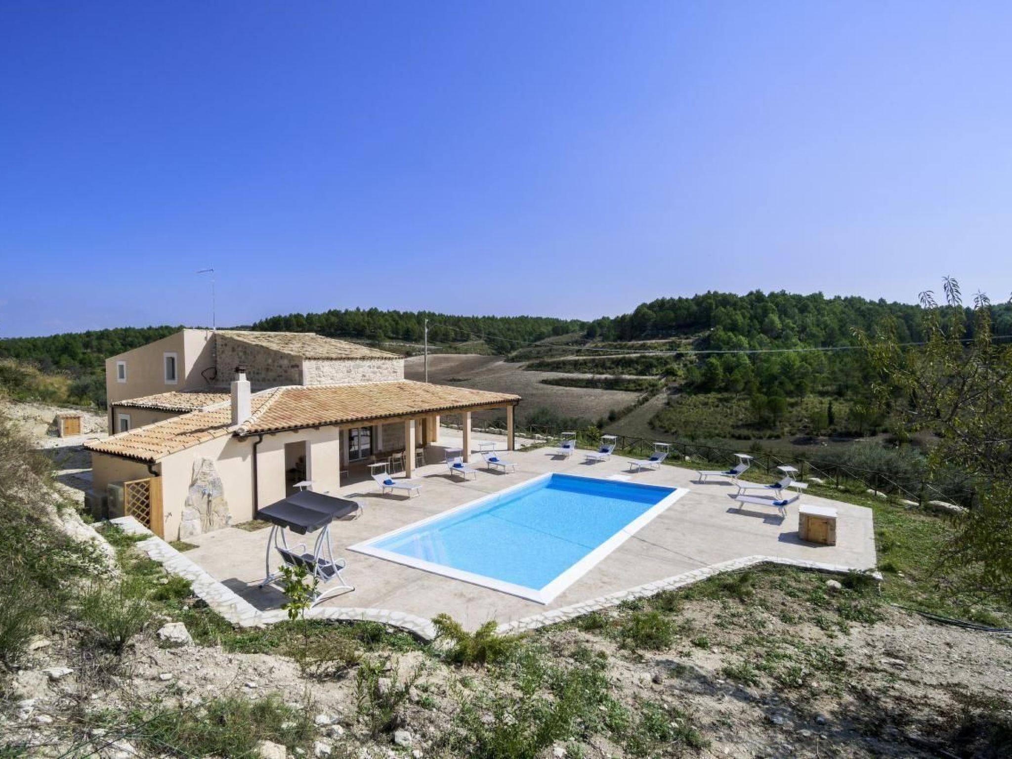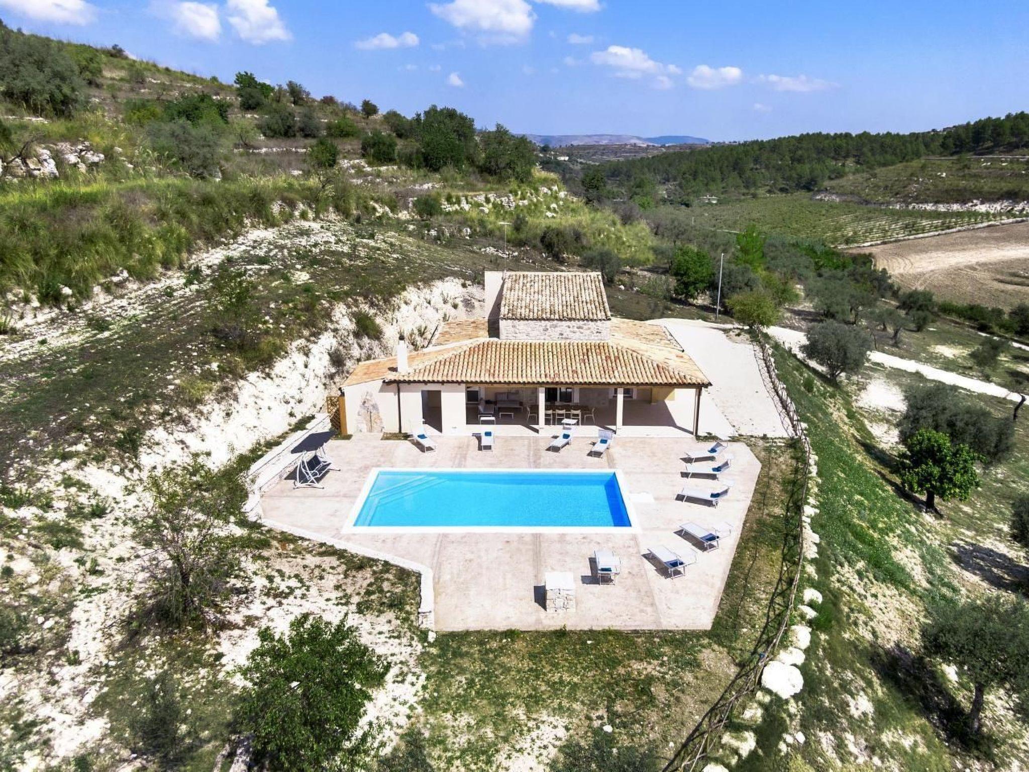 Delightful villa immersed in the green countryside of Giarratana, in Contrada Serramargi, in an oasis of Mediterranean vegetation. The house is on two levels. On the ground floor, the large and bright living room, equipped with two double sofa beds and a TV cabinet, is furnished with style and simplicity, which matches perfectly with the furnishings of the kitchen. Both are arranged in a single room to make the most of the brightness and space that the house offers. In addition, we find a second living room that can also be used as a bedroom thanks to the comfortable double sofa bed inside. On the ground floor we also find the laundry room with washing machine, a bedroom with two single beds, and a double bedroom. Each room on this floor has an en-suite bathroom. On the second floor is the sleeping area which consists of three bedrooms, one double, one twin and one room with three single beds. All the rooms have a bathroom with shower. The large outdoor spaces allow you to fully enjoy the Villa also outside, thanks to a spacious veranda equipped with garden furniture, barbecue and outdoor kitchen, from here you can have a view of all the greenery surrounding the house and of the beautiful swimming pool for the exclusive use of the tenants. The whole house is furnished to be comfortable in both summer and winter holidays, it is equipped with hot/cold air conditioners, in the living room and in each bedroom.Short descriptionOther : Non-smoking houseShort description 1Total kitchens : 1Garden and outdoor spacesGarden equipment : GrillAdjacent leisure facilities : Swimming pool, Private outdoor pool, Hot tub