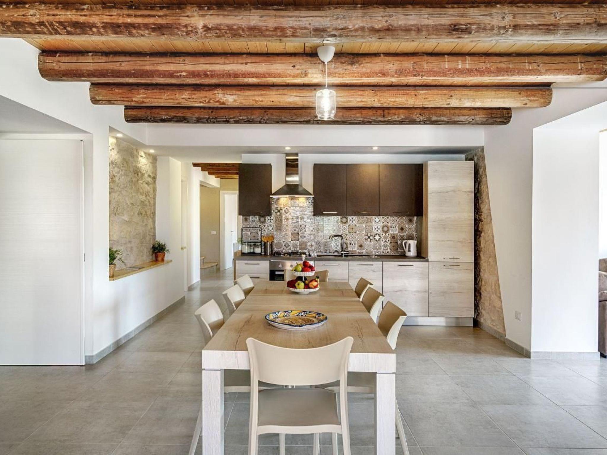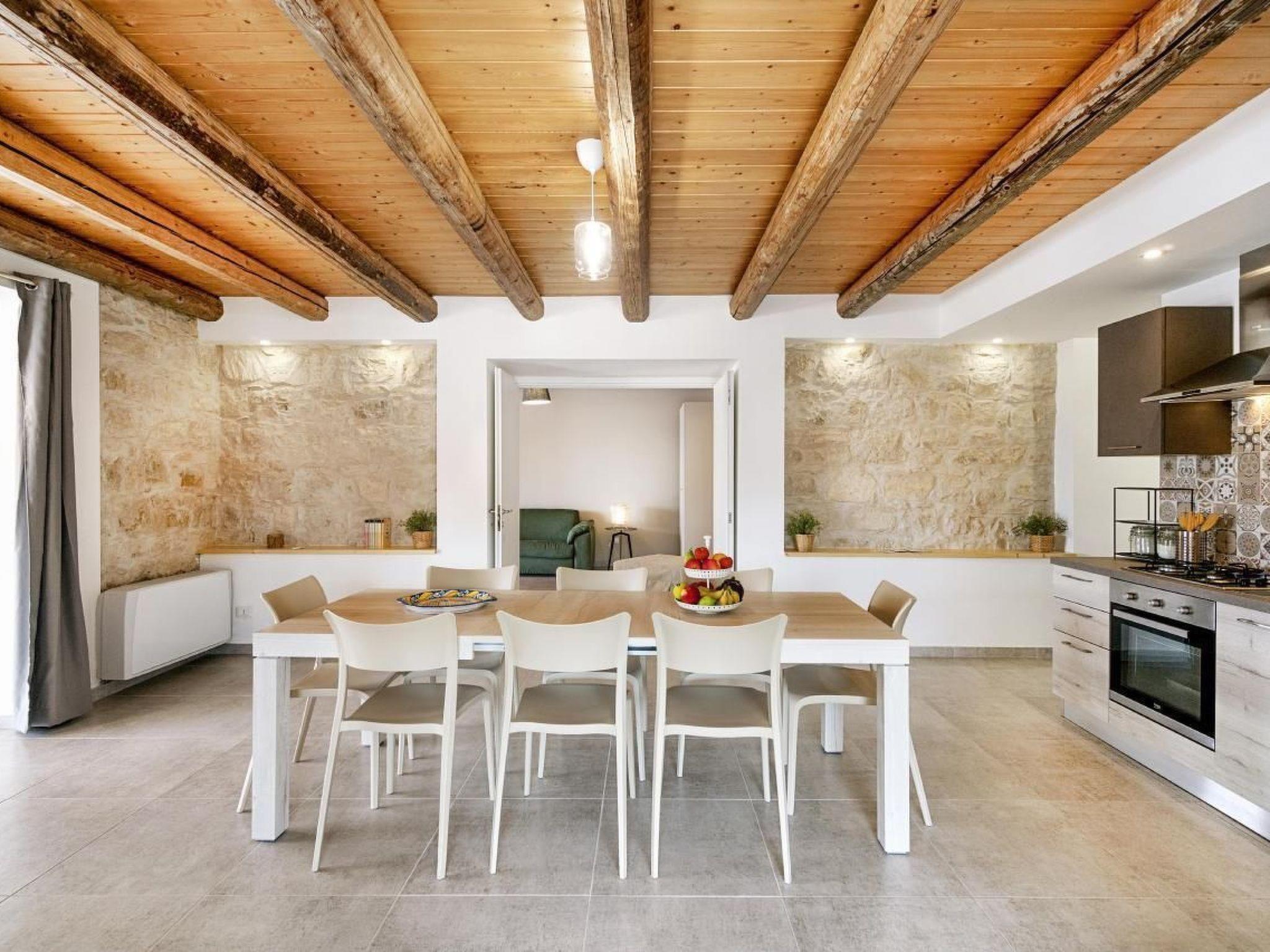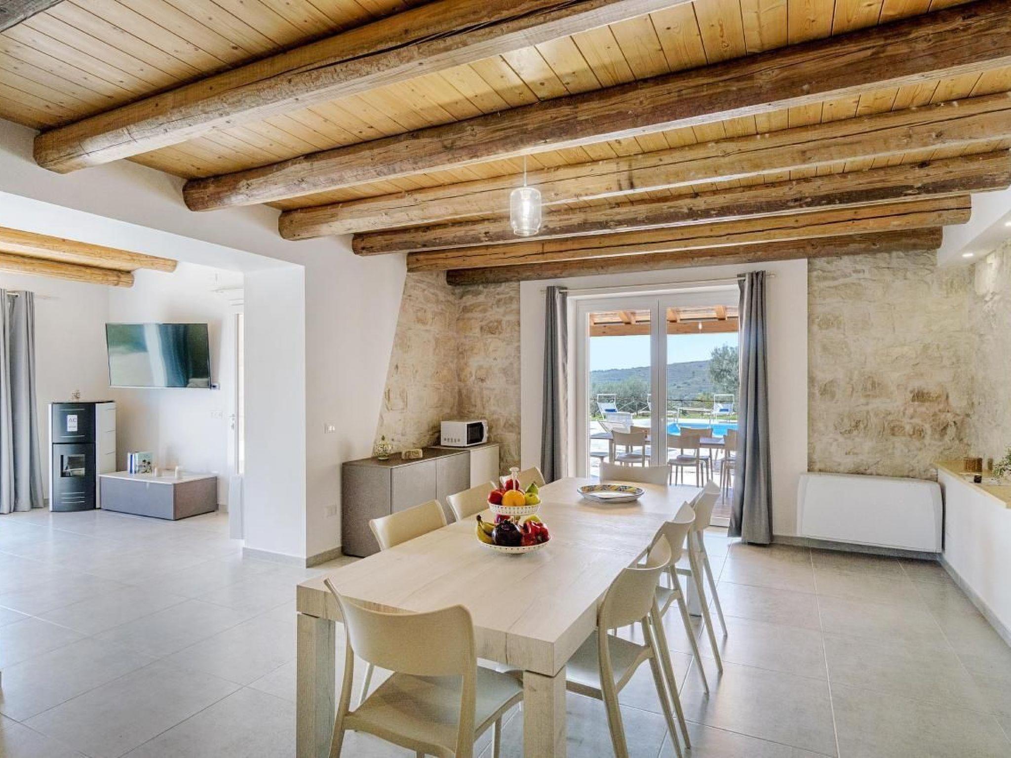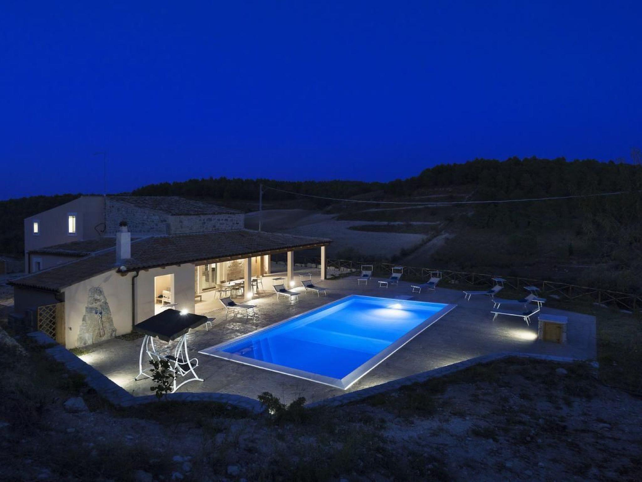 Delightful villa immersed in the green countryside of Giarratana, in Contrada Serramargi, in an oasis of Mediterranean vegetation. The house is on two levels. On the ground floor, the large and bright living room, equipped with two double sofa beds and a TV cabinet, is furnished with style and simplicity, which matches perfectly with the furnishings of the kitchen. Both are arranged in a single room to make the most of the brightness and space that the house offers. In addition, we find a second living room that can also be used as a bedroom thanks to the comfortable double sofa bed inside. On the ground floor we also find the laundry room with washing machine, a bedroom with two single beds, and a double bedroom. Each room on this floor has an en-suite bathroom. On the second floor is the sleeping area which consists of three bedrooms, one double, one twin and one room with three single beds. All the rooms have a bathroom with shower. The large outdoor spaces allow you to fully enjoy the Villa also outside, thanks to a spacious veranda equipped with garden furniture, barbecue and outdoor kitchen, from here you can have a view of all the greenery surrounding the house and of the beautiful swimming pool for the exclusive use of the tenants. The whole house is furnished to be comfortable in both summer and winter holidays, it is equipped with hot/cold air conditioners, in the living room and in each bedroom.Short descriptionOther : Non-smoking houseShort description 1Total kitchens : 1Garden and outdoor spacesGarden equipment : GrillAdjacent leisure facilities : Swimming pool, Private outdoor pool, Hot tub