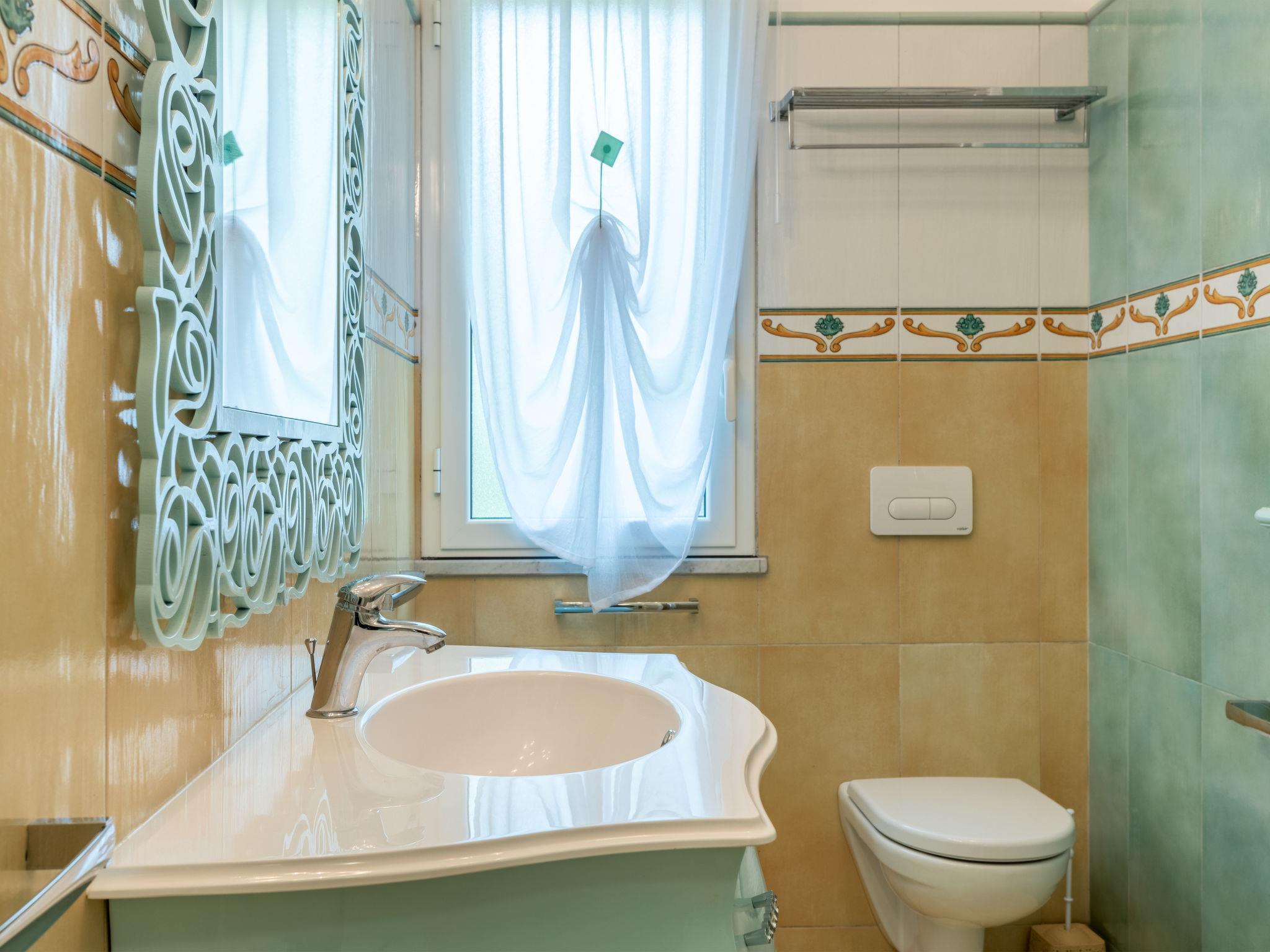4-room villa 85 m2. Beautiful and tasteful furnishings: living/dining room with satellite TV (flat screen), air conditioning and forced-air heating. Exit to the garden, to the patio. 1 double bedroom with air conditioning and forced-air heating. 1 double bedroom with air conditioning and forced-air heating. 1 room with 1 bed, 1 pull-out bed and fan. Exit to the garden, to the patio. Kitchenette (4 hot plates, oven, dishwasher, toaster, kettle, microwave, electric coffee machine). Exit to the garden, to the patio. 2 showers/bidet/WC. Gas heating (extra). Heating available only from 01.12. to 31.03. Large patio 35 m2, roofed, patio 25 m2, roofed. Barbecue, deck chairs (4). View of the swimming pool and the garden. Facilities: washing machine, safe, iron, mosquito net, baby cot for up to 2 year olds, hair dryer. Internet (WiFi, free). IT082027C2UH7VLPW4