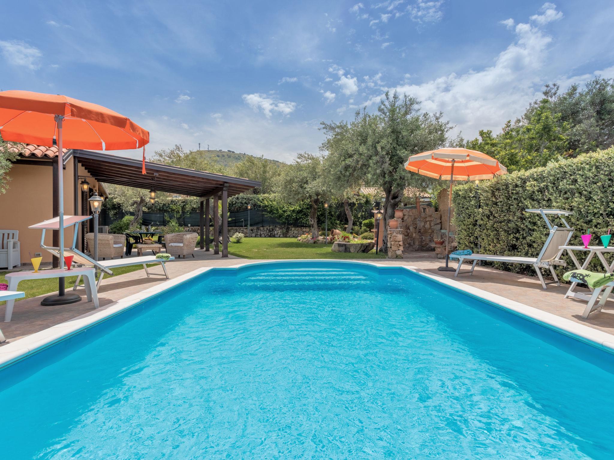 Villa "Jancaliva". 5 km from the centre of Cefalù, 350 m from the sea. Private: property 850 m2 (fenced), garden with lawn and trees, swimming pool (8 x 4 m, depth 150 cm, seasonal availability: 01.Apr. - 31.Oct.). Outdoor shower, garden furniture, barbecue, pool maintenance by the owner/gardener. Heating to be paid on the spot (01.Apr. - 30.Nov.), heating available only from 01.Dec. - 31.Mar.. Parking on the premises. Supermarket 2 km, restaurant 2 km, bar 2 km, bus stop "Bus navetta per Cefalù" 300 m, railway station "Lascari" 2 km, sandy beach "Capo Playa" 350 m. Nearby attractions: Porto Cefalù Aliscafi per Isole Eolie 10 km, Castelbuono 40 km, Parco Madonie 42 km, Palermo 60 km, Monreale 73 km, Piazza Armerina 124 km. Please note: car recommended. Residence with electric gates.