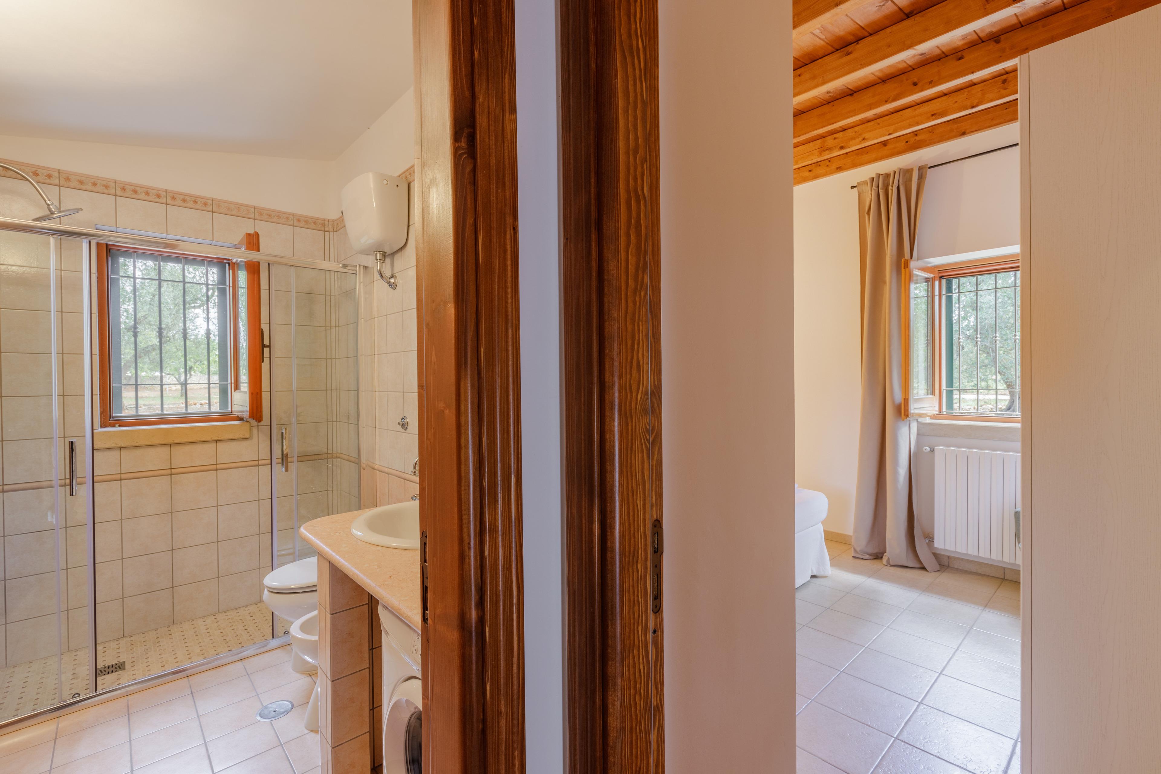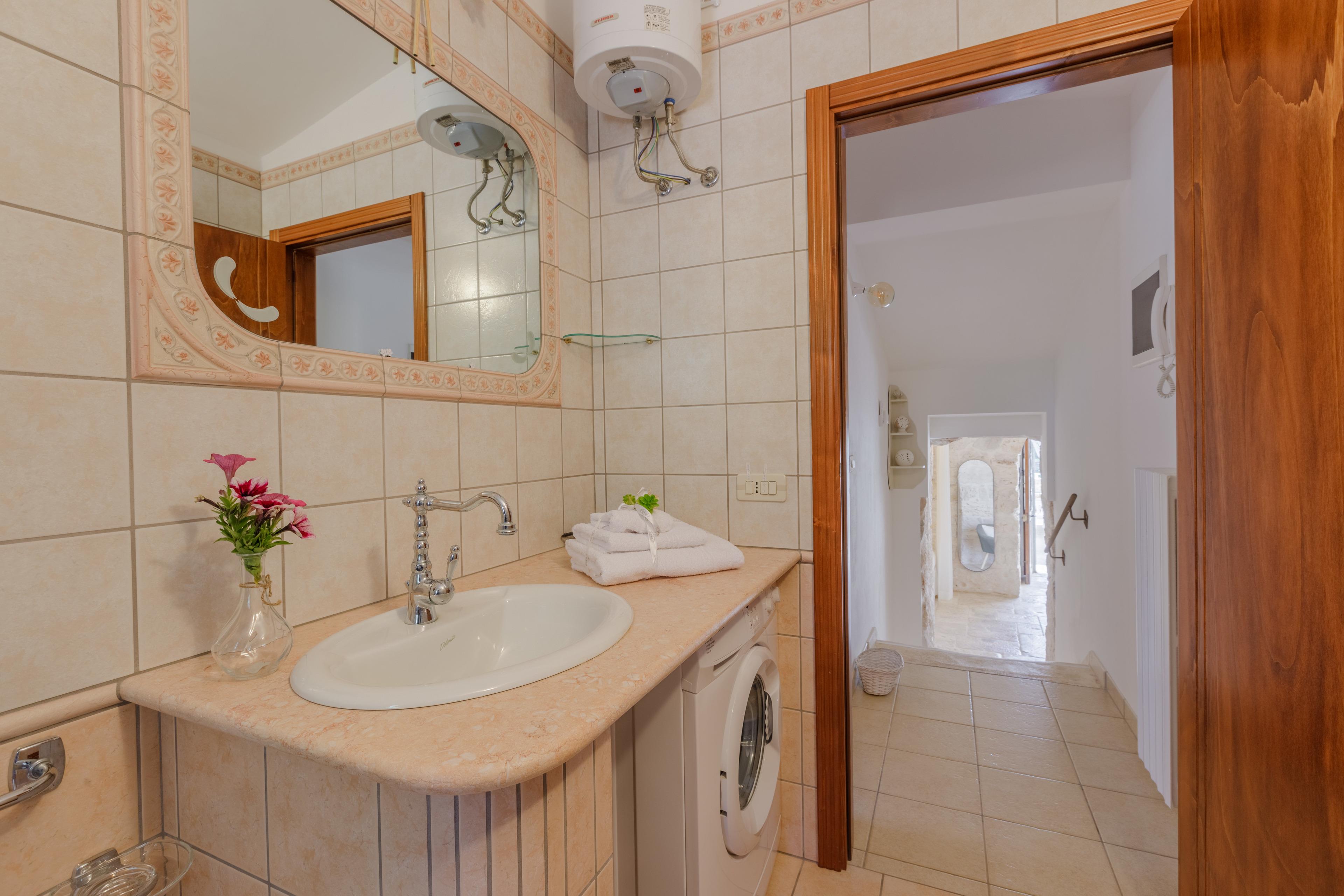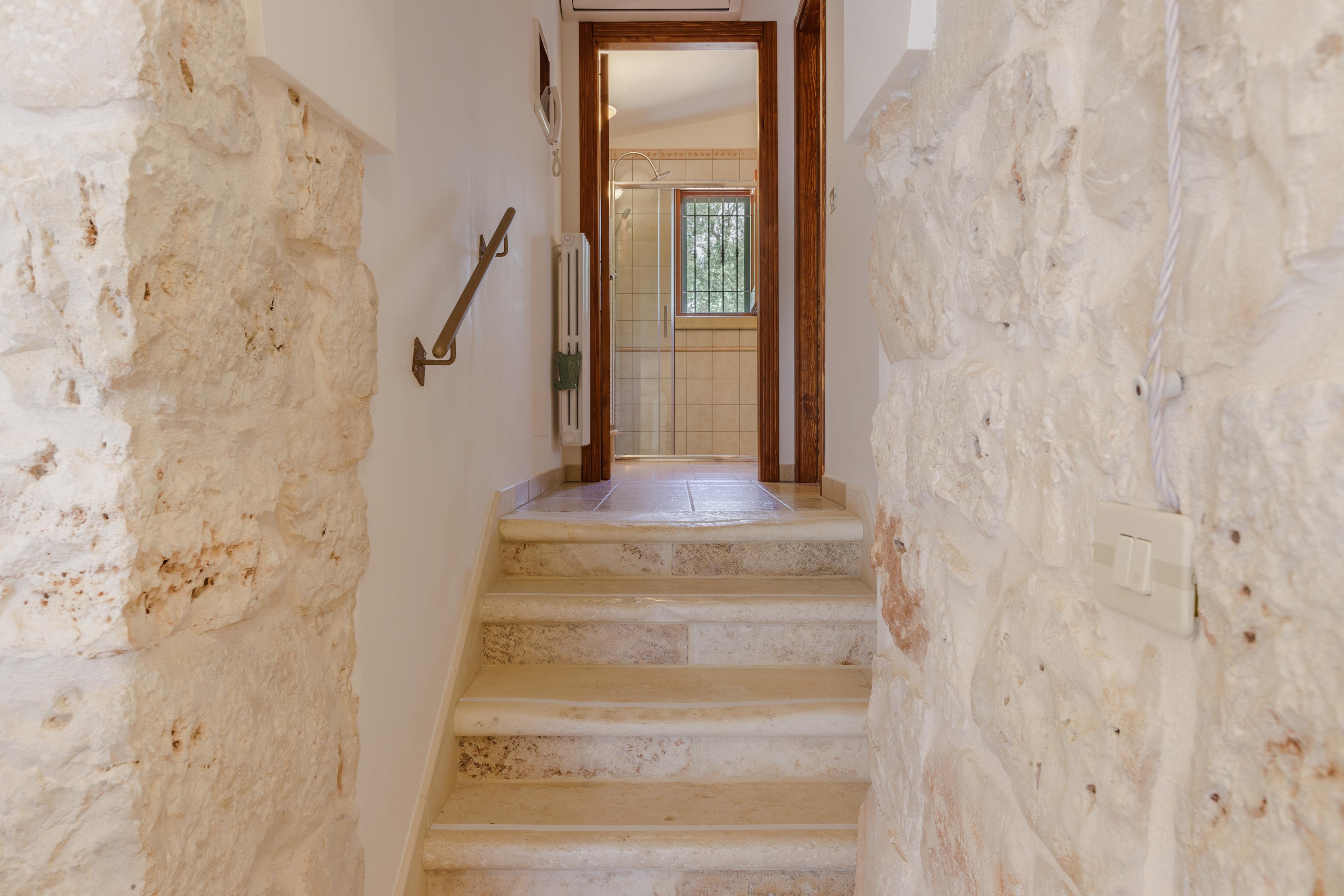 Im Zwischengeschoss, n.1 Doppelzimmer mit n.1 geräumigen Kleiderschrank, n.1 Badezimmer mit Dusche, n.1 Klimaanlage im Flur, die den gesamten Trullo erfrischt.