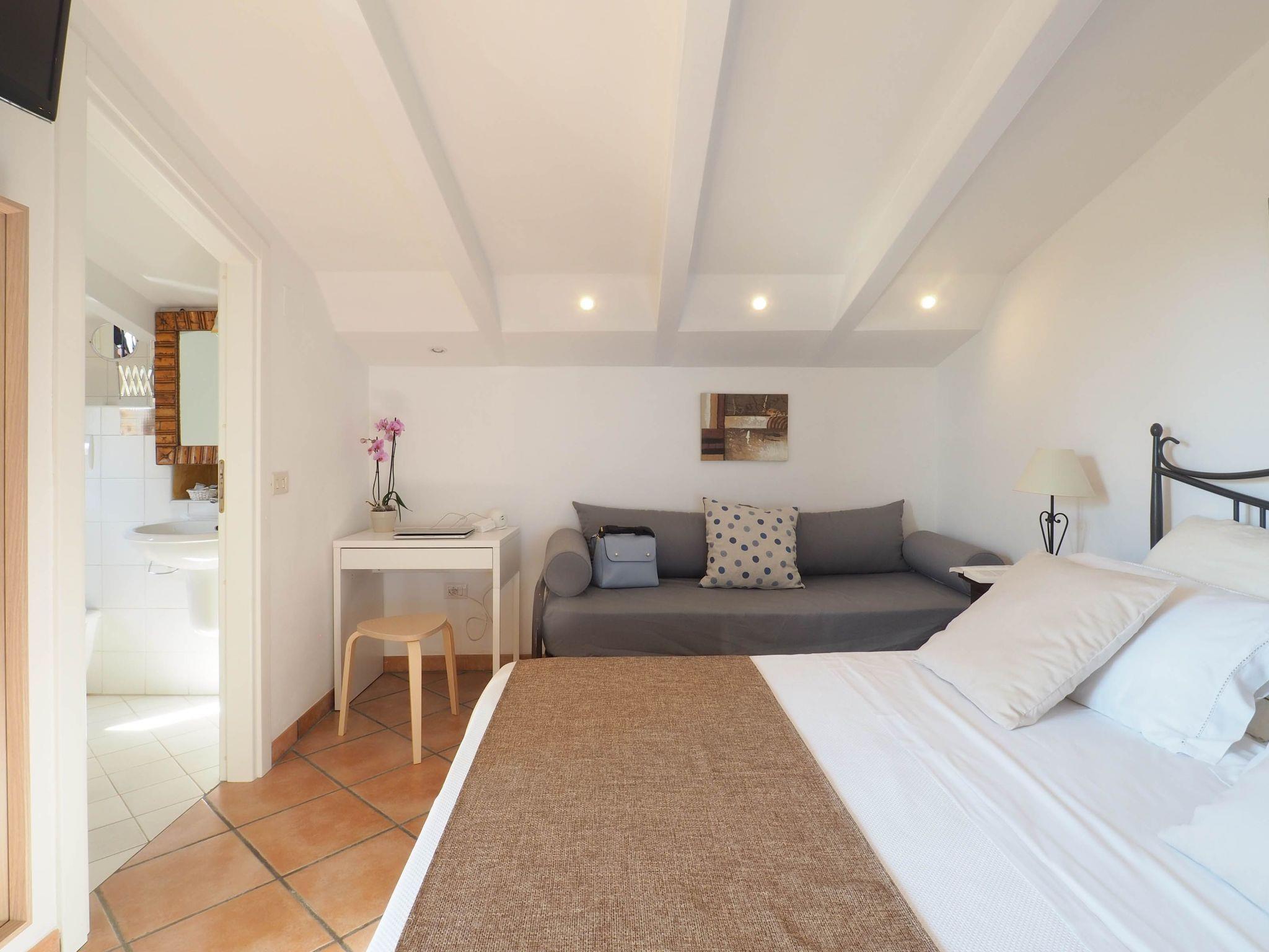From their natural, relaxing colours to their elegant interiors with soft double beds, our spacious second-floor balcony rooms offer maximum comfort for a couple or a couple with a child on holiday in Cilento. Located on the second floor accessible by stairs, all rooms have a comfortable balcony with table and chairs to enjoy the view of the gardens. Every morning we pamper you with the tastiest and most delicious cakes, prepared in-house. Wake up calmly, we are waiting for you until 10 a.m. in the restaurant room with a good coffee or cappuccino to say good morning. Pets are not allowed in this type of accommodation.