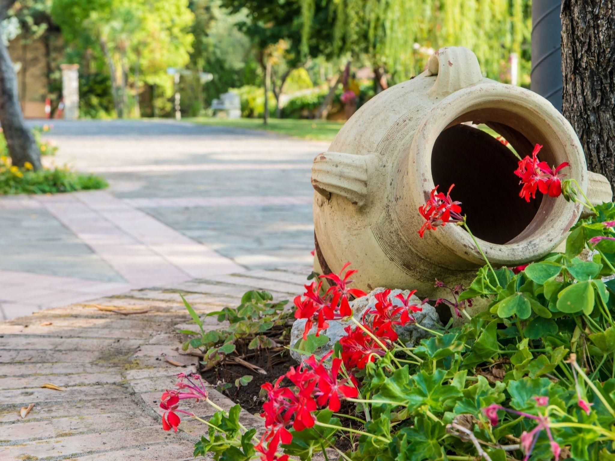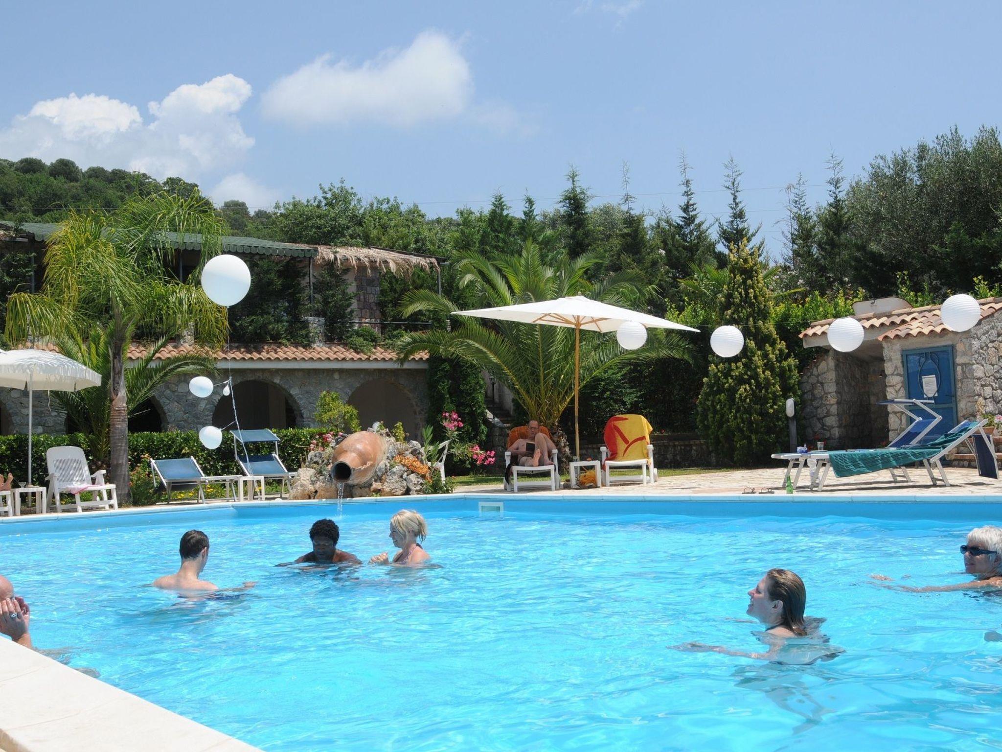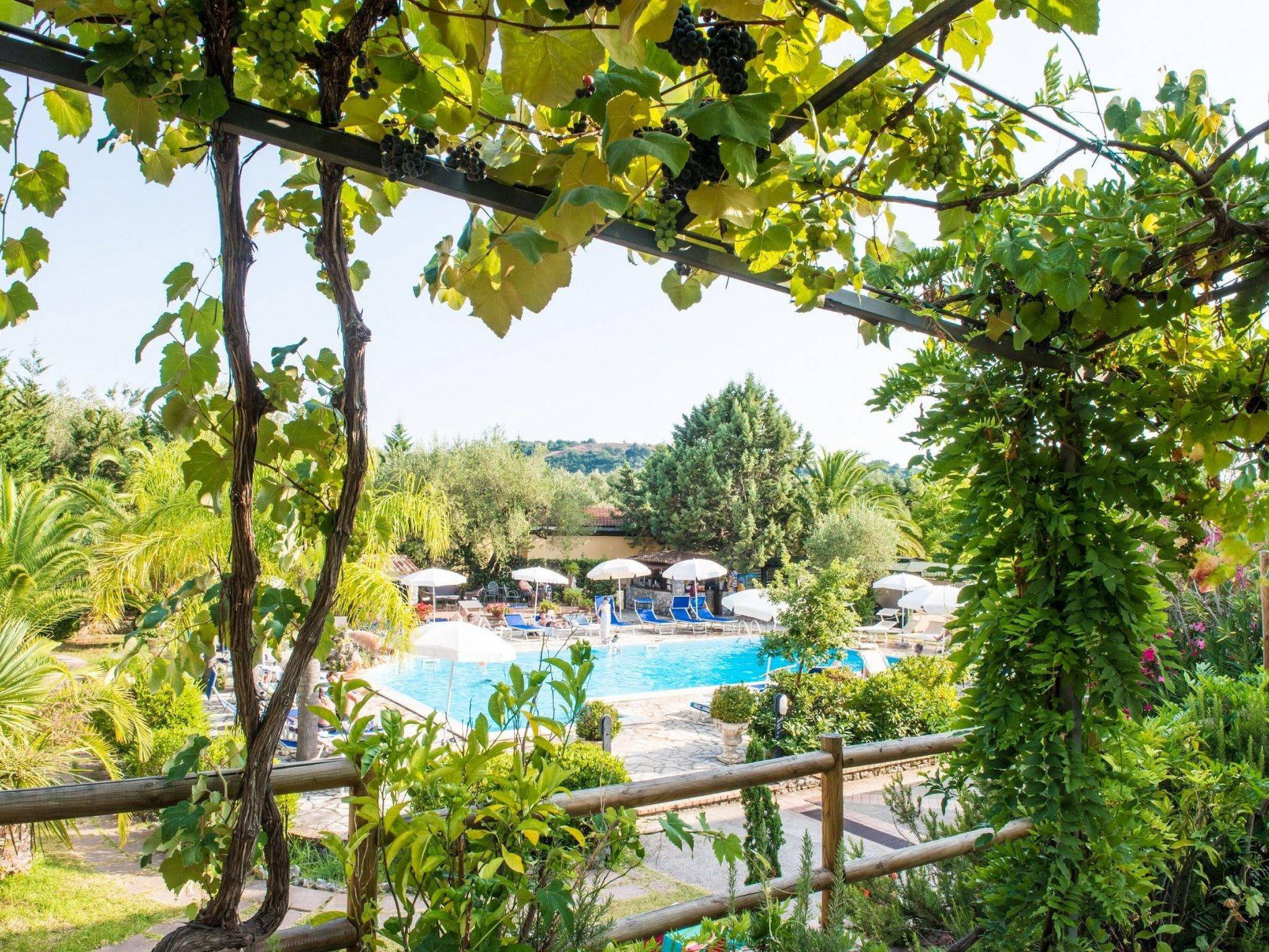 Outside, you are invited to fully experience the communal spaces. The swimming pool, which is shared with other guests, promises refreshing moments of fun and relaxation under the Kampanien sun, while the surrounding garden offers peaceful spots, ideal for soaking up a good book or simply enjoying the tranquillity of nature.