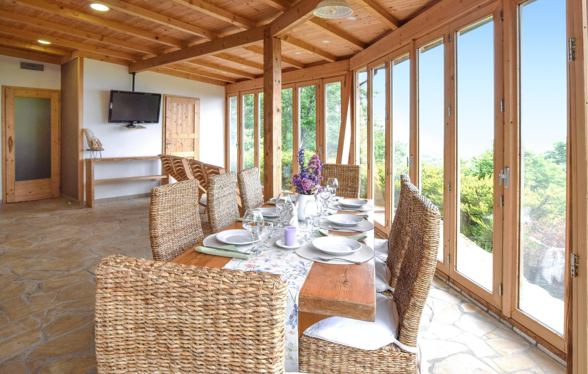 Dette lyse og rummelige feriehus er skabt til at give jer ro og en behagelig atmosfære midt i det betagende landskab. Glæd jer til harmoniske måltider i den åbne opholdsstue, hvor store vinduespartier giver jer en smuk udsigt ud i det grønne. Nyd afslappende stunder i den indendørs pool, eller brug tiden på at lære jeres børn at svømme i trygge rammer.