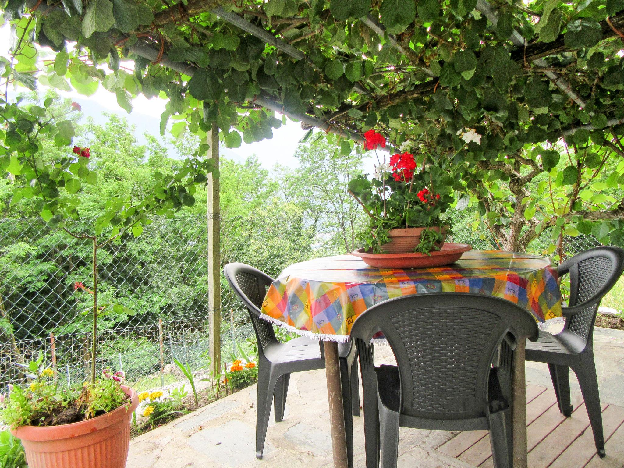 "Casa Kiwi", 2-room house 55 m2 on 2 levels on 1st floor. Comfortable and cosy furnishings: open living/sleeping room with 1 double bed, dining table, satellite TV, radio and heating stove. Exit to the balcony. Open kitchen (oven, dishwasher, toaster, kettle, microwave, freezer, electric coffee machine). Upper floor: 1 room with 1 x 2 bunk beds, 1 double bed (160 cm), air conditioning. Shower/bidet/WC. Gas heating. 4 small balconies. Balcony furniture, barbecue, deck chairs (4). Beautiful distant view of the mountains, the valley and the river. Facilities: washing machine, iron, children's high chair, baby cot for up to 2 year olds, hair dryer. Please note: non-smokers only. Maximum 2 pets/ dogs allowed. Private entrance. IT014017C2LI5QENC4
