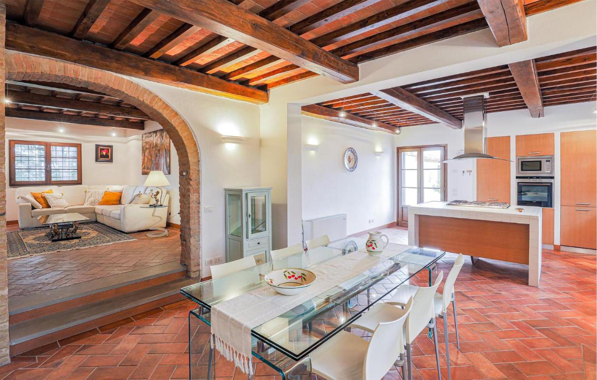Om morgenen kan I svømme i den store pool og nyde en dejlig morgenmad udendørs, mens I ser det bølgende toscanske landskab. Mens børnene spiller bordtennis eller holder skovtur i skyggen af ??de høje træer, kan I slappe af i spabadet eller servere et festmåltid på et af de mange afskærmede steder.