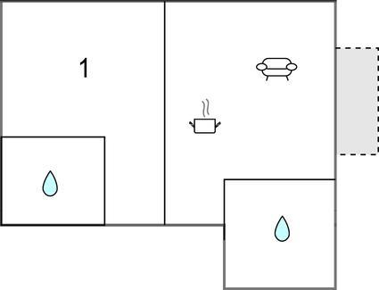 Opholdsstue/køkken - 2 Sovepladser. (Sofa, madras eller lignende).