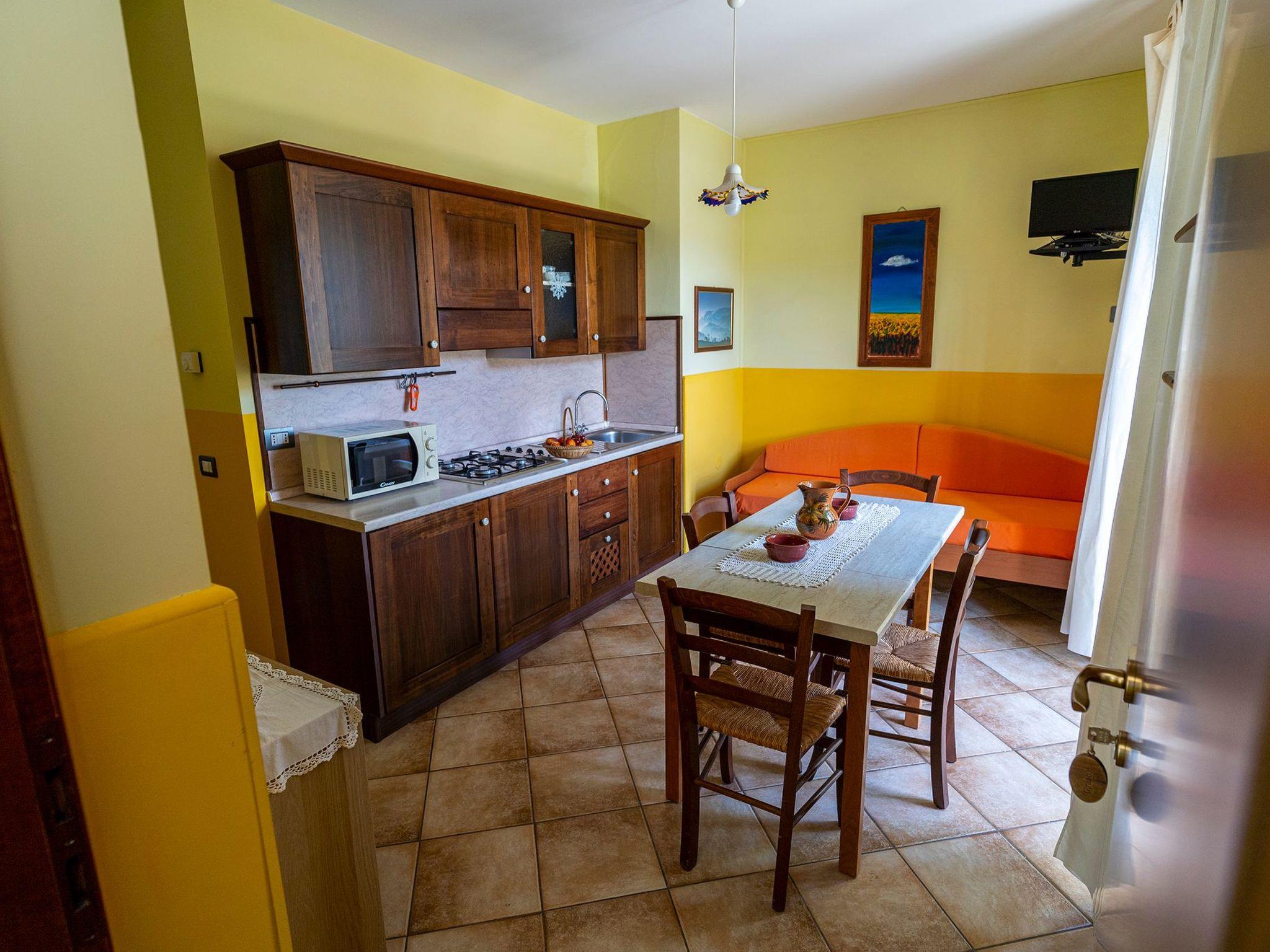Be enchanted by the Apartment Girasole, a splendid oasis of peace and comfort designed to accommodate up to 5 persons. This abode offers relaxation and privacy with its two cosy double bedrooms, each complemented by a harmonious bathroom, and promises unforgettable moments in its cosy living room with single sofa bed and open kitchen, where conviviality and homely flavours blend perfectly.