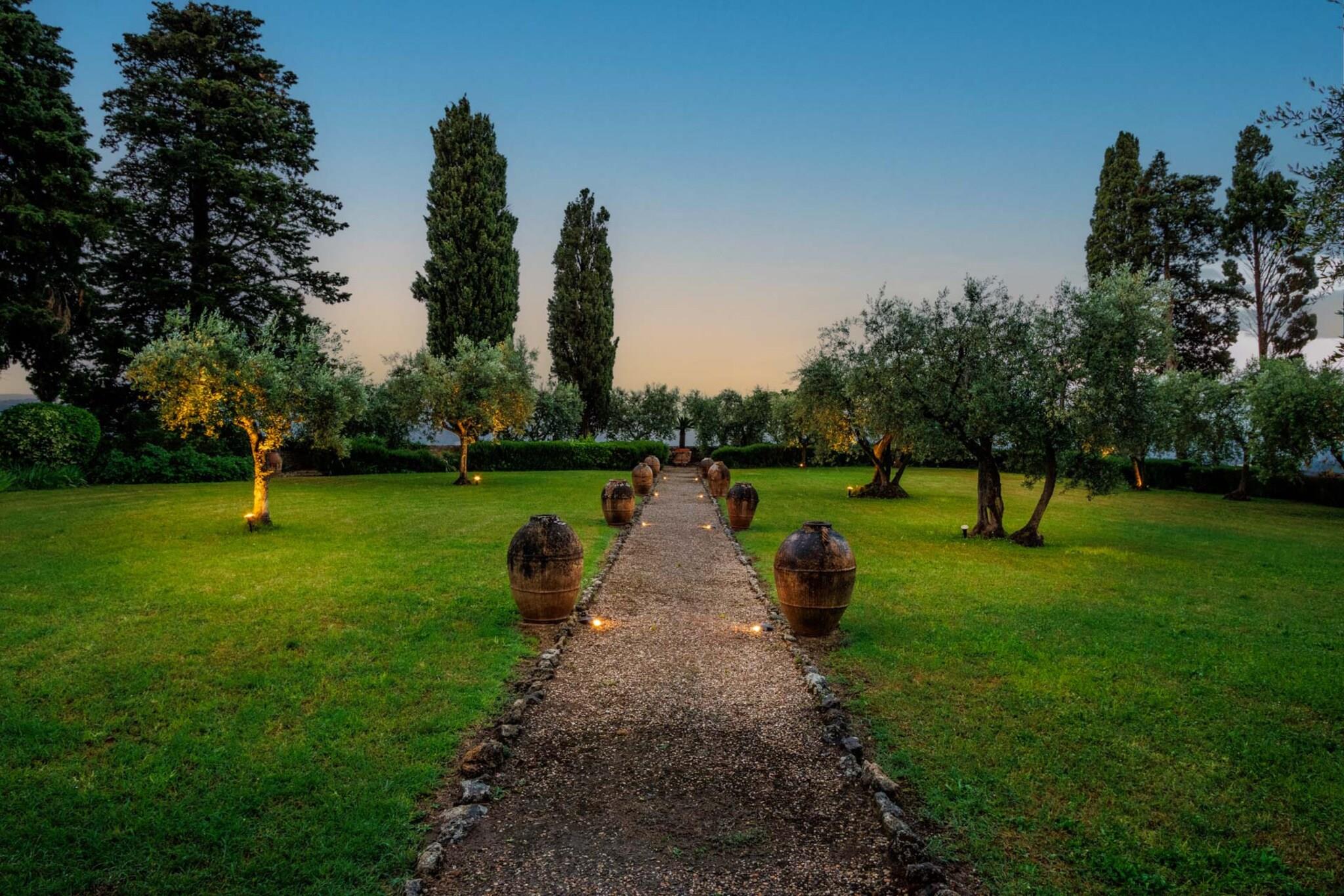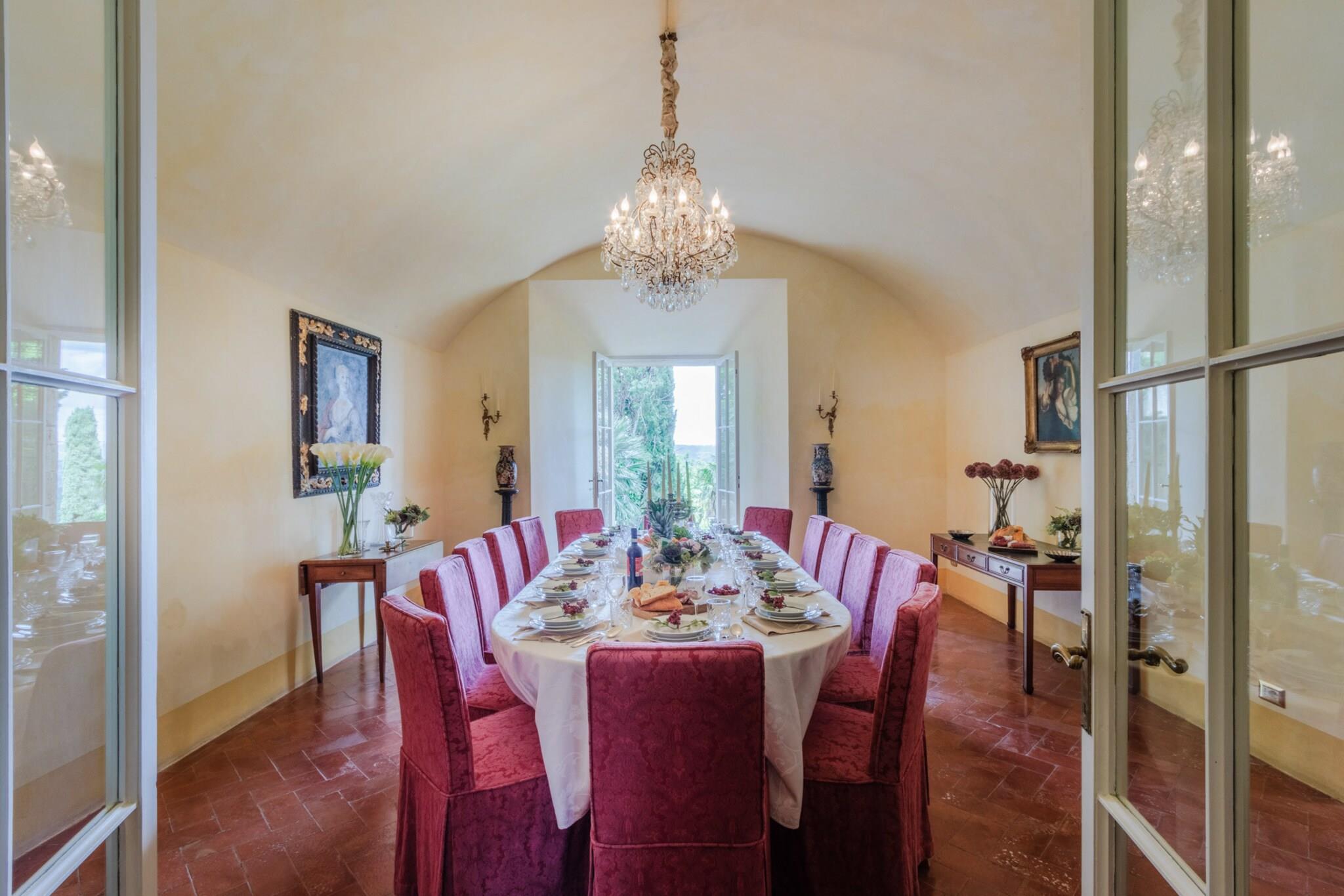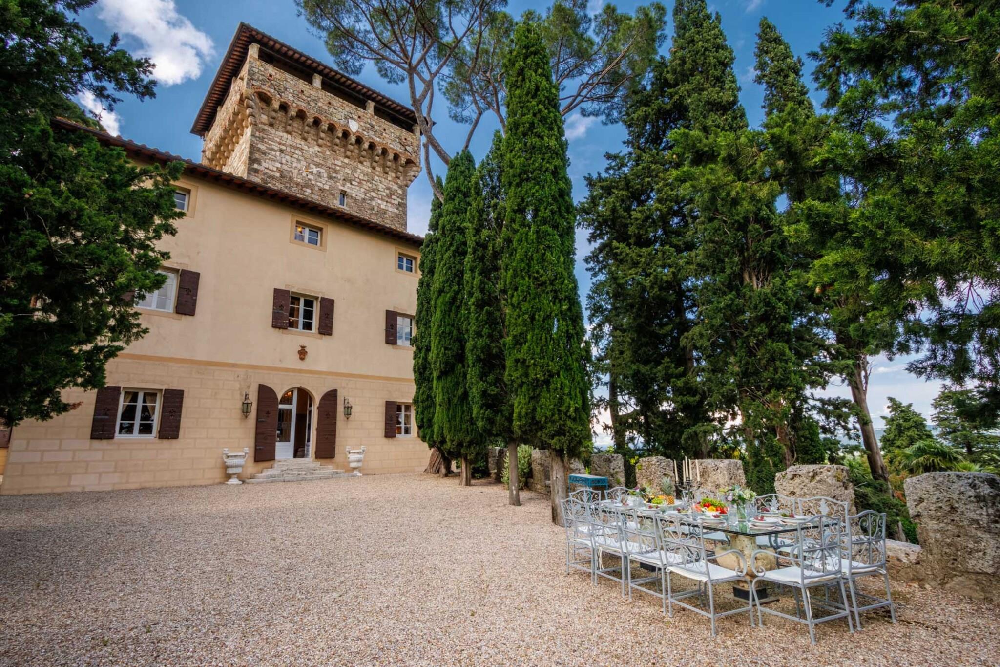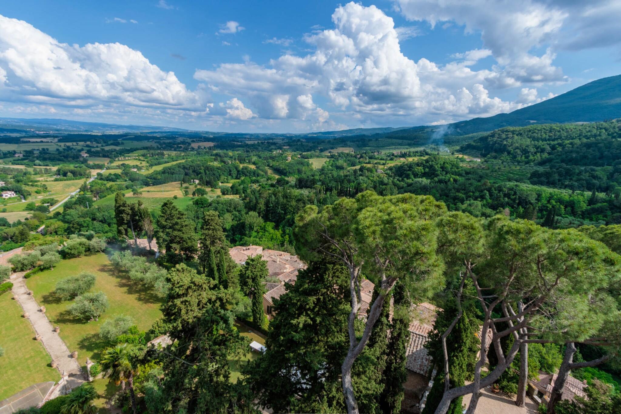 Beliggende på toppen af Toscanas bølgende bakker tilbyder et fantastisk middelalderslot en ekstraordinær blanding af historisk charme og moderne luksus. Beliggende i den maleriske landsby Cetona tilbyder slottet en betagende 360-graders udsigt over vinmarker, olivenlunde og det frodige landskab. Dens førsteklasses beliggenhed giver mulighed for nem udforskning af kulturskatte i Siena, Firenze og Umbrien, samtidig med at det forbliver bekvemt tæt på Rom, hvilket gør det til et ideelt tilflugtssted for dem, der søger både ro og tilgængelighed. Det arkitektoniske mesterværk har et privat tårn med en panoramaterrasse, der inviterer dig til at fordybe dig i den fredfyldte skønhed i det omkringliggende landskab. De omhyggeligt vedligeholdte haver indbyder til udforskning, mens en forfriskende panoramapool tilbyder et perfekt sted at slappe af og nyde den fantastiske natur. Underholdning er en fryd, omgivet af duftende citrontræer og livlige blomster, og et antikt friluftsteater i romersk stil tilføjer et strejf af historisk charme til intime sammenkomster og forestillinger. Når du slentrer gennem Cetonas fortryllende gader, vil du blive betaget af landsbyens elegante arkitektur og rige historie, der smukt komplementerer slottets tidløse elegance. Denne luksuriøse indkvartering fungerer som et fredfyldt fristed, hvor hvert hjørne fortæller en historie om århundreder, samtidig med at den tilbyder alle de bekvemmeligheder, der kendetegner et moderne liv. Uanset om du er vært for store fester eller søger en privat flugt, lover dette slot en uovertruffen oplevelse af charme og elegance i hjertet af Toscana. Bemærk venligst, at ejendommen ligger i en zone med begrænset trafik (ZTL), med parkering i nærheden og assistance til bagagetransport efter anmodning. Bemærk: Turistskat skal betales på ejendommen.