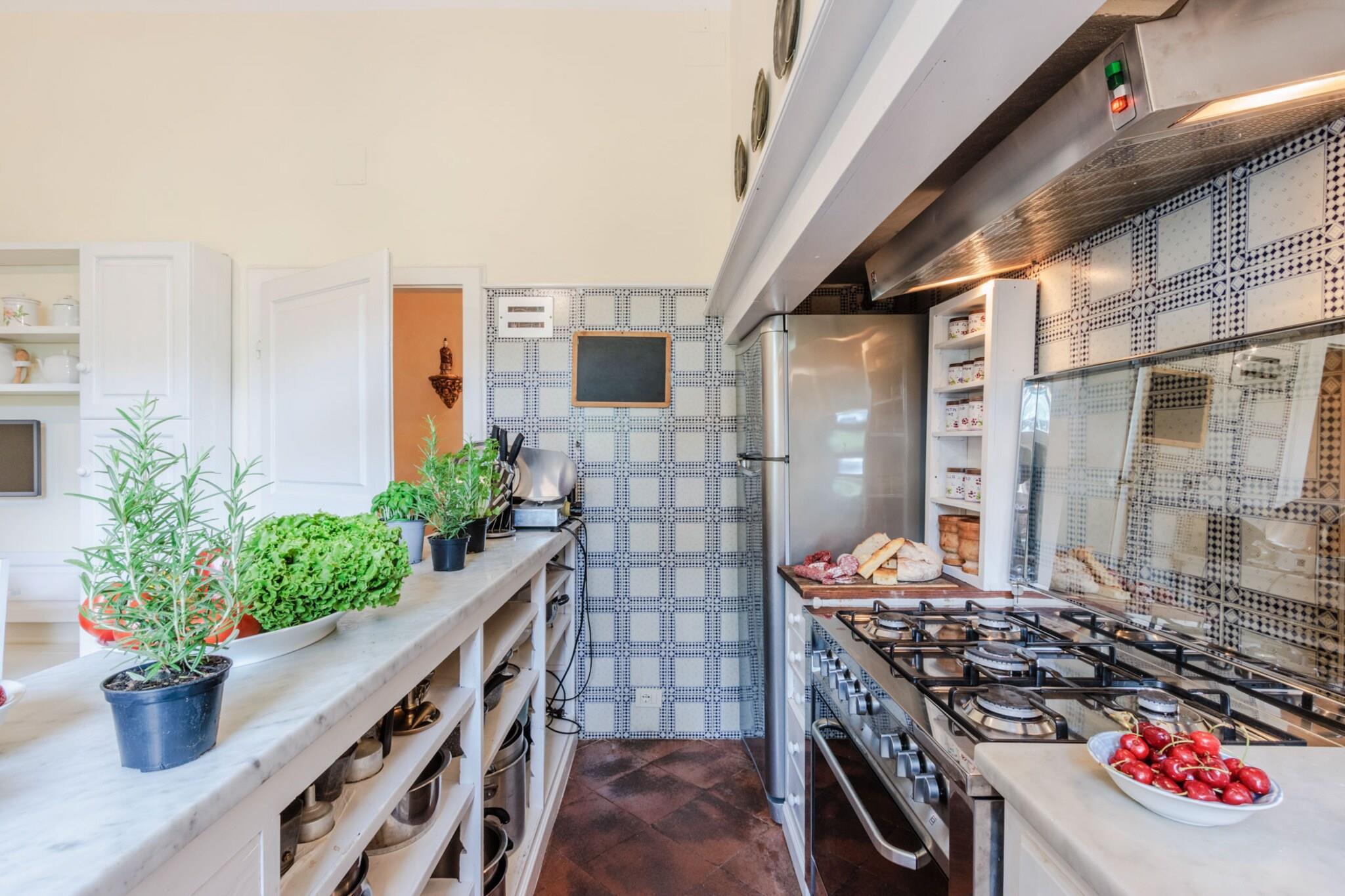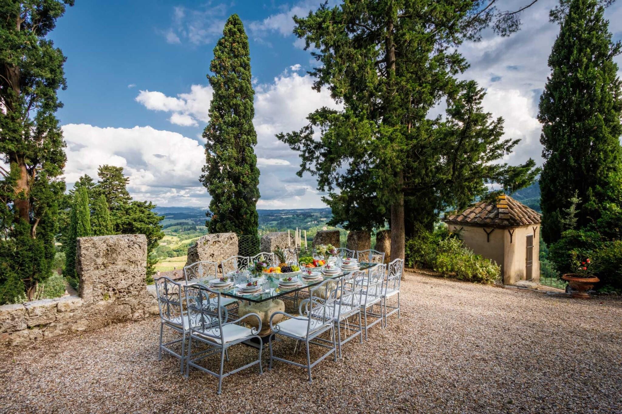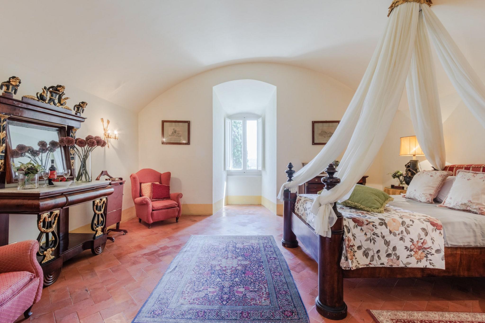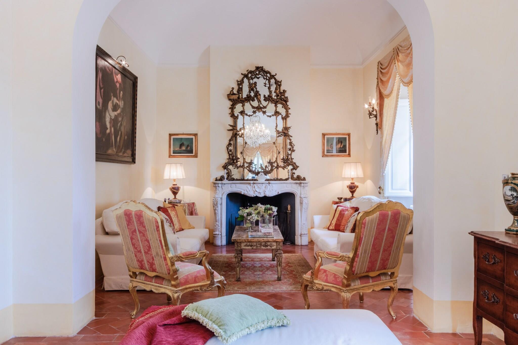 Beliggende på toppen af Toscanas bølgende bakker tilbyder et fantastisk middelalderslot en ekstraordinær blanding af historisk charme og moderne luksus. Beliggende i den maleriske landsby Cetona tilbyder slottet en betagende 360-graders udsigt over vinmarker, olivenlunde og det frodige landskab. Dens førsteklasses beliggenhed giver mulighed for nem udforskning af kulturskatte i Siena, Firenze og Umbrien, samtidig med at det forbliver bekvemt tæt på Rom, hvilket gør det til et ideelt tilflugtssted for dem, der søger både ro og tilgængelighed. Det arkitektoniske mesterværk har et privat tårn med en panoramaterrasse, der inviterer dig til at fordybe dig i den fredfyldte skønhed i det omkringliggende landskab. De omhyggeligt vedligeholdte haver indbyder til udforskning, mens en forfriskende panoramapool tilbyder et perfekt sted at slappe af og nyde den fantastiske natur. Underholdning er en fryd, omgivet af duftende citrontræer og livlige blomster, og et antikt friluftsteater i romersk stil tilføjer et strejf af historisk charme til intime sammenkomster og forestillinger. Når du slentrer gennem Cetonas fortryllende gader, vil du blive betaget af landsbyens elegante arkitektur og rige historie, der smukt komplementerer slottets tidløse elegance. Denne luksuriøse indkvartering fungerer som et fredfyldt fristed, hvor hvert hjørne fortæller en historie om århundreder, samtidig med at den tilbyder alle de bekvemmeligheder, der kendetegner et moderne liv. Uanset om du er vært for store fester eller søger en privat flugt, lover dette slot en uovertruffen oplevelse af charme og elegance i hjertet af Toscana. Bemærk venligst, at ejendommen ligger i en zone med begrænset trafik (ZTL), med parkering i nærheden og assistance til bagagetransport efter anmodning. Bemærk: Turistskat skal betales på ejendommen.