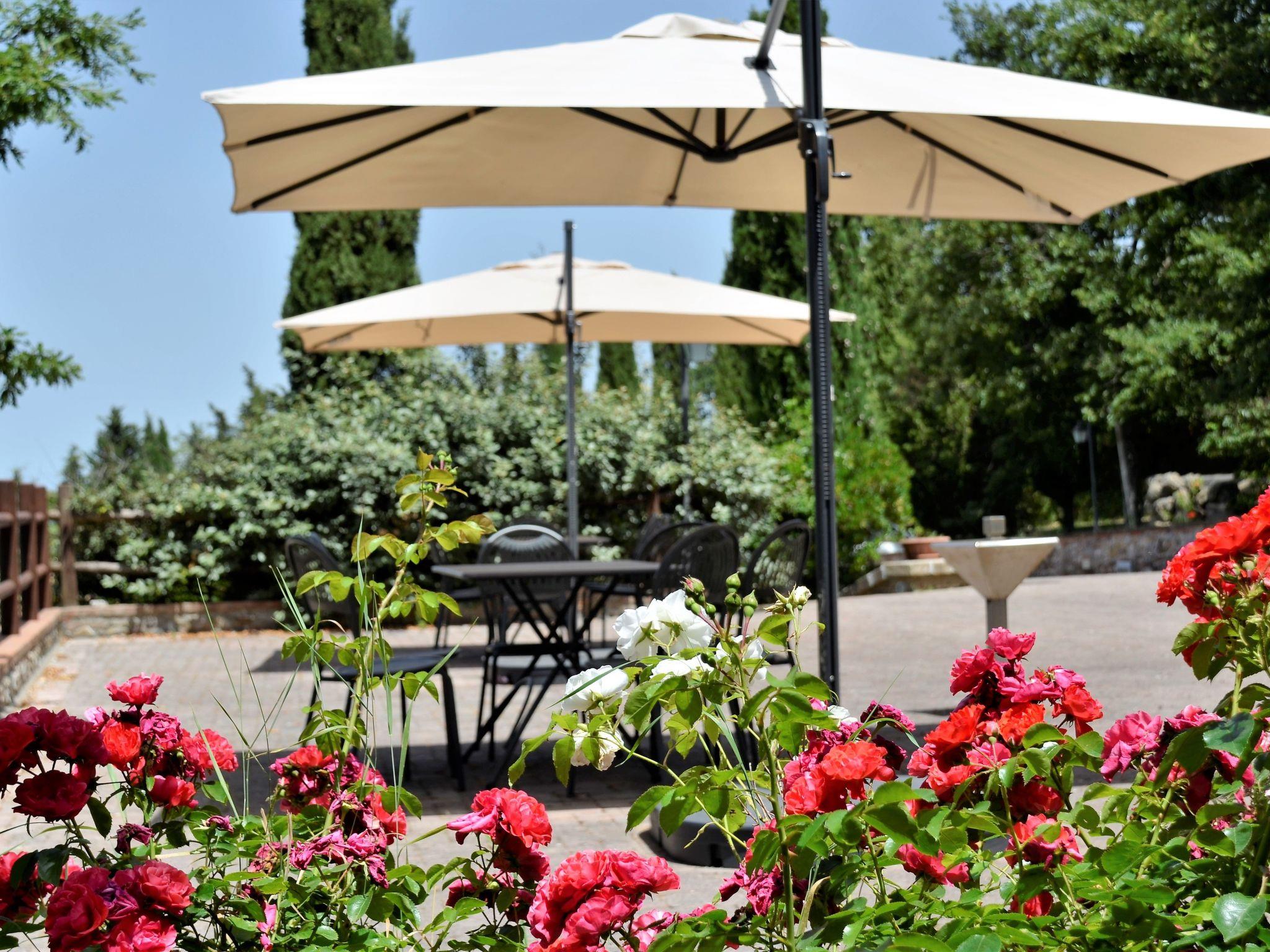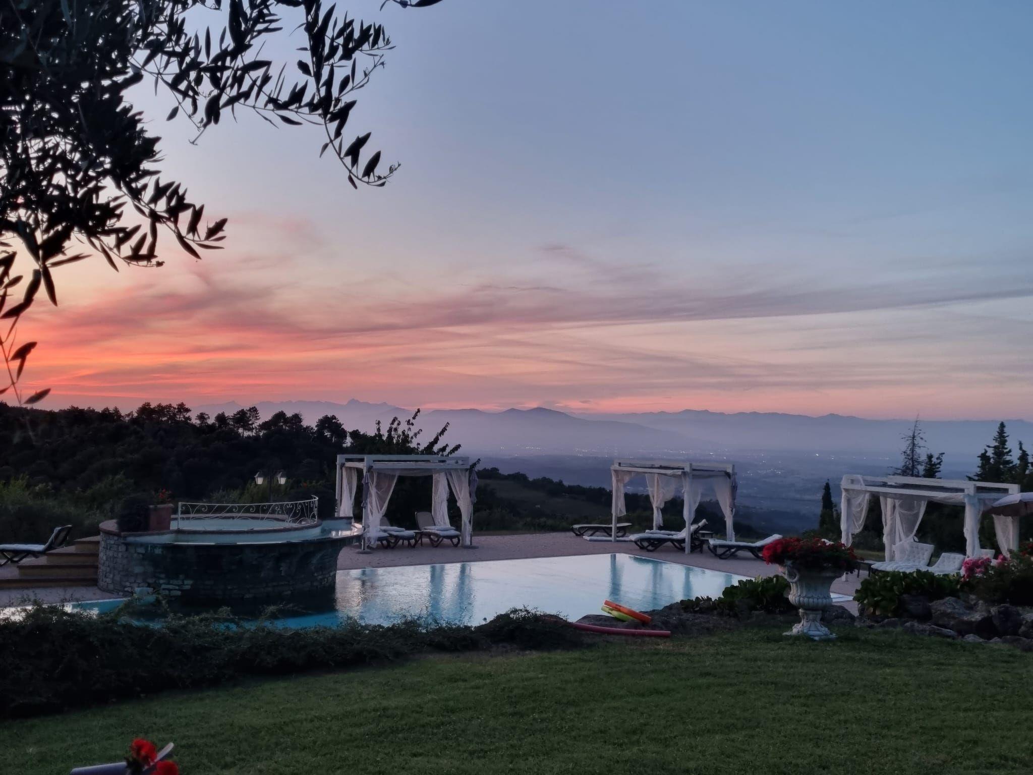 A hidden gem in the Tuscan rolling countryside, raised 350 metres above sea level, Le Polle di Meletro, also known as "Il borgo della pace" with its fantastic panoramic terrace, woodlands and enviable position, resides near the small medieval village of Rivalto. With stunning views down the Valdera valley, the prominent location of the villa has maintained a sense of timelessness, peace and tranquillity. It is an oasis of calmness and harmony in which to indulge yourself and relax, but yet it is only 40 minutes’ drive from Pisa airport.The villa is surrounded by fertile soil that produces a range of superior vegetables, fruits and wine. The nearby fields are host to vineyards, olive groves, fruit trees and cereals, whilst the wooded hills are home to the famous ‘Rivalto’ Chestnut along with a rich selection of flora and fauna. The nodding heads of large sunflowers fill some of the fields in July/August setting the landscape ablaze. The view from our terrace and woodland changes as the seasons change, being green and lush in spring through to a golden yellow in summer before becoming a sea of blazing red as the vines change colour in the autumn months.
