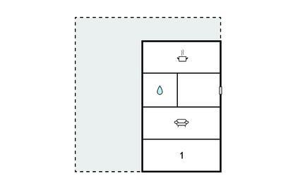 Badeværelse 3m2 (nr. 1) - WC. Varmt og koldt vand. Bruser