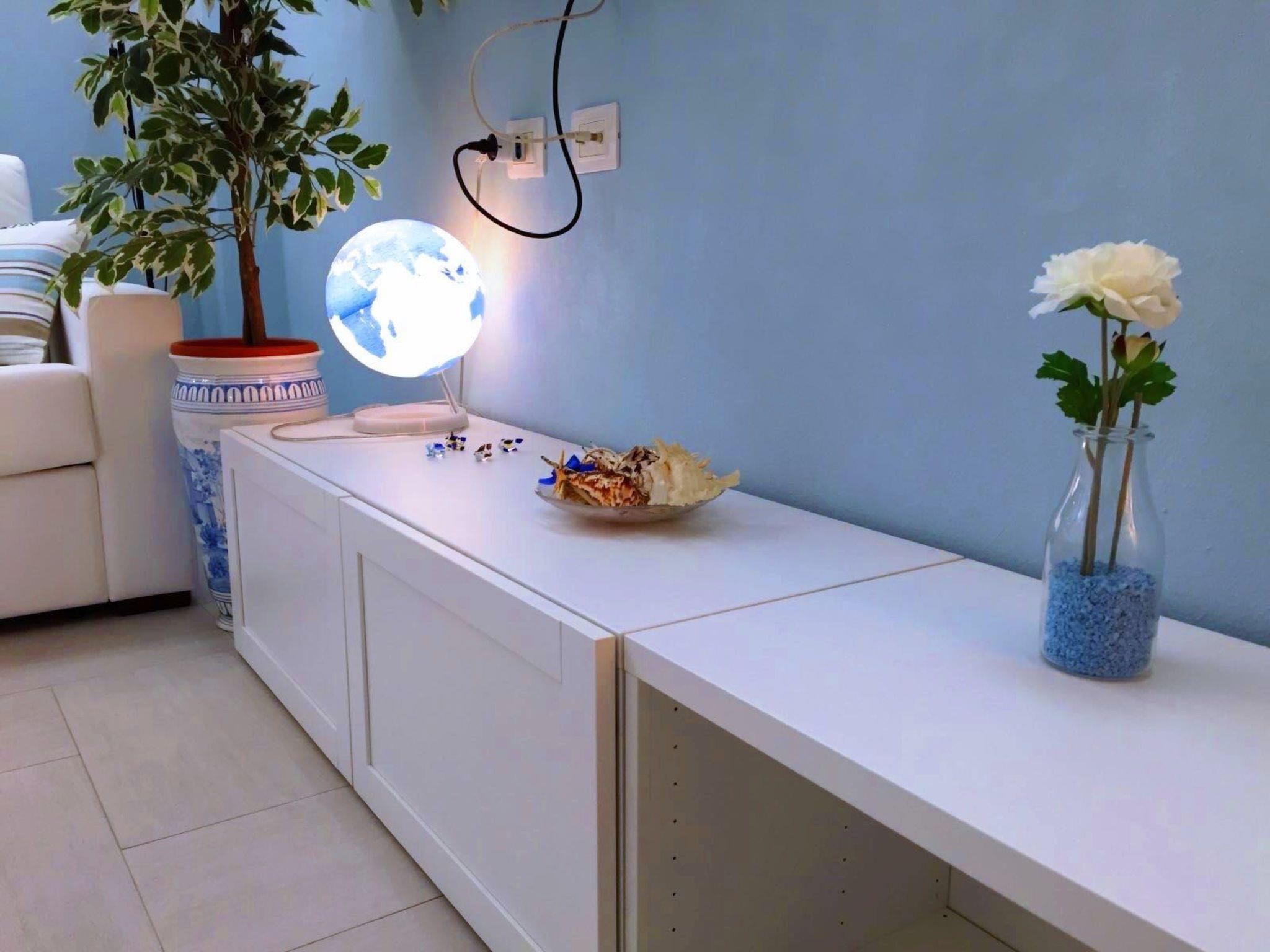 It consists of a modern living room with a very comfortable double sofa bed, a small bookcase, satellite and digital TV; a kitchenette with oven, stove, microwave, pots and pans, fridge, freezer, coffee machine, and washing machine.