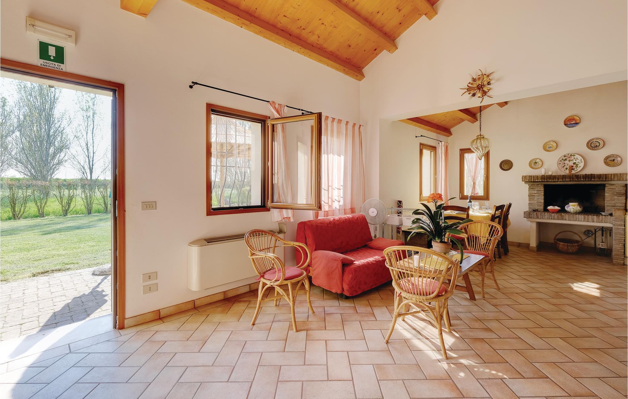 Dejligt landhus tæt på Chioggia, kun 2 km fra strandene ved Isola Verde, hvor der er gebyrpligtige badeanlæg og frie strande. I kan nemt komme til havet på cykel over en cykelsti. Ejendommen er omgivet af en stor eng. Privat, møbleret veranda, så I kan spise i det fri. Huset er generøst indrett og byder på god komfort og en varm atmosfære. Venedig ligger 40 km væk, og I kan nemt komme derhen i bil eller med turistfærgen, der på en time krydser lagunen fra Chioggia til San Marco med et imponerende panorama.