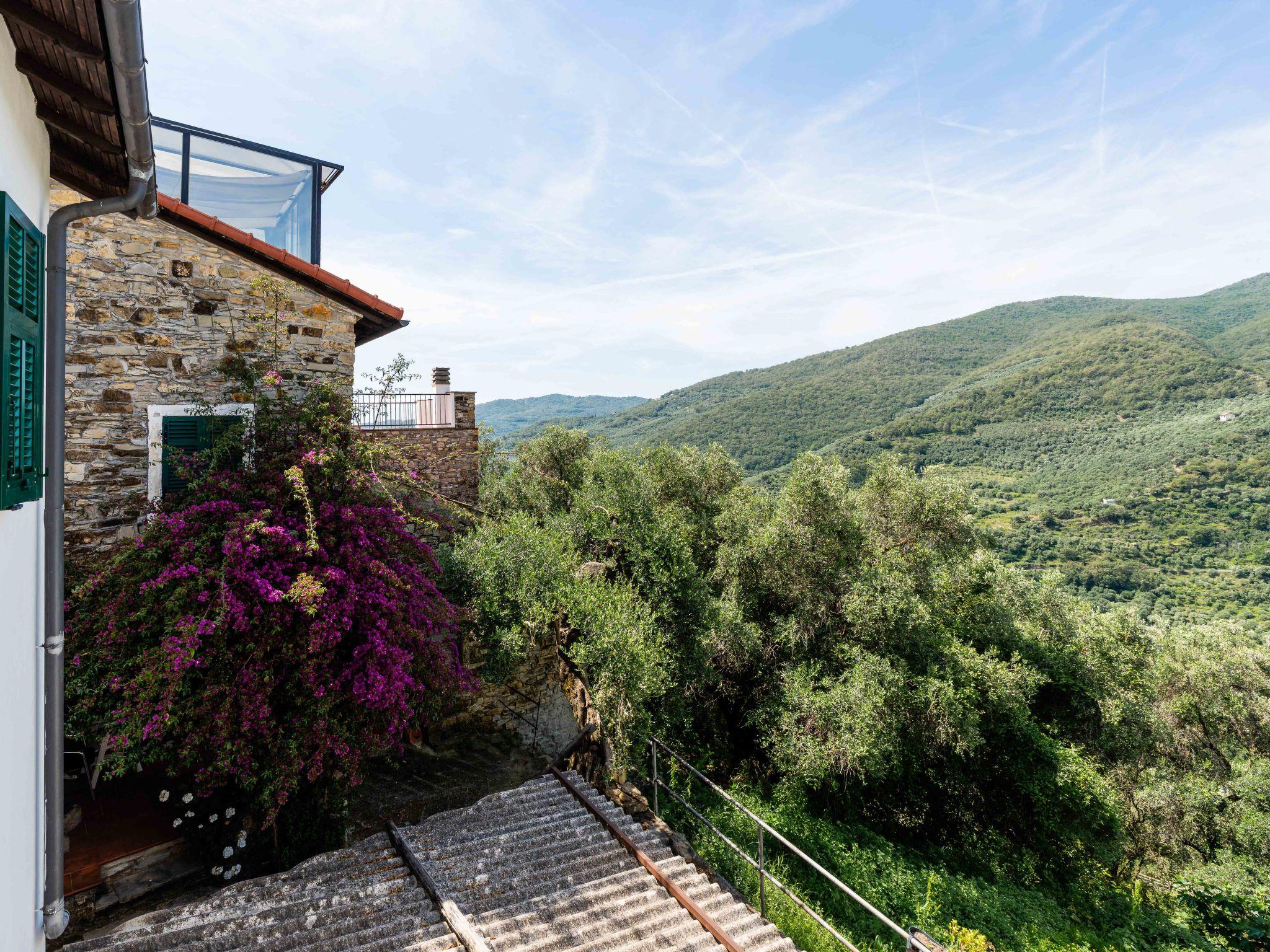 Cosy terraced house. In the centre of Gazzelli 6 km from the centre of Pontedassio, 11 km from the centre of Imperia, 15 km from the centre of Diano Marina, 11 km from the sea, 6 km from the river. 100 m steep footpath to the house. Public parking 100 m on the road. Bus stop 100 m, railway station "Imperia Oneglia" 11 km, sandy beach 11 km. Cycle lane 11 km. Please note: car recommended.